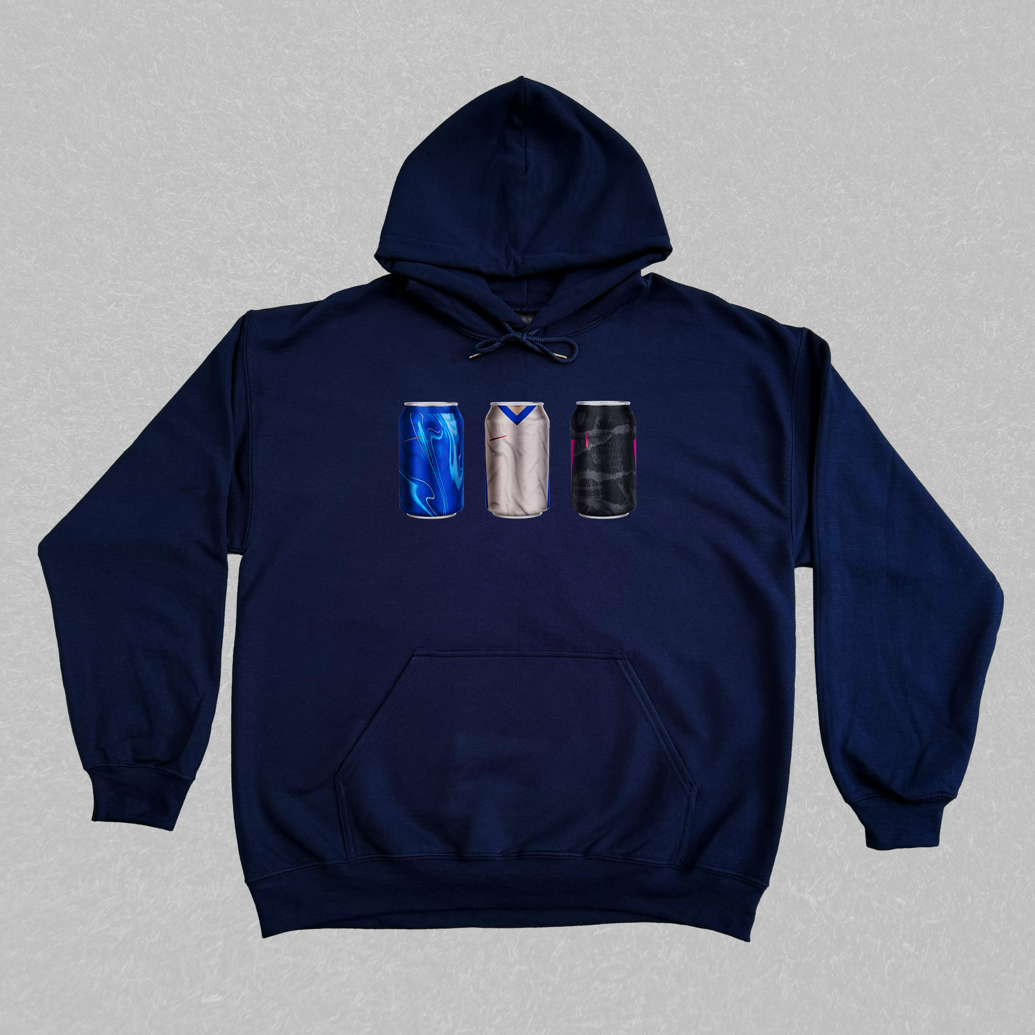 Wrap up in the 2024/25 season with this bold, fan-designed hoodie. Featuring all three kits — home, away, and third — reimagined as collectible beer cans, this piece blends football culture with off-pitch comfort.