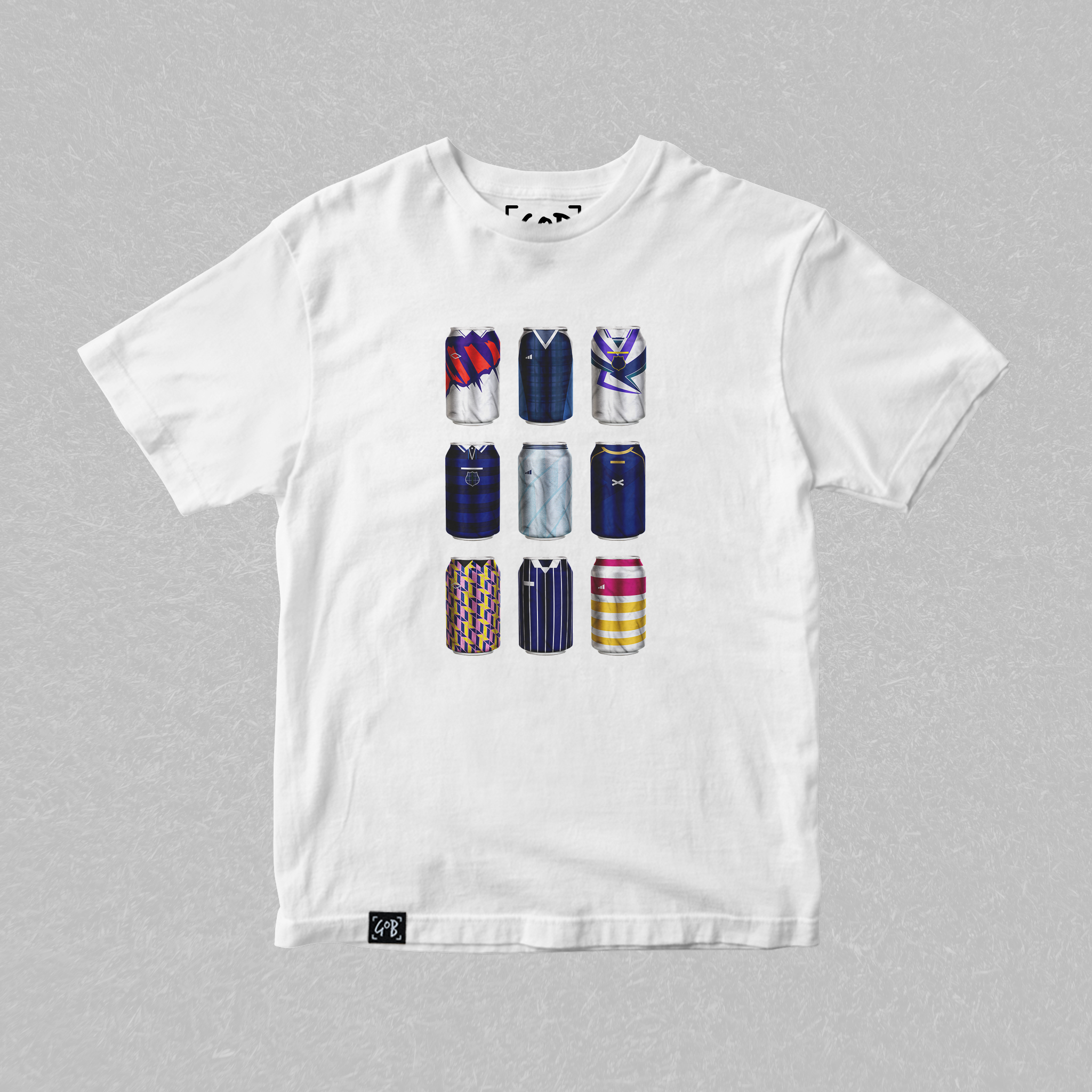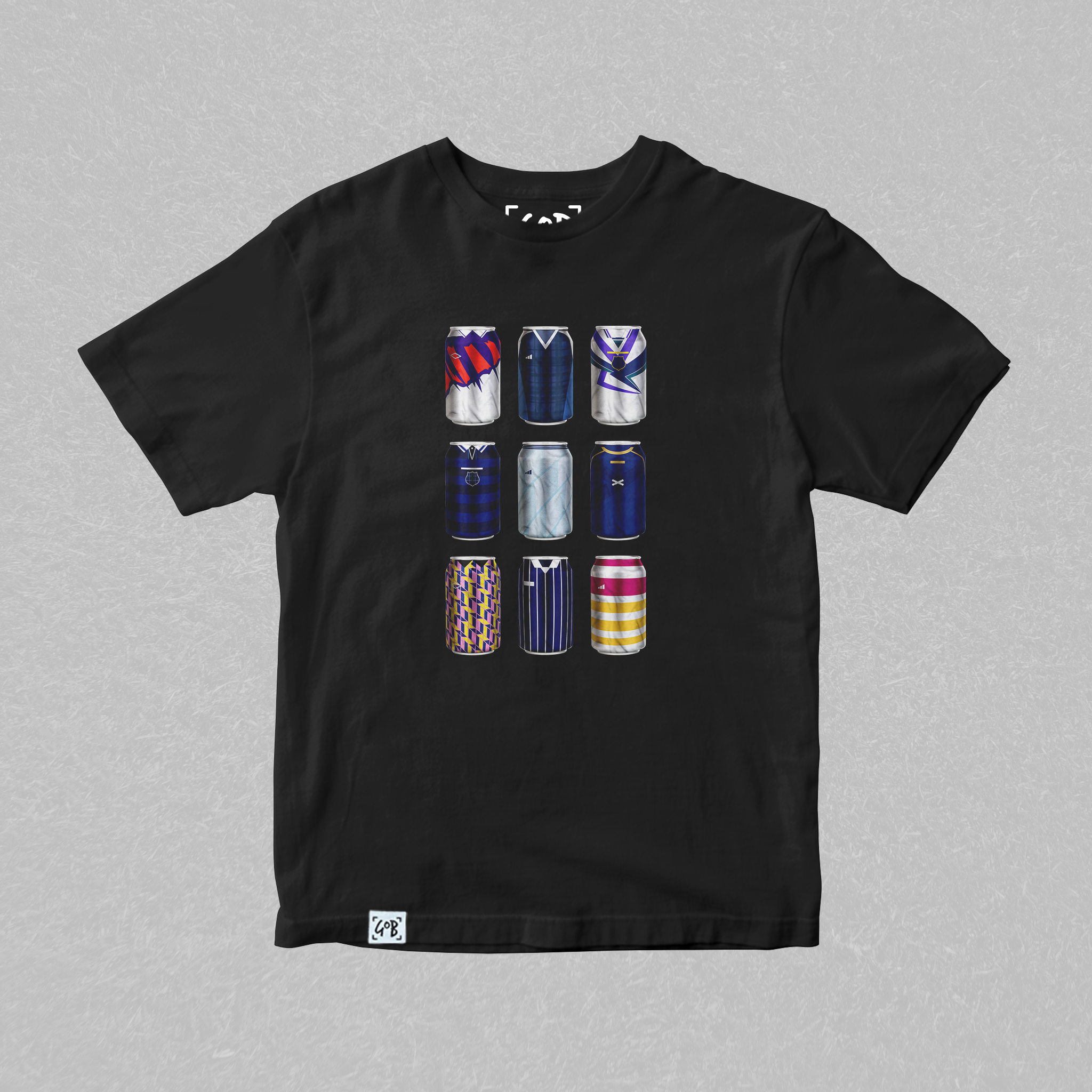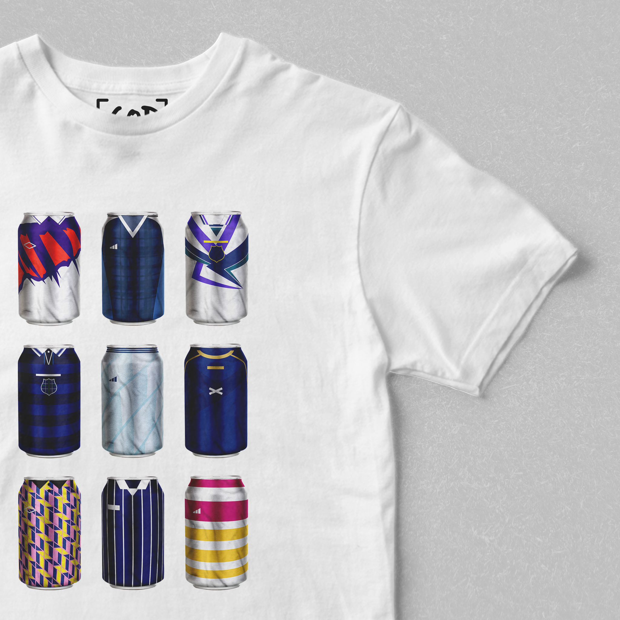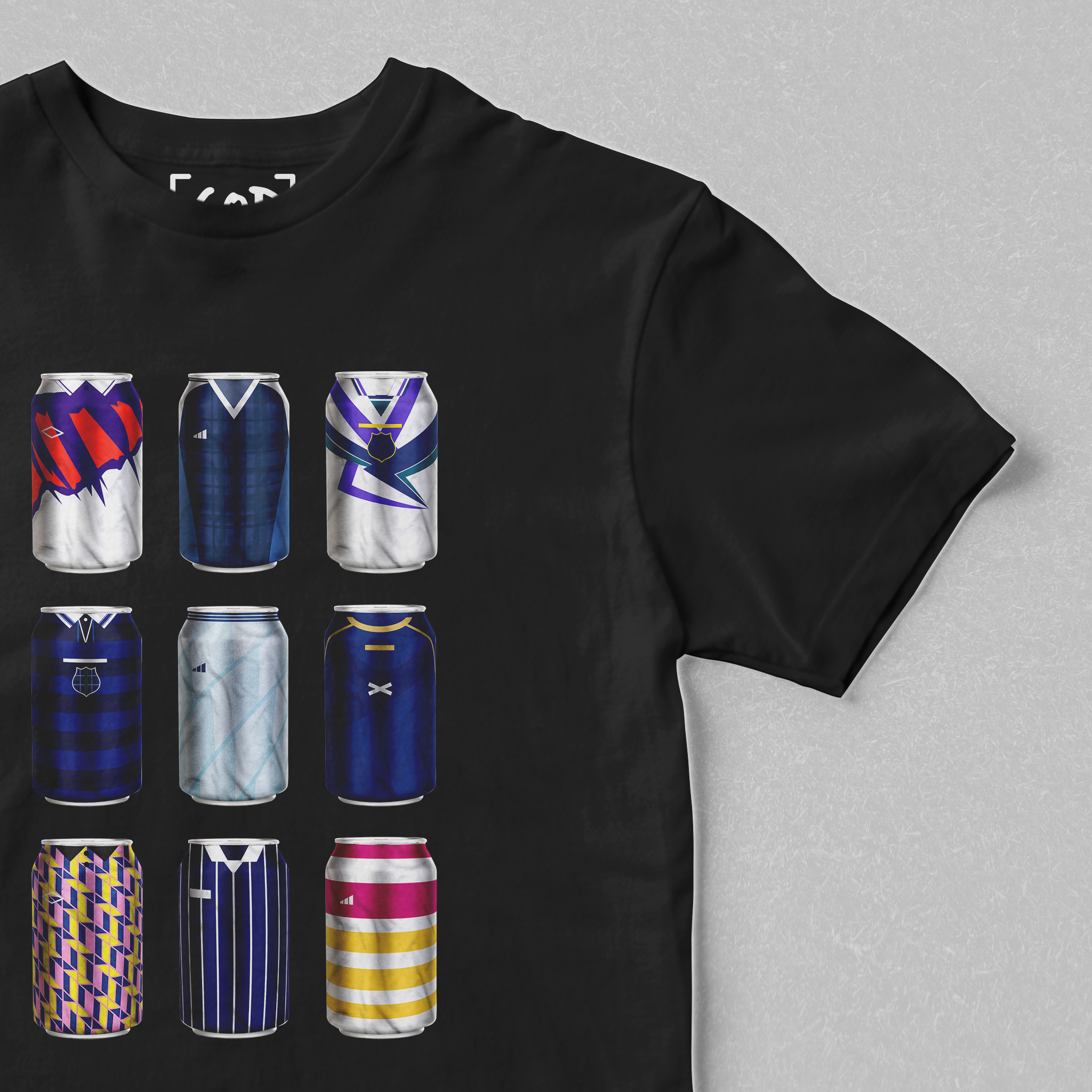 A collection of iconic Scotland kits over the last few decades. Each kit designed is digitally illustrated through either one of our can or bottles styles.