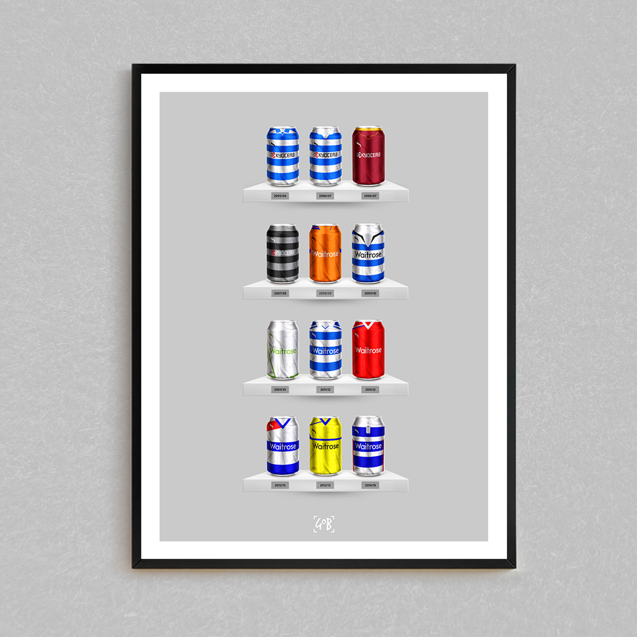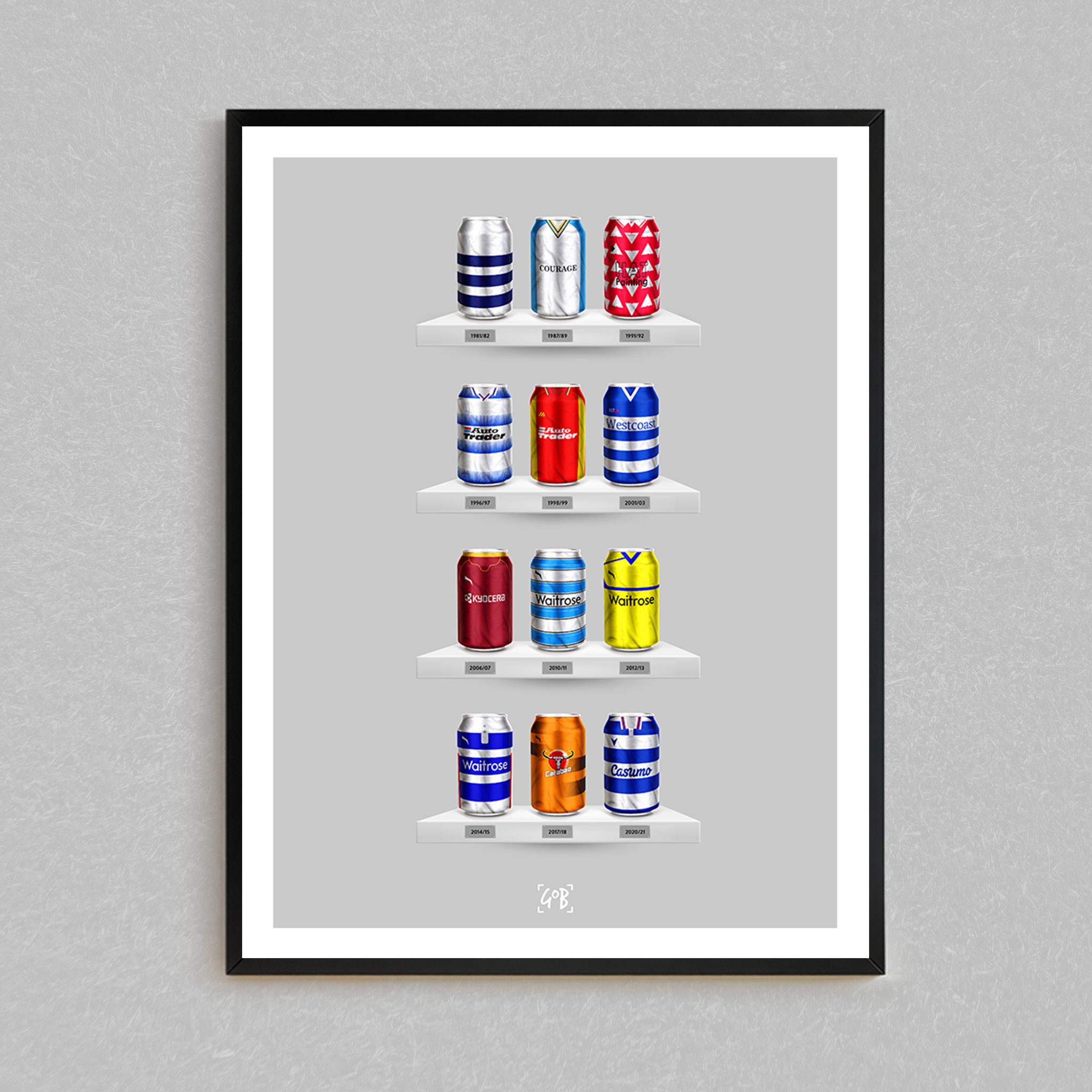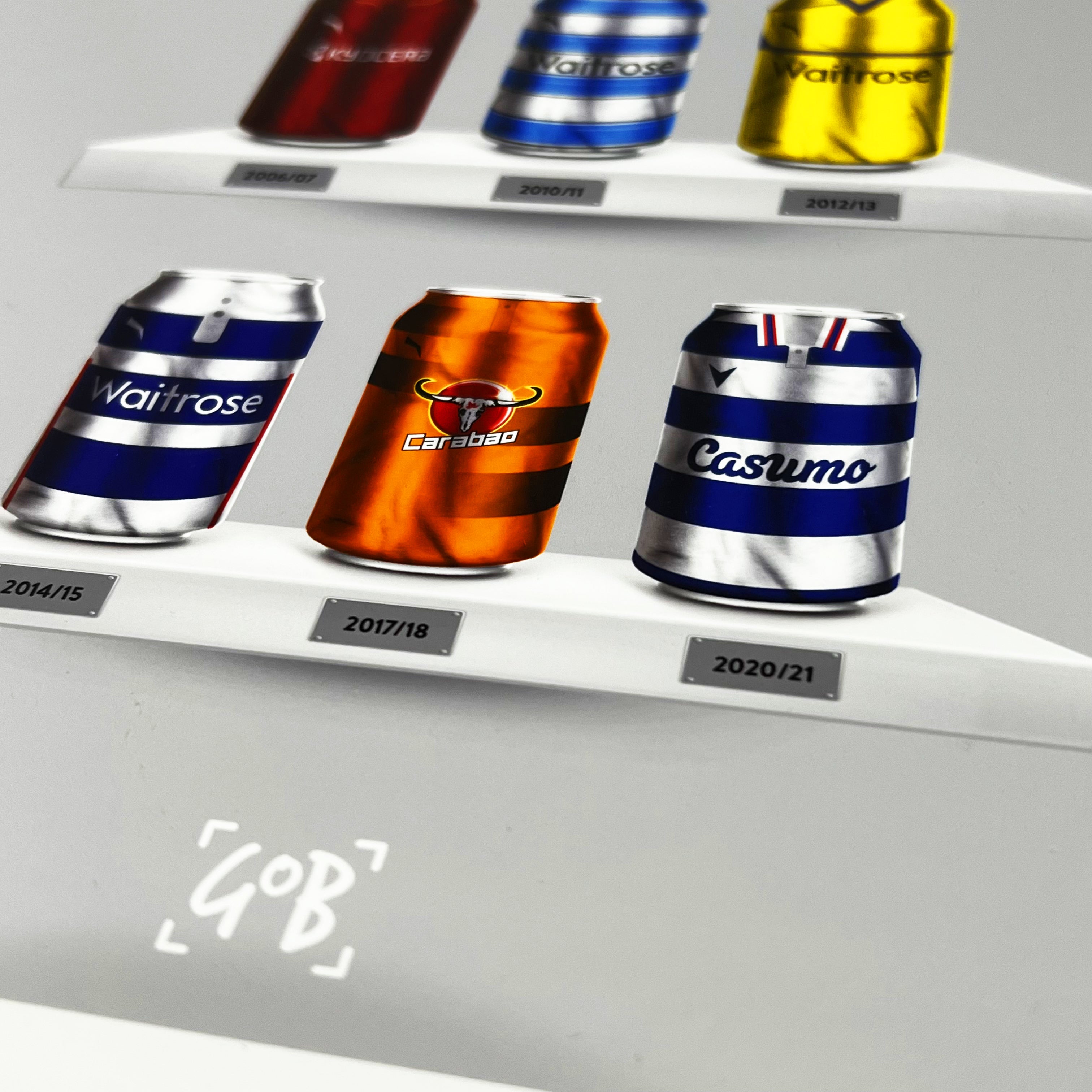 Celebrate legendary football kits from the past few decades, each one digitally illustrated in your choice of our unique can or bottle styles. Printed in high-definition on premium gloss paper, these designs are made to stand out, whether framed or displayed as they are. Also available as a matching T-shirt