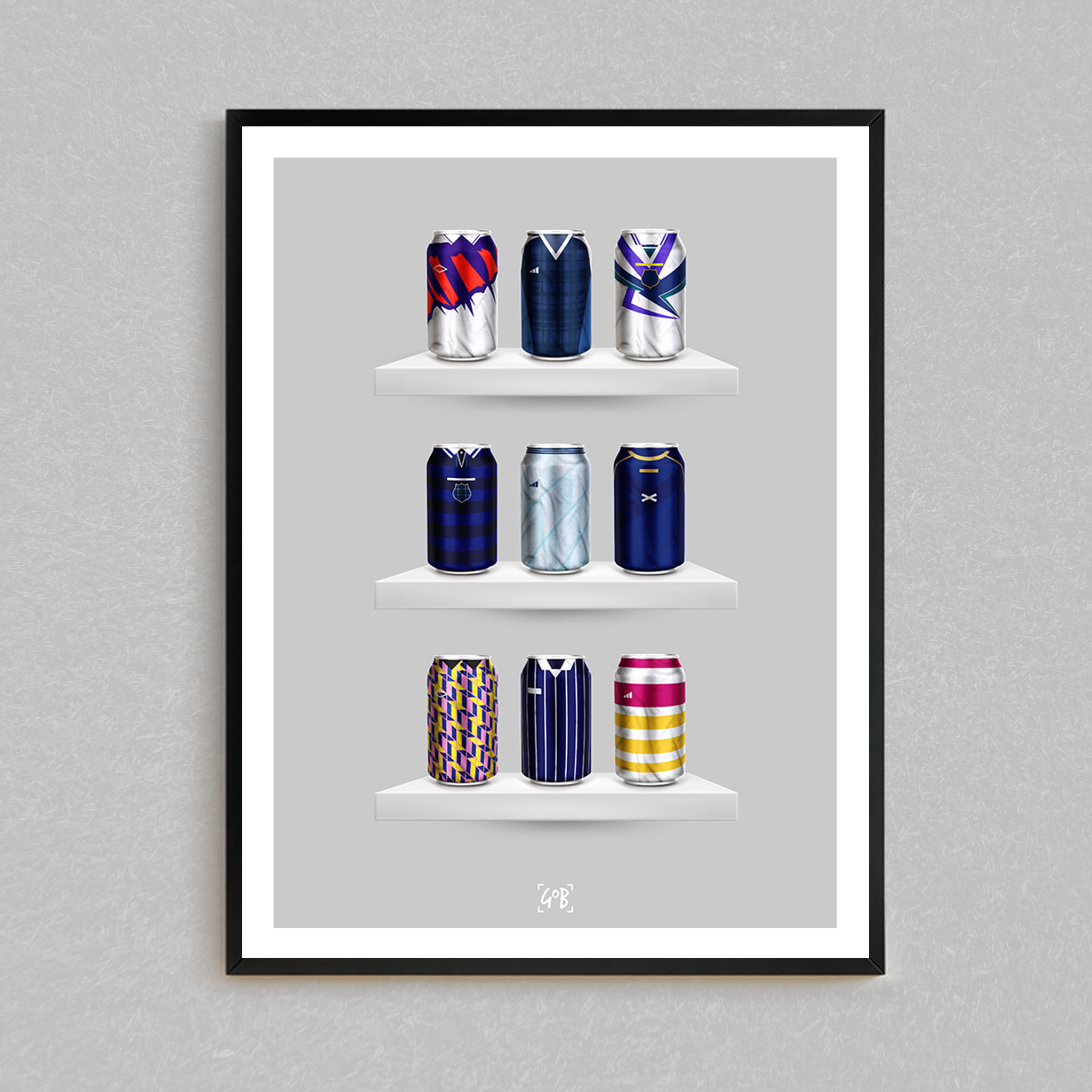 Celebrate legendary football kits from the past few decades, each one digitally illustrated in your choice of our unique can or bottle styles. Printed in high-definition on premium gloss paper, these designs are made to stand out, whether framed or displayed as they are. Also available as a matching T-shirt