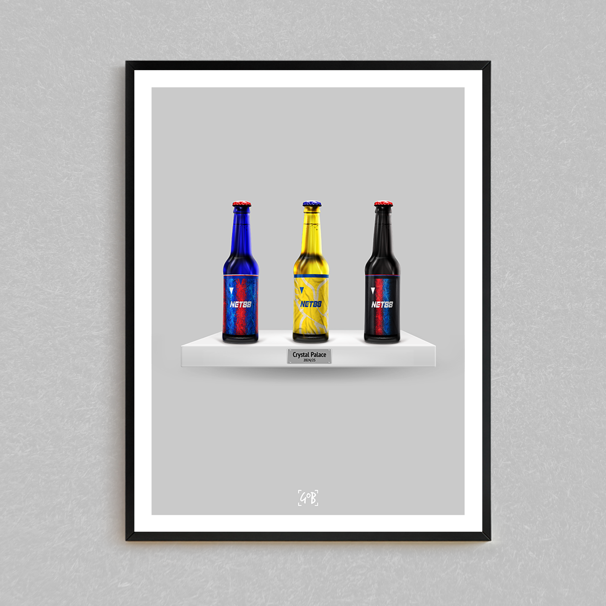 Raise a bottle to the new season. This original art print reimagines the 2024/25 home, away, and third kits as a lineup of collectible beer bottles — a creative fusion of football, design, and post-match tradition.