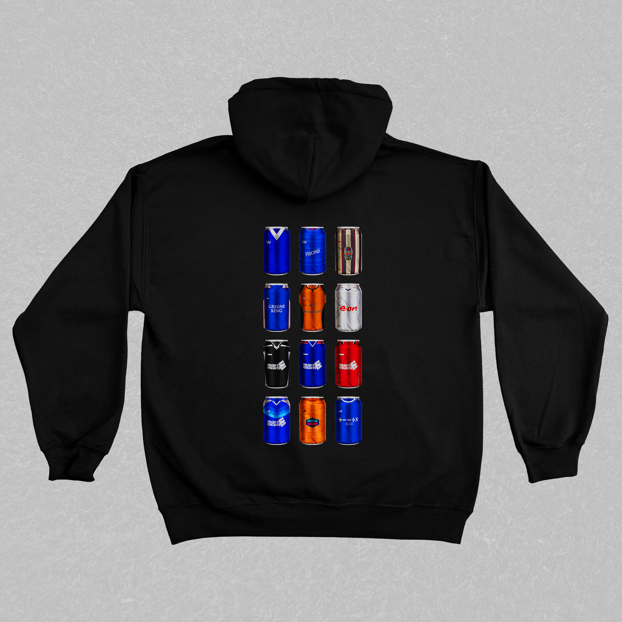 Relive the golden moments of your club’s history with the Classic Can Hoodie — a fan-made masterpiece featuring twelve iconic kits reimagined as collectible beer cans. Every can tells a story of legendary goals, cult heroes, and unforgettable matchdays that shaped your club’s legacy.