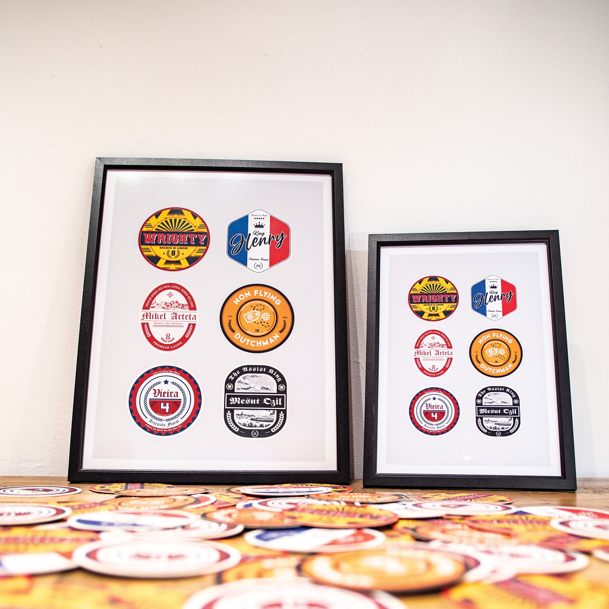 Looking for the perfect gift for a Arsenal fan? Check out these Arsenal inspired beer mat/labels print. Guaranteed to raise a smile of any Arsenal supporter, these themed beer mat/label designs are a unique piece of memorabilia. The print consists of 6 Arsenal legends.