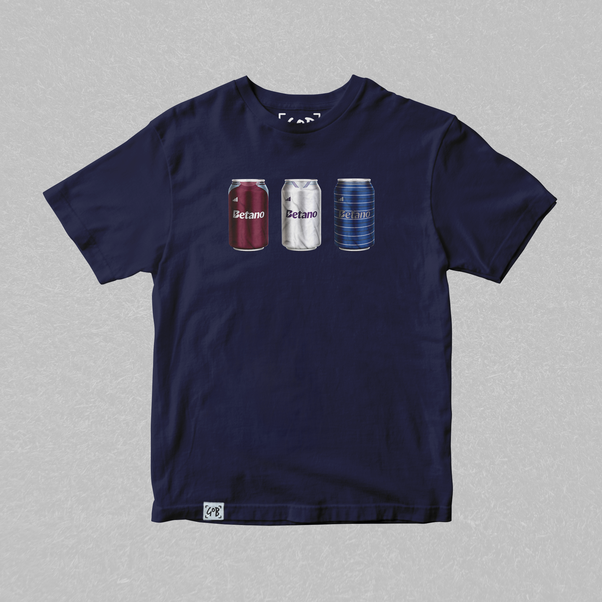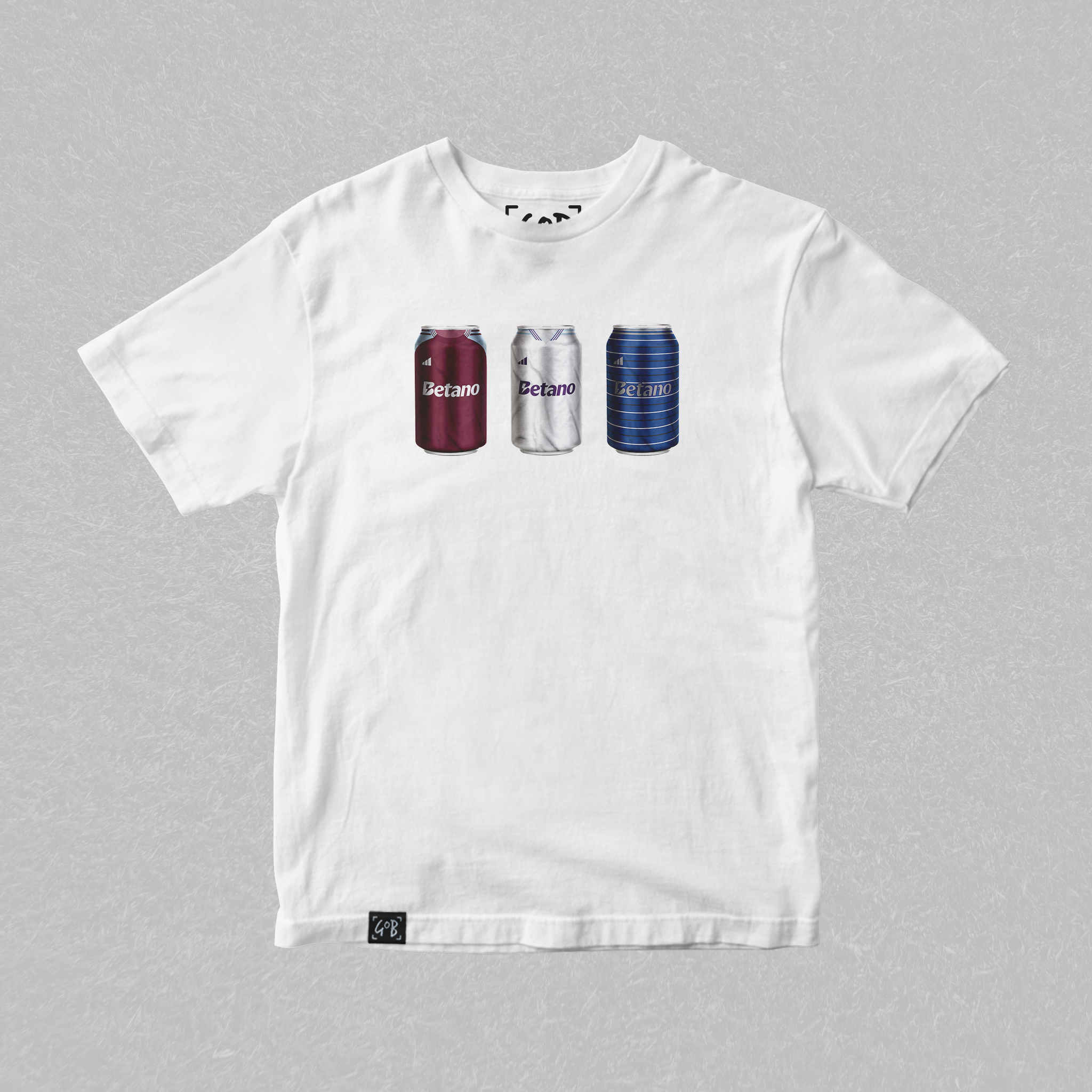 The 2024/25 season, canned. This fan-designed tee reimagines the latest home, away, and third kits as bold, collectible beer cans — each one a tribute to football, design, and post-match culture.