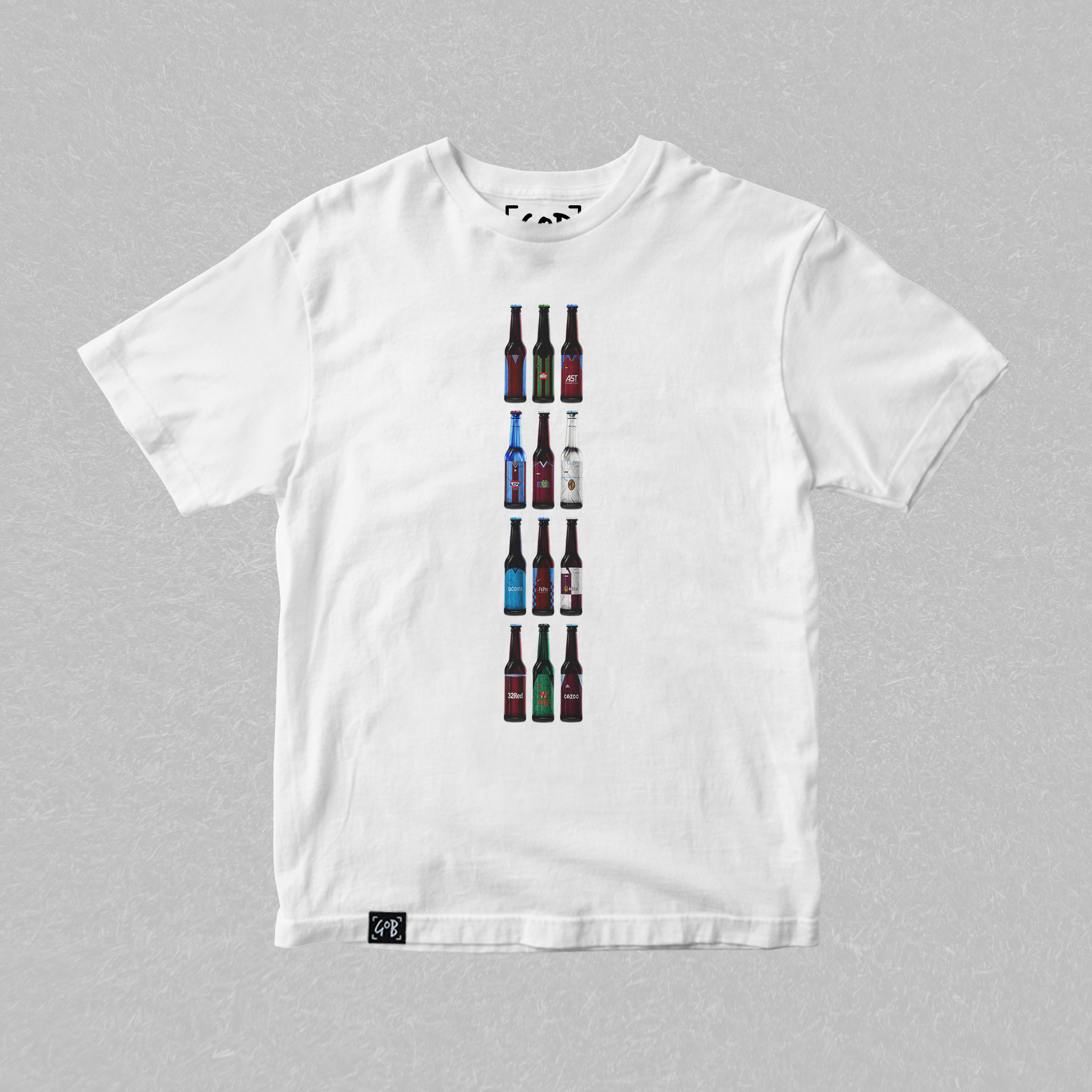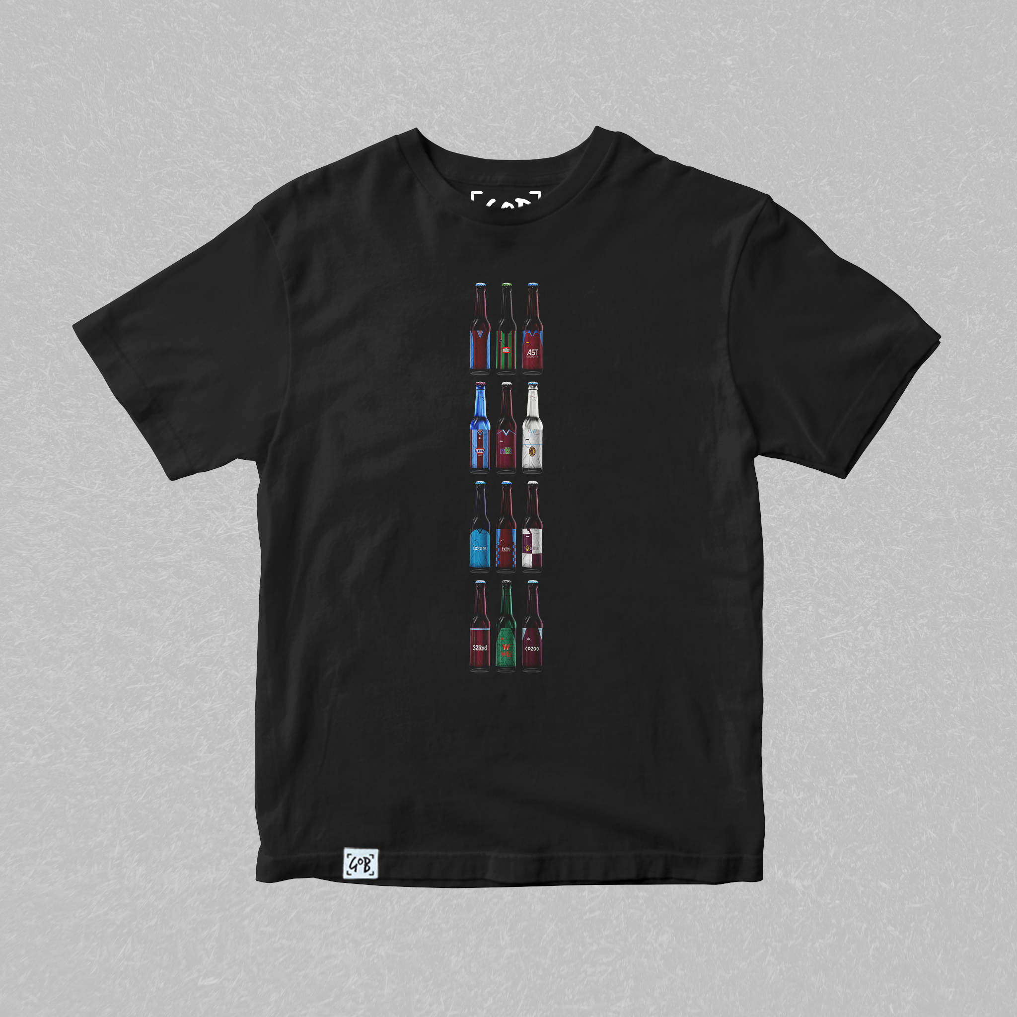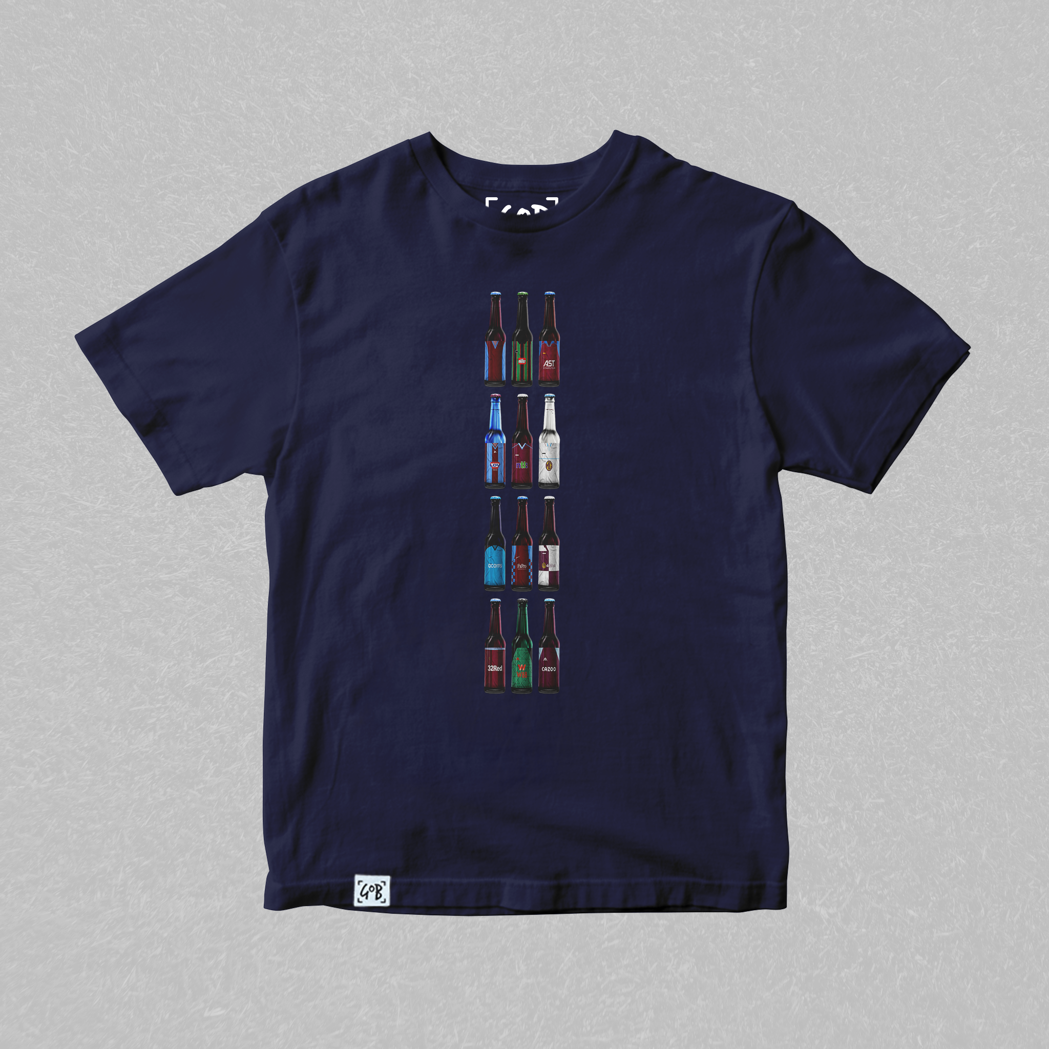 Twelve iconic kits from your club’s past, reimagined as collectible beer bottles in a bold, fan-made design. Each bottle tells a story — of unforgettable goals, cult heroes, and matchdays etched into football history. Crafted for supporters who carry the legacy, this tee is a wearable celebration of heritage, pride, and pints.