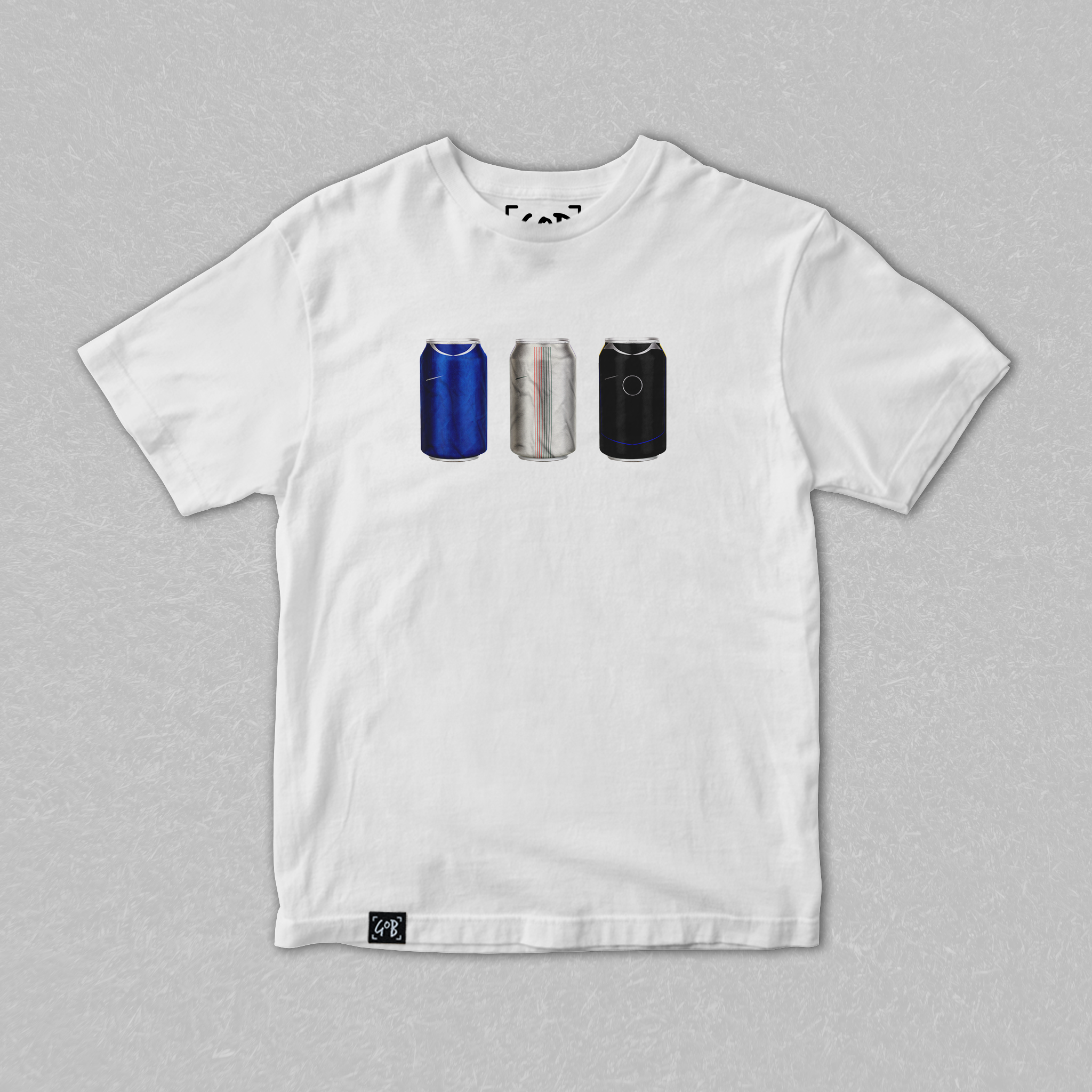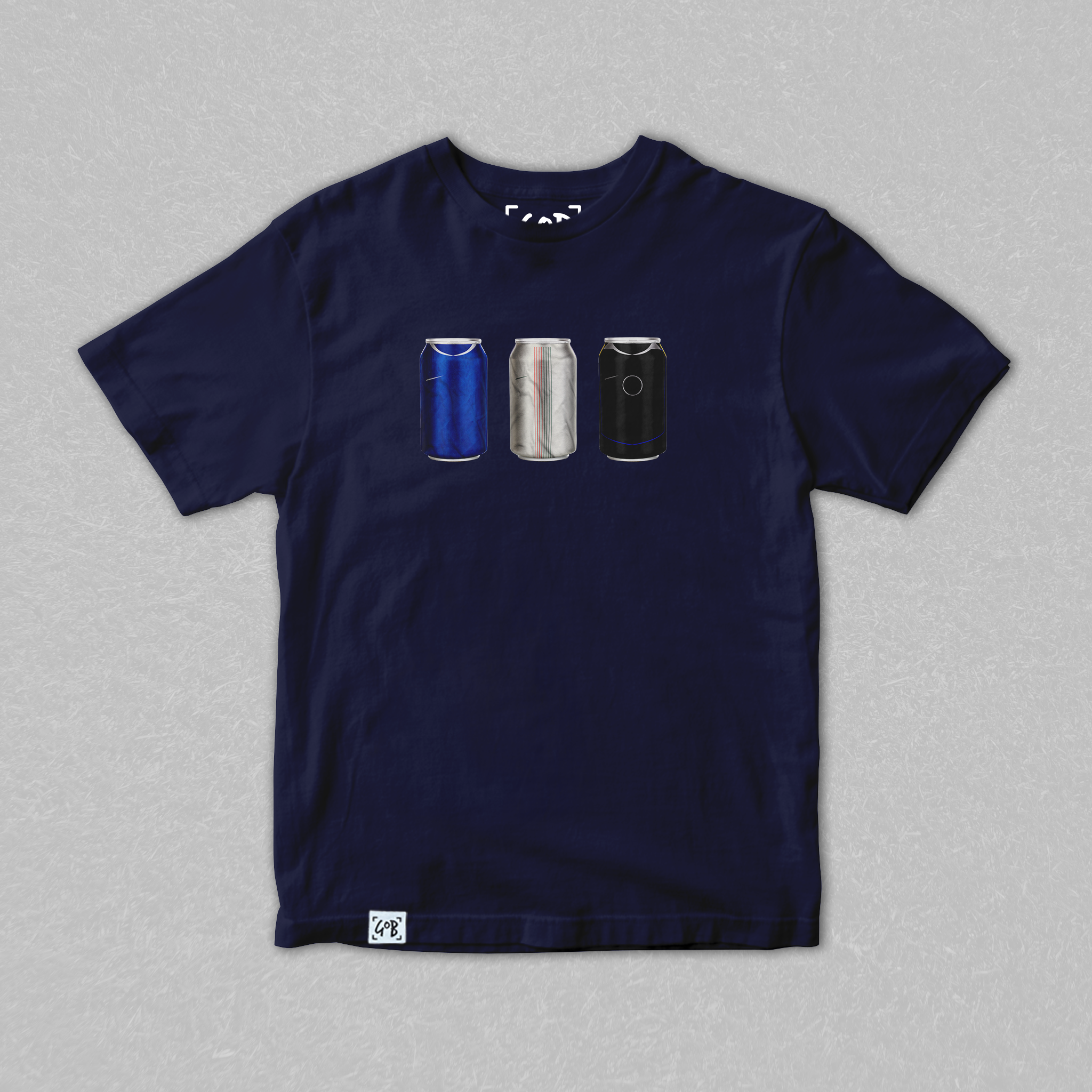 The 2025/26 season, canned. This fan-designed tee reimagines the latest home, away, and third kits as bold, collectible beer cans — each one a tribute to football, design, and post-match culture.