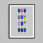 Celebrate legendary football kits from the past few decades, each one digitally illustrated in your choice of our unique can or bottle styles. Printed in high-definition on premium gloss paper, these designs are made to stand out, whether framed or displayed as they are. Also available as a matching T-shirt