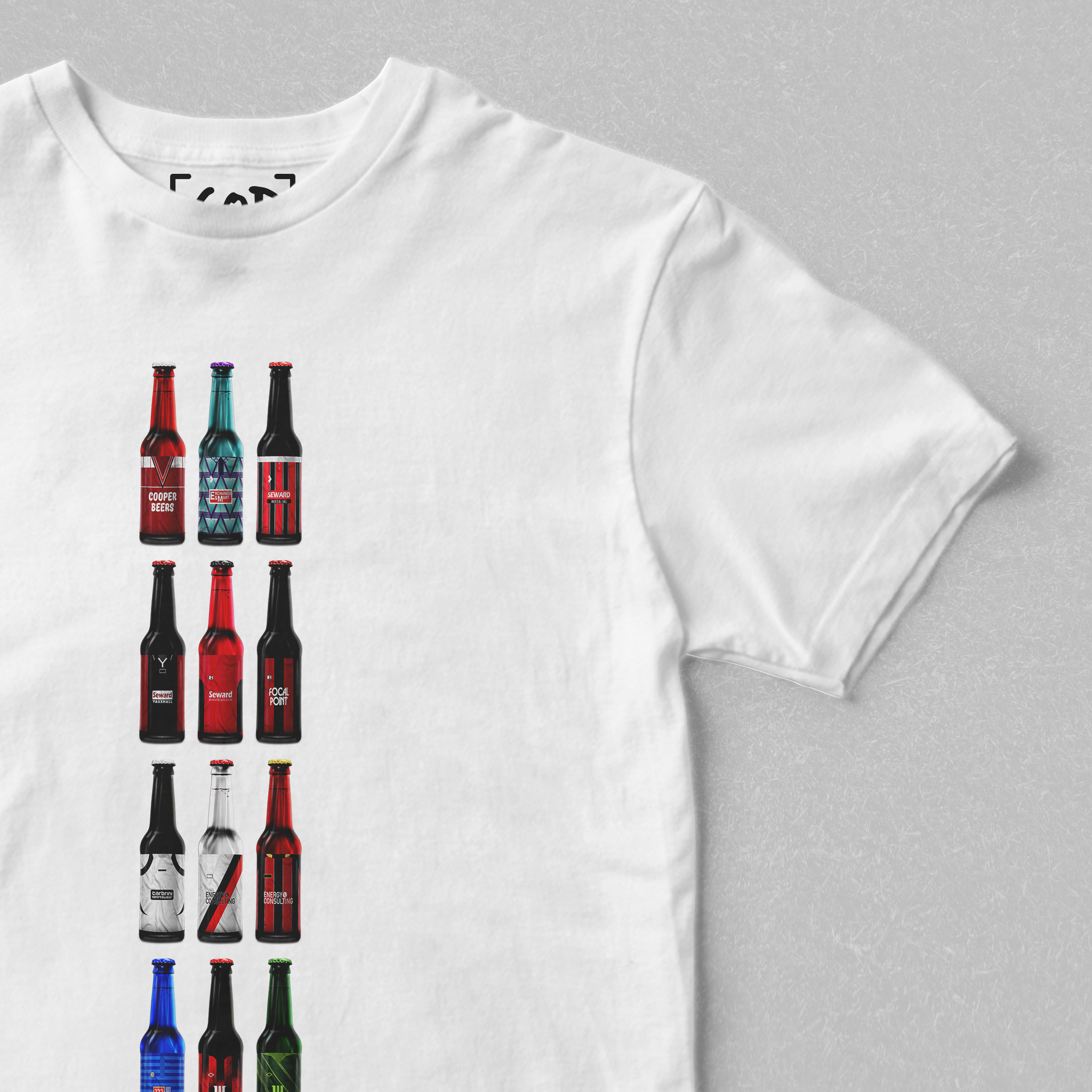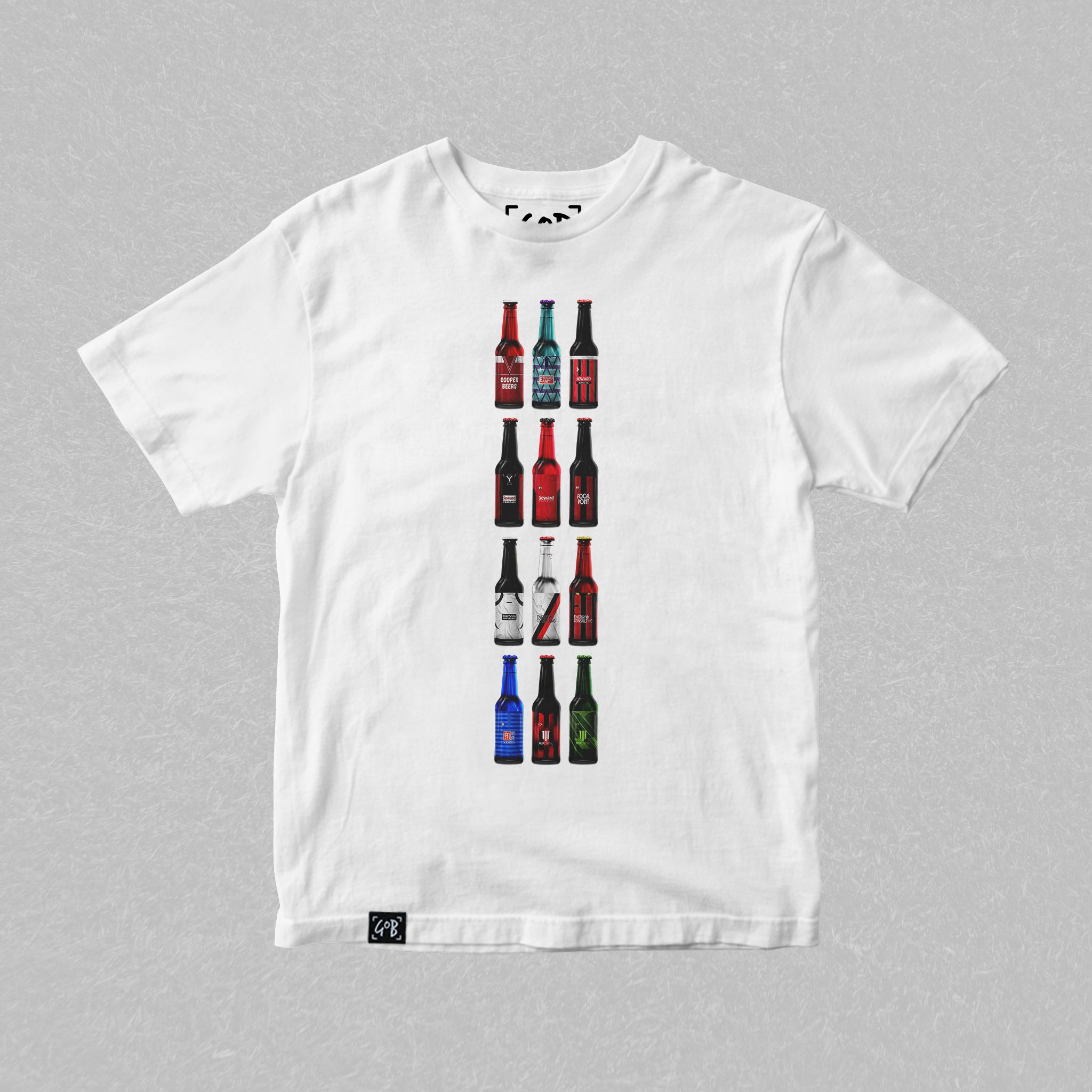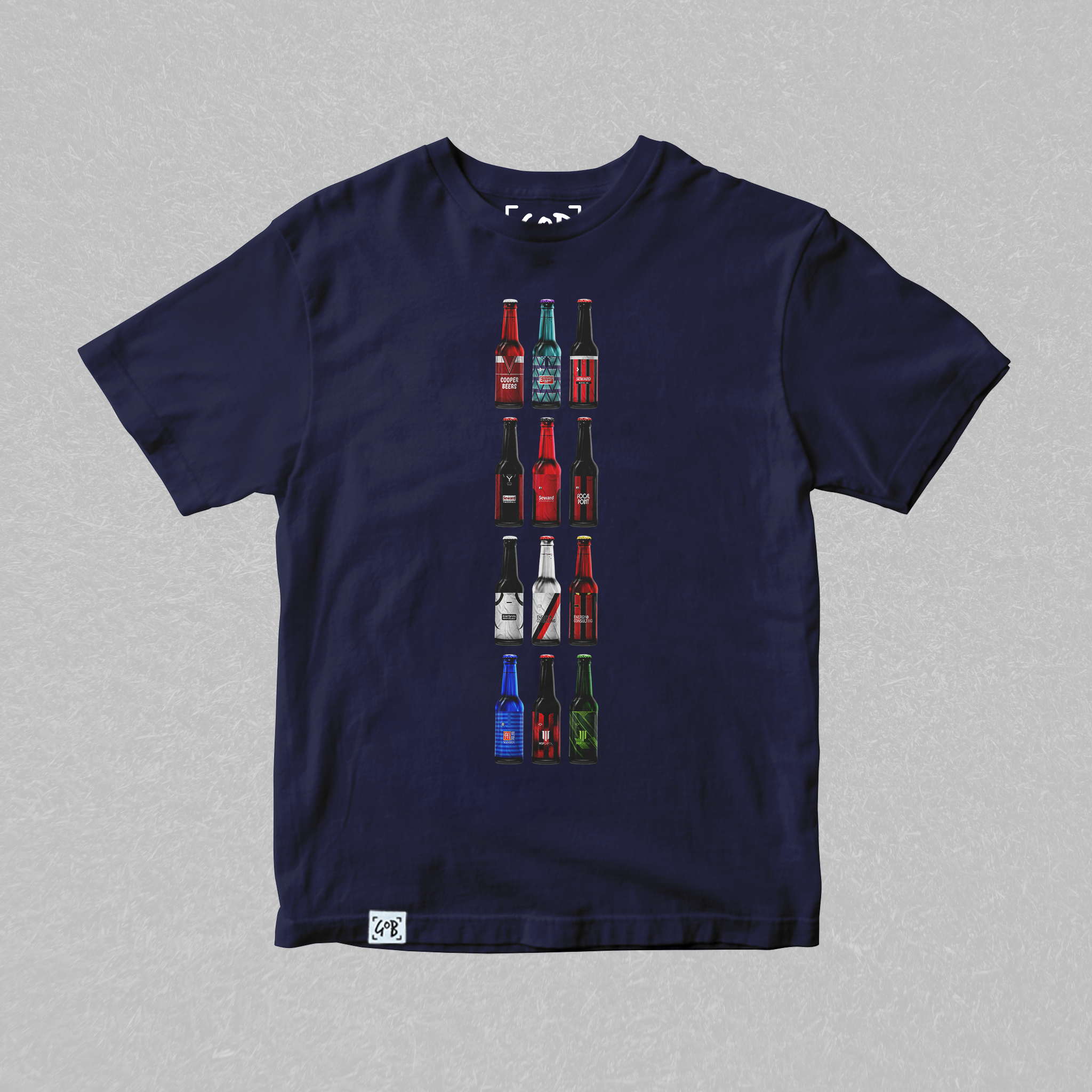 Twelve iconic kits from your club’s past, reimagined as collectible beer bottles in a bold, fan-made design. Each bottle tells a story — of unforgettable goals, cult heroes, and matchdays etched into football history. Crafted for supporters who carry the legacy, this tee is a wearable celebration of heritage, pride, and pints.