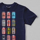 Twelve iconic kits from your club’s past, reimagined as collectible beer cans in a bold, fan-made design. Each can tells a story — of unforgettable goals, cult heroes, and matchdays etched into football history. Crafted for supporters who carry the legacy, this tee is a wearable celebration of heritage, pride, and pints.