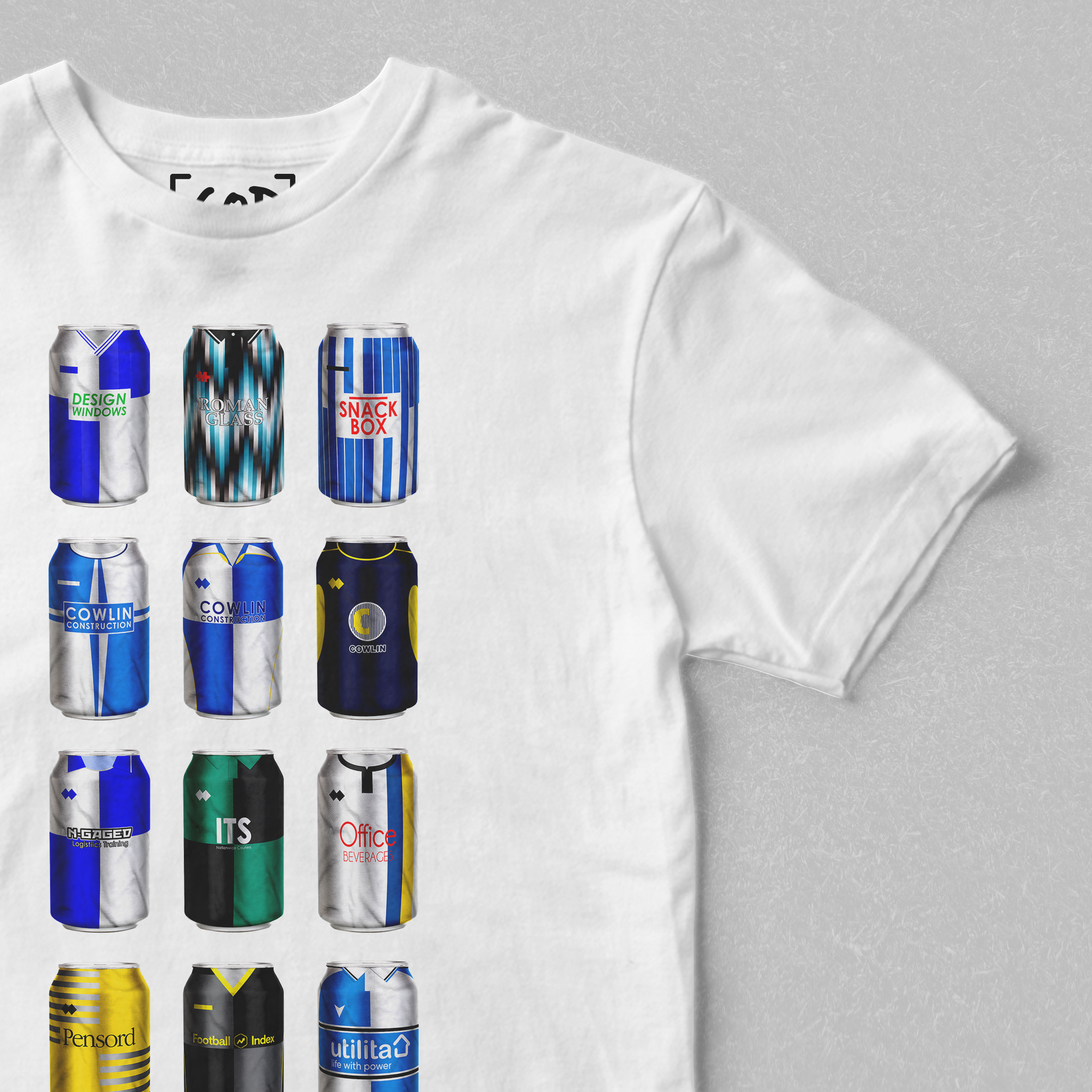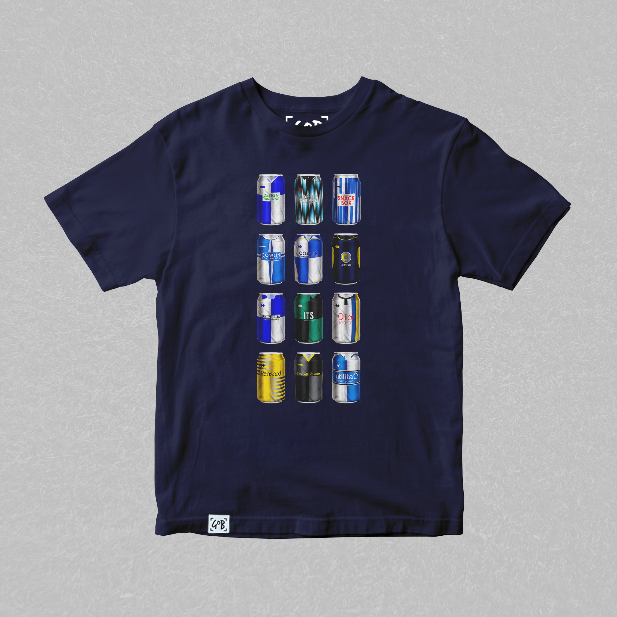 Twelve iconic kits from your club’s past, reimagined as collectible beer cans in a bold, fan-made design. Each can tells a story — of unforgettable goals, cult heroes, and matchdays etched into football history. Crafted for supporters who carry the legacy, this tee is a wearable celebration of heritage, pride, and pints.