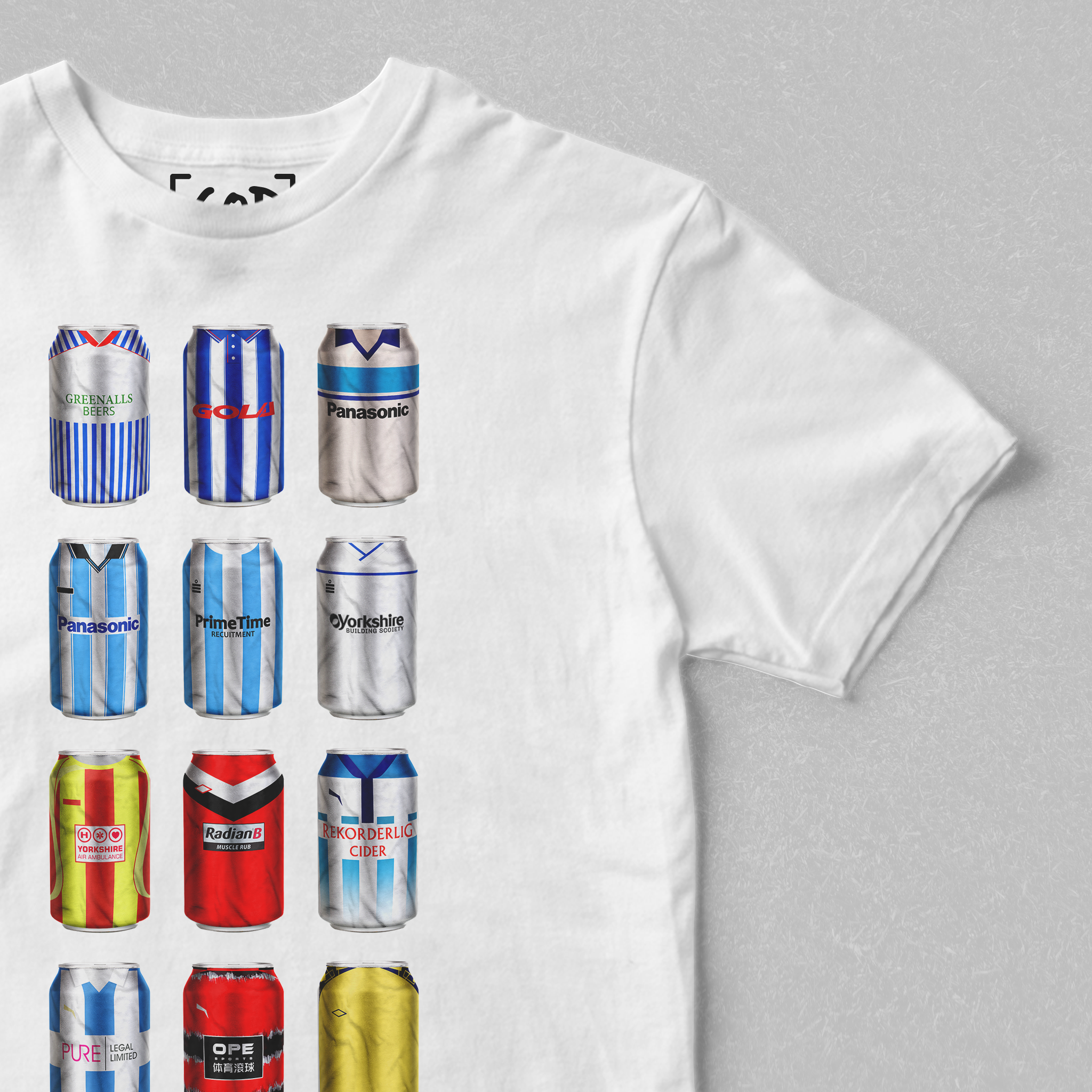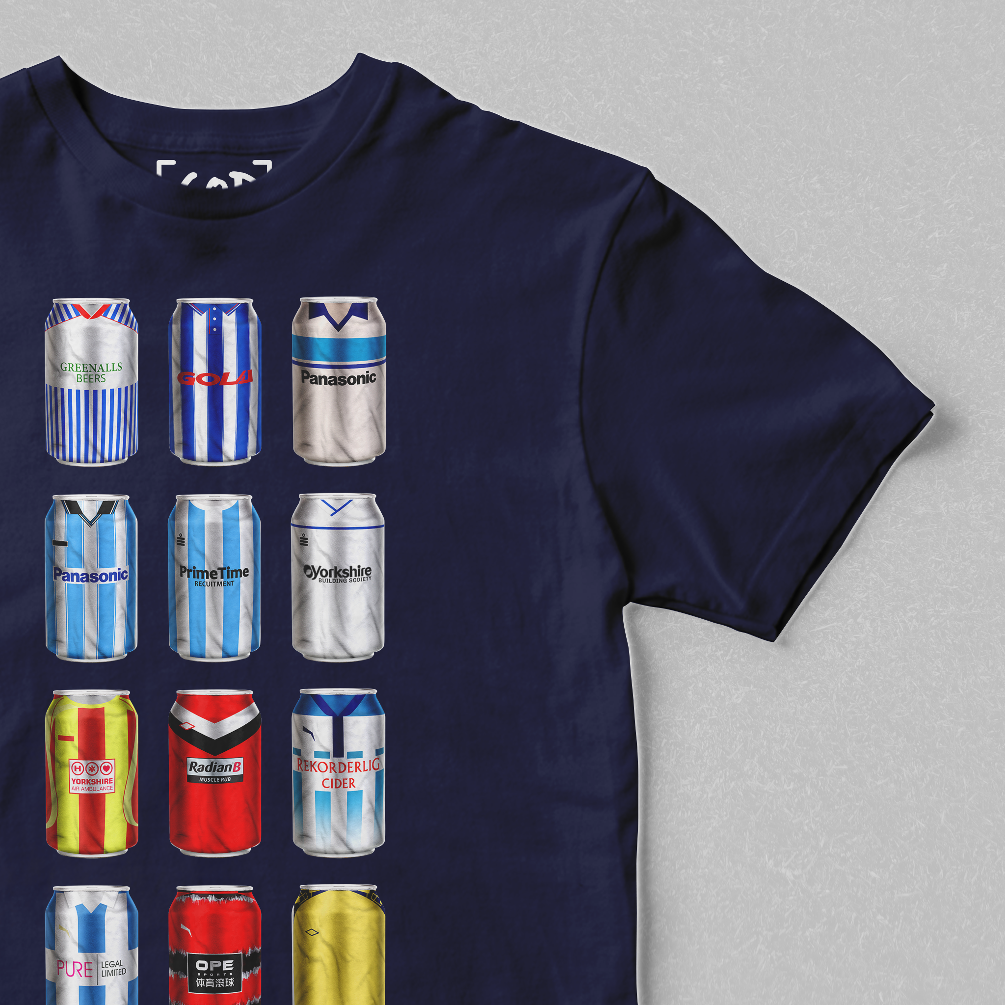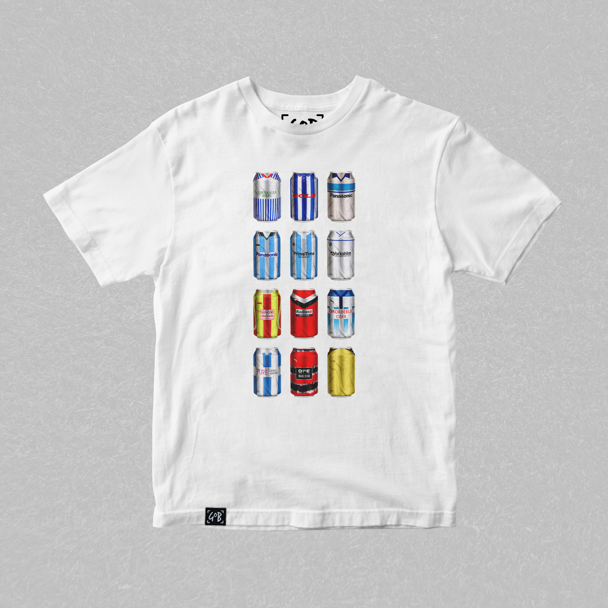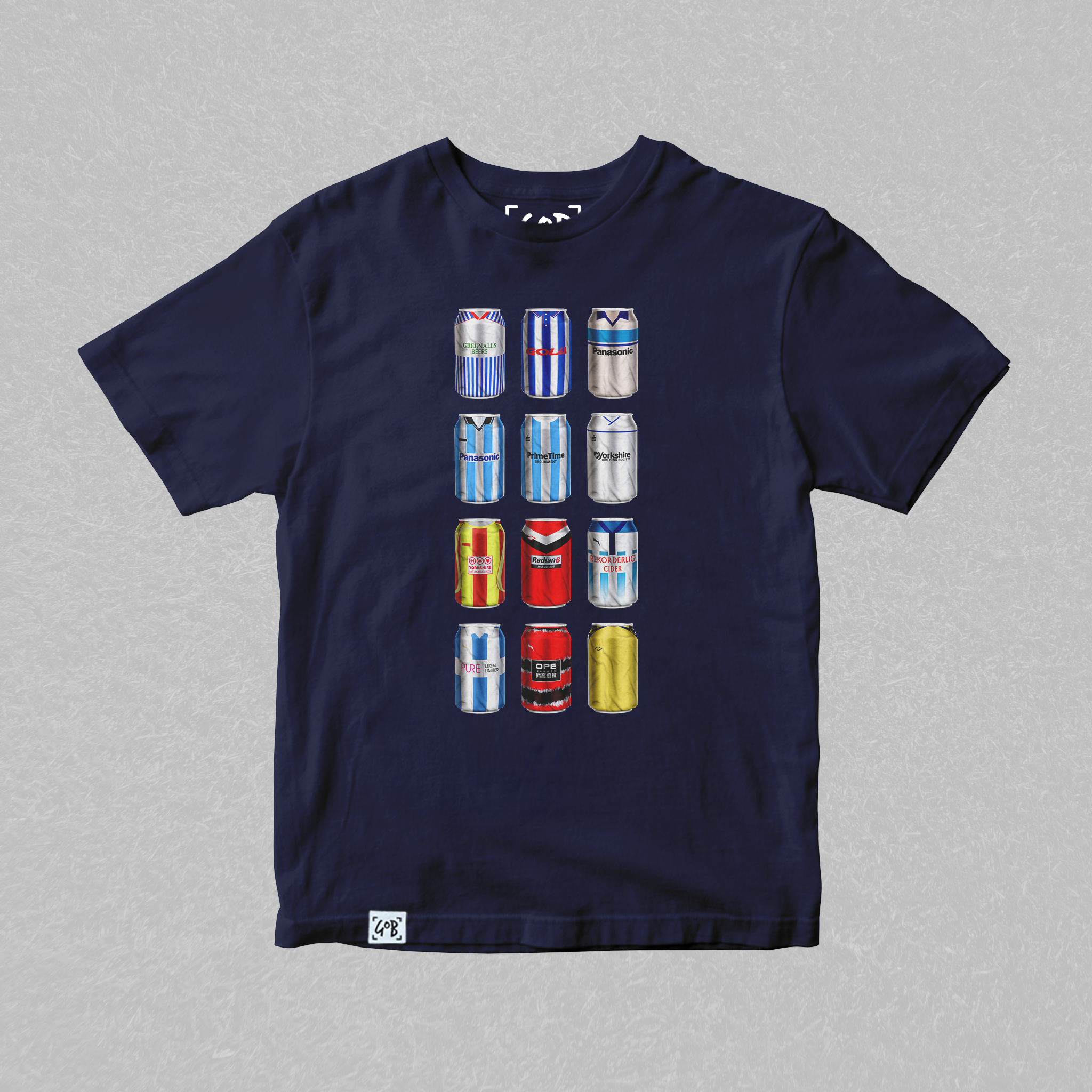 Twelve iconic kits from your club’s past, reimagined as collectible beer cans in a bold, fan-made design. Each can tells a story — of unforgettable goals, cult heroes, and matchdays etched into football history. Crafted for supporters who carry the legacy, this tee is a wearable celebration of heritage, pride, and pints.