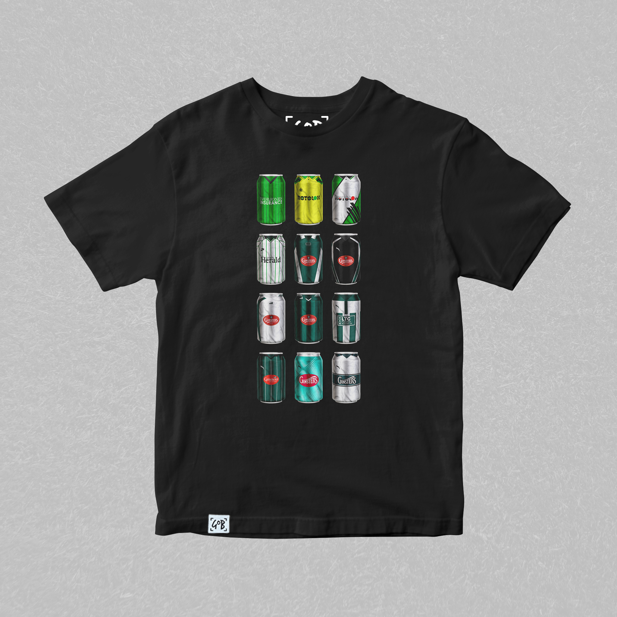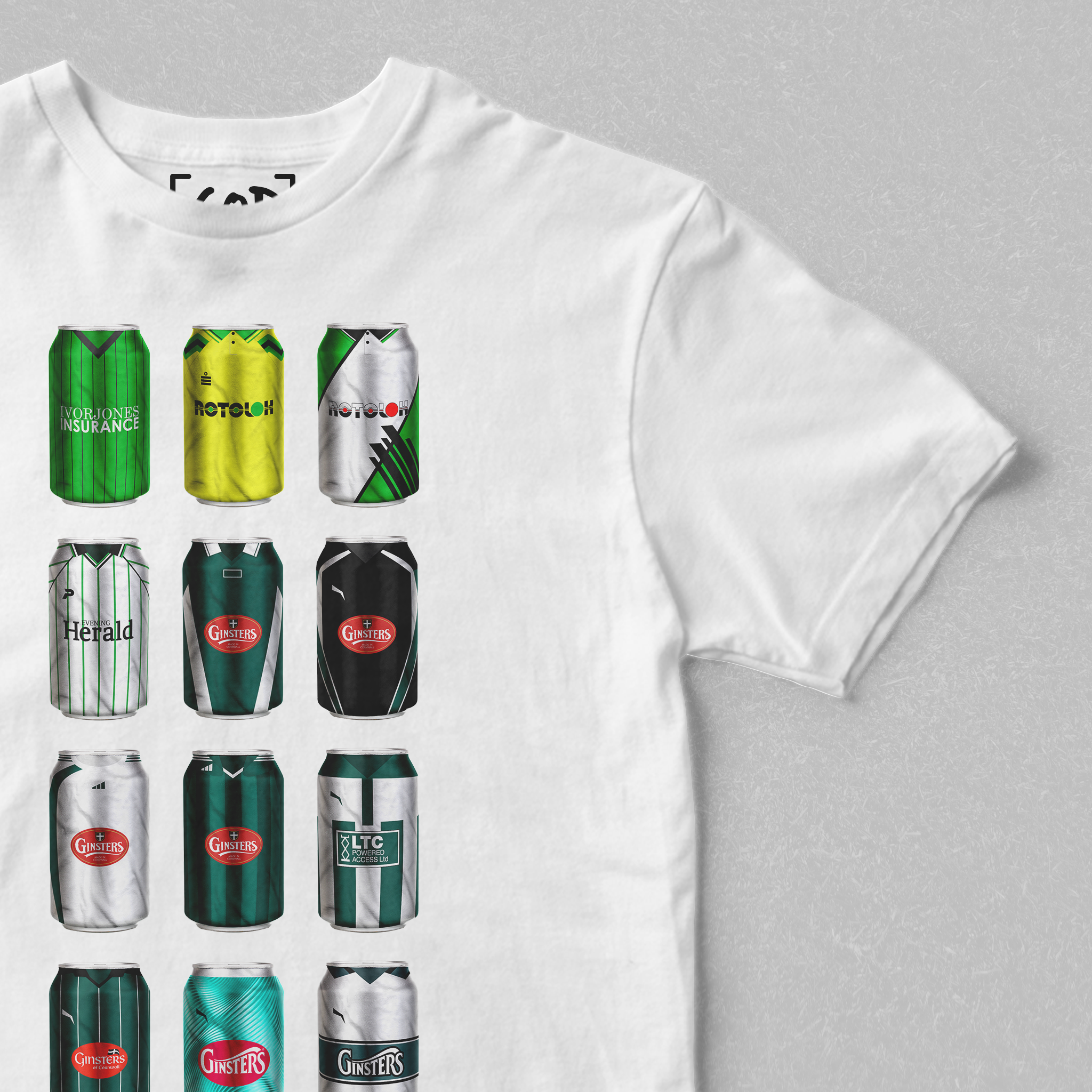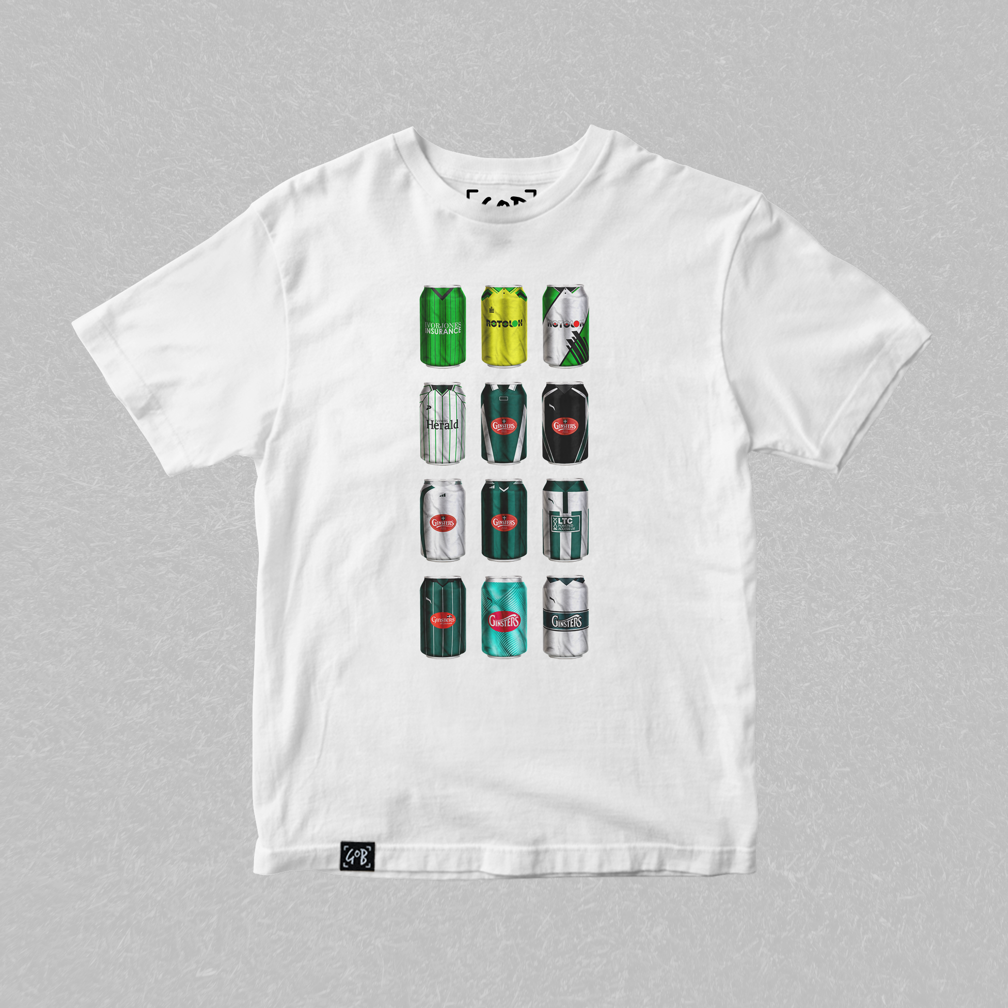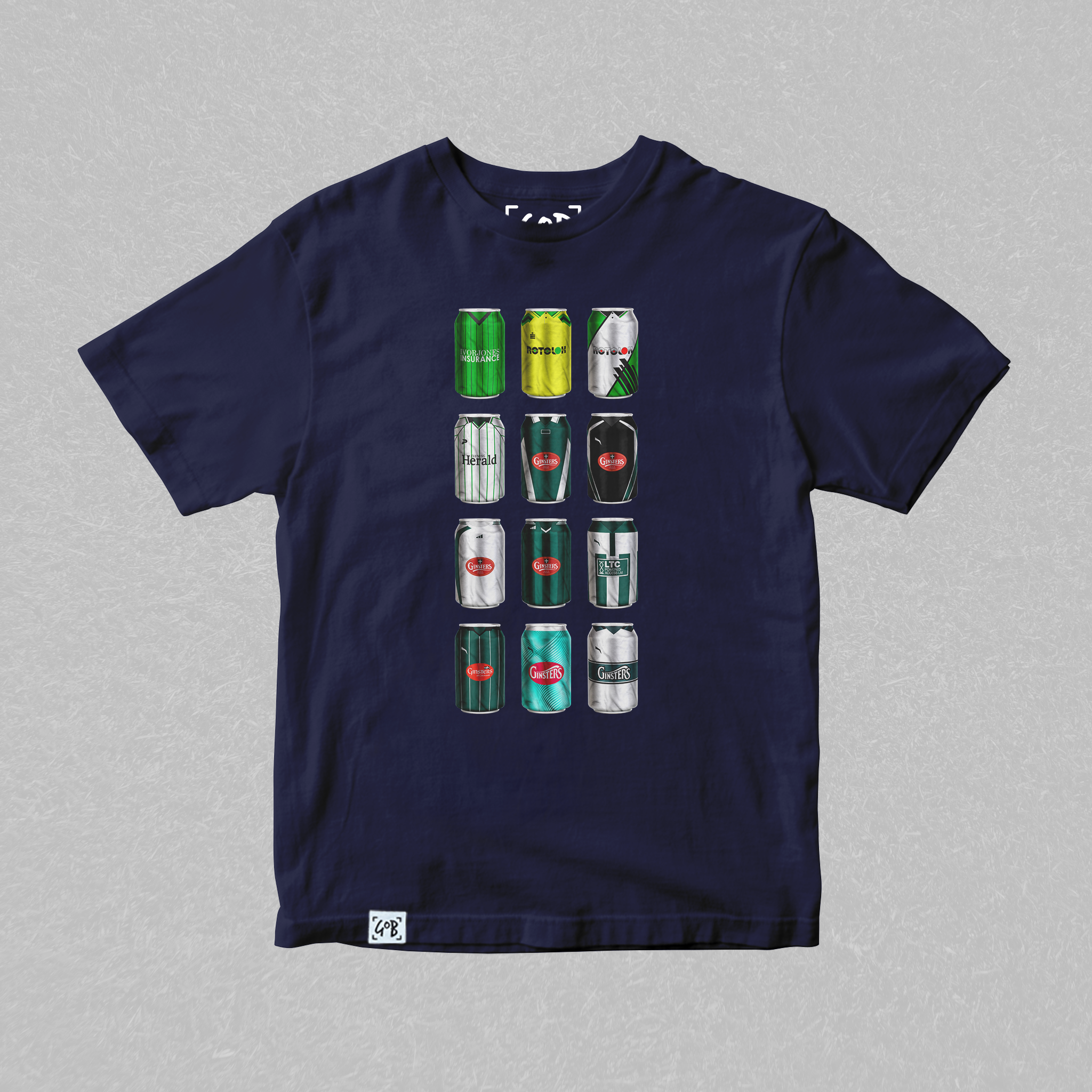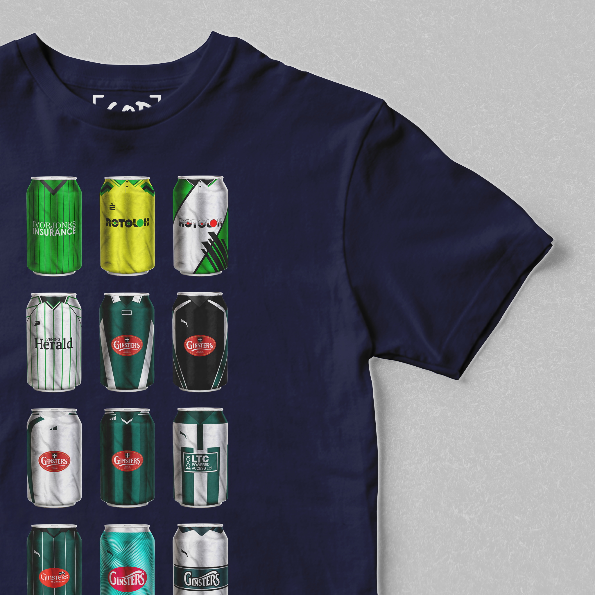 Twelve iconic kits from your club’s past, reimagined as collectible beer cans in a bold, fan-made design. Each can tells a story — of unforgettable goals, cult heroes, and matchdays etched into football history. Crafted for supporters who carry the legacy, this tee is a wearable celebration of heritage, pride, and pints.