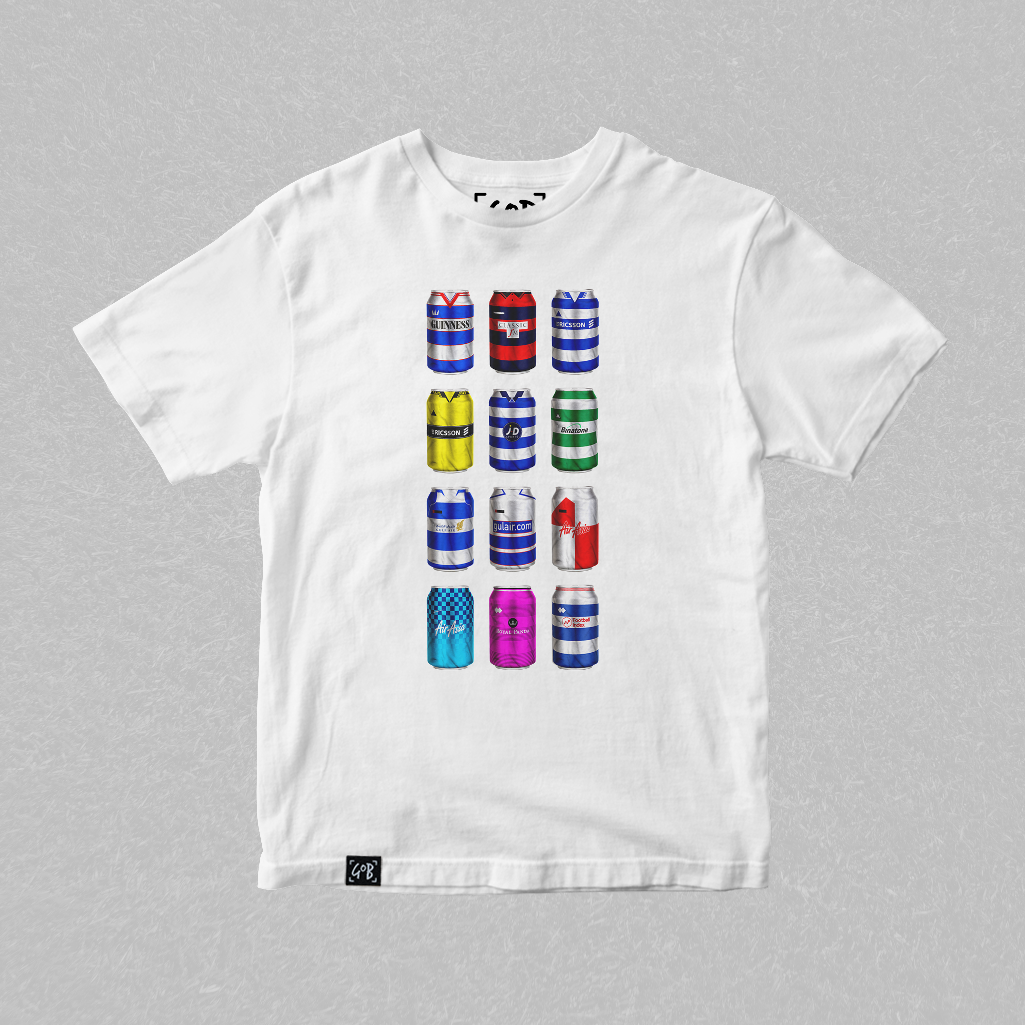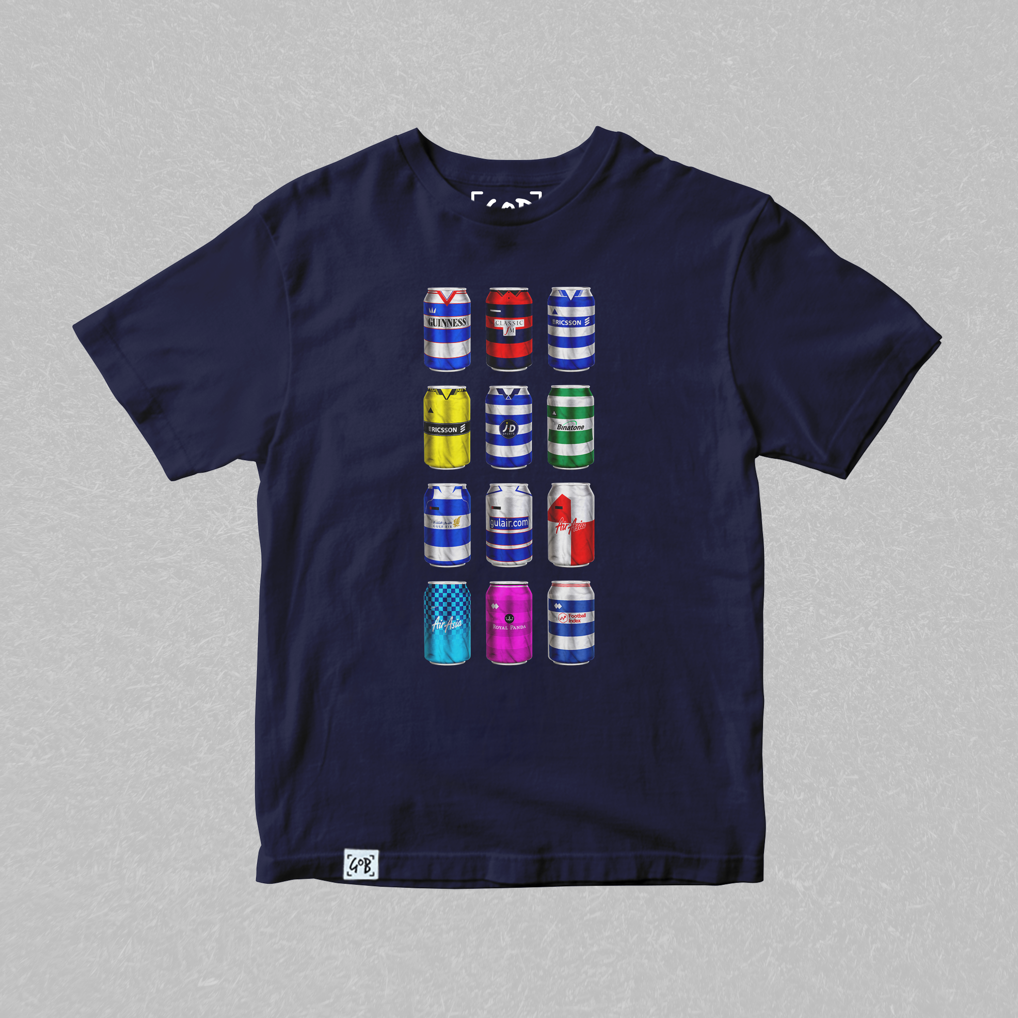 Twelve iconic kits from your club’s past, reimagined as collectible beer cans in a bold, fan-made design. Each can tells a story — of unforgettable goals, cult heroes, and matchdays etched into football history. Crafted for supporters who carry the legacy, this tee is a wearable celebration of heritage, pride, and pints.