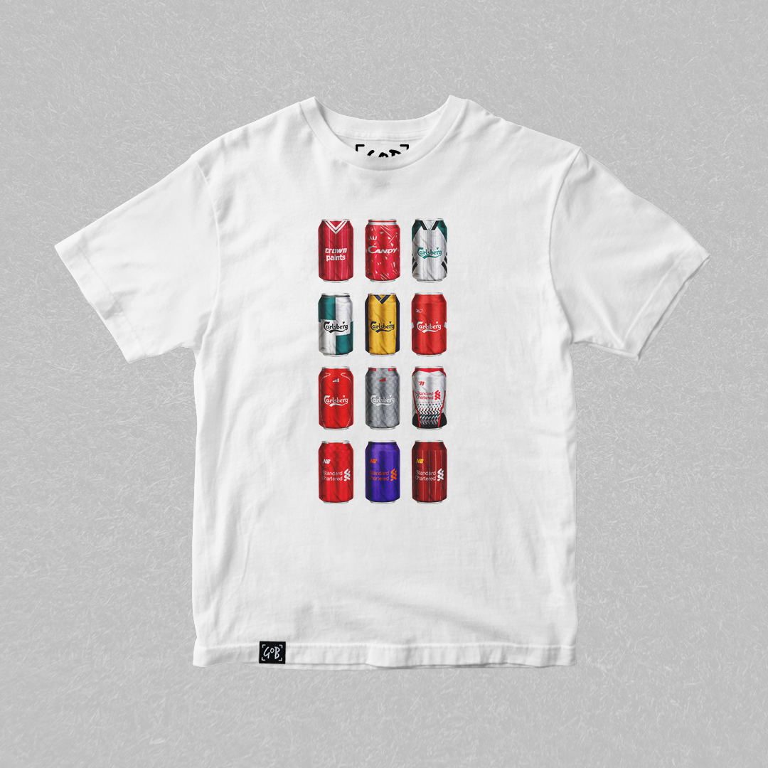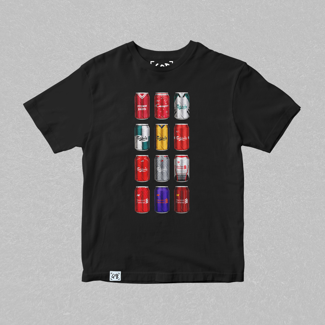 Twelve iconic kits from your club’s past, reimagined as collectible beer cans in a bold, fan-made design. Each can tells a story — of unforgettable goals, cult heroes, and matchdays etched into football history. Crafted for supporters who carry the legacy, this tee is a wearable celebration of heritage, pride, and pints.