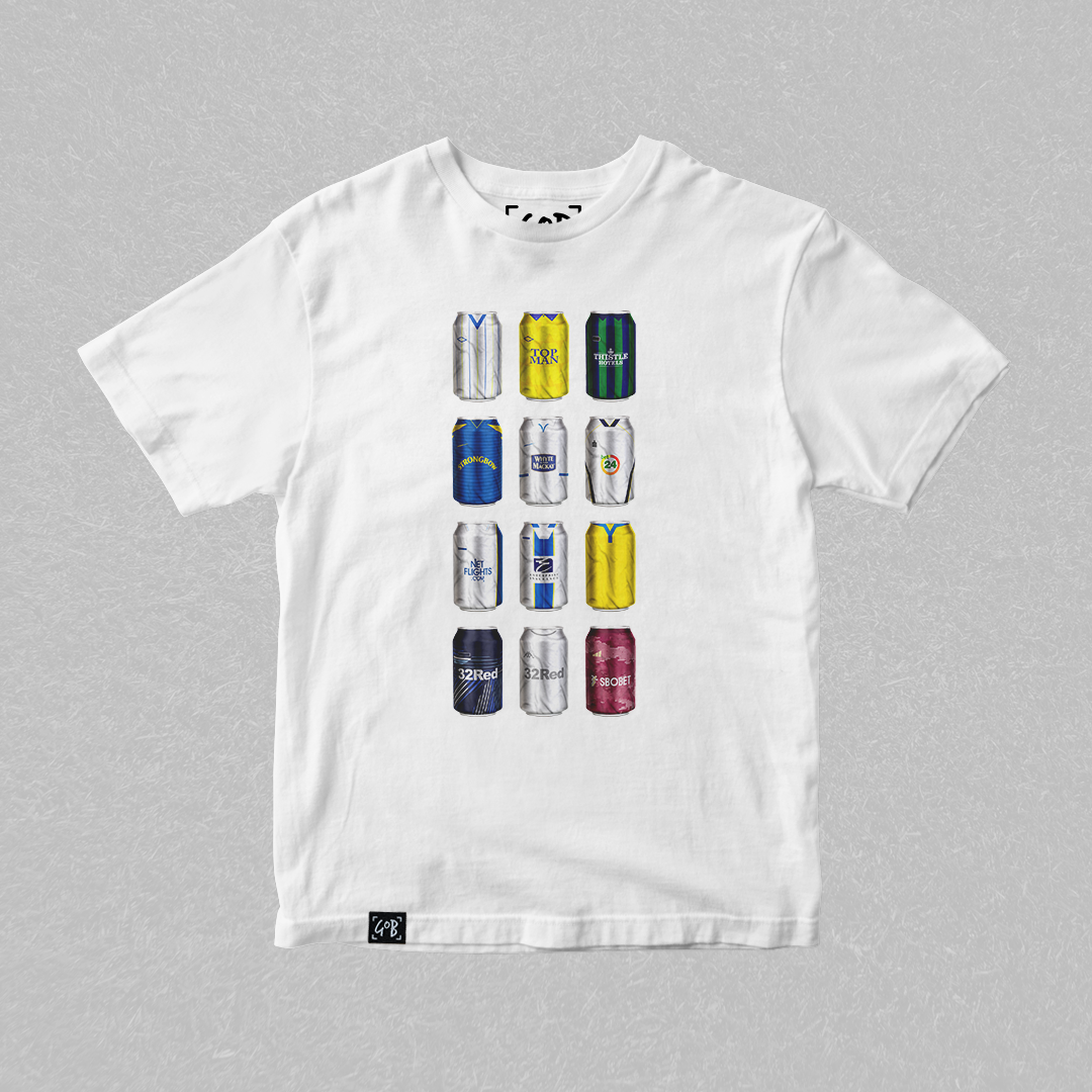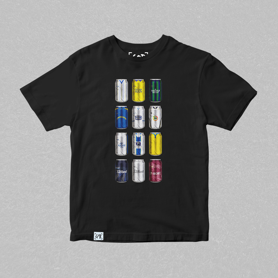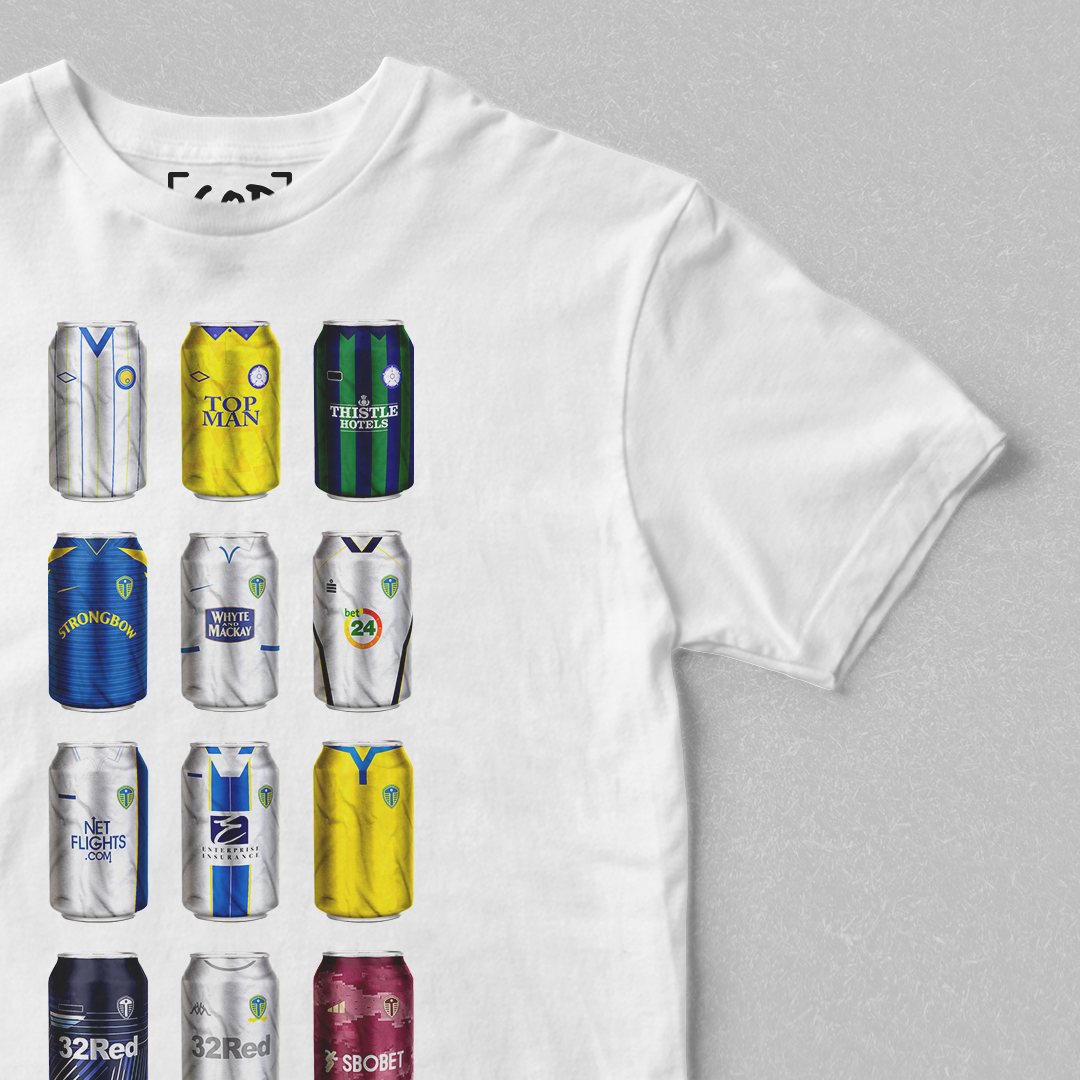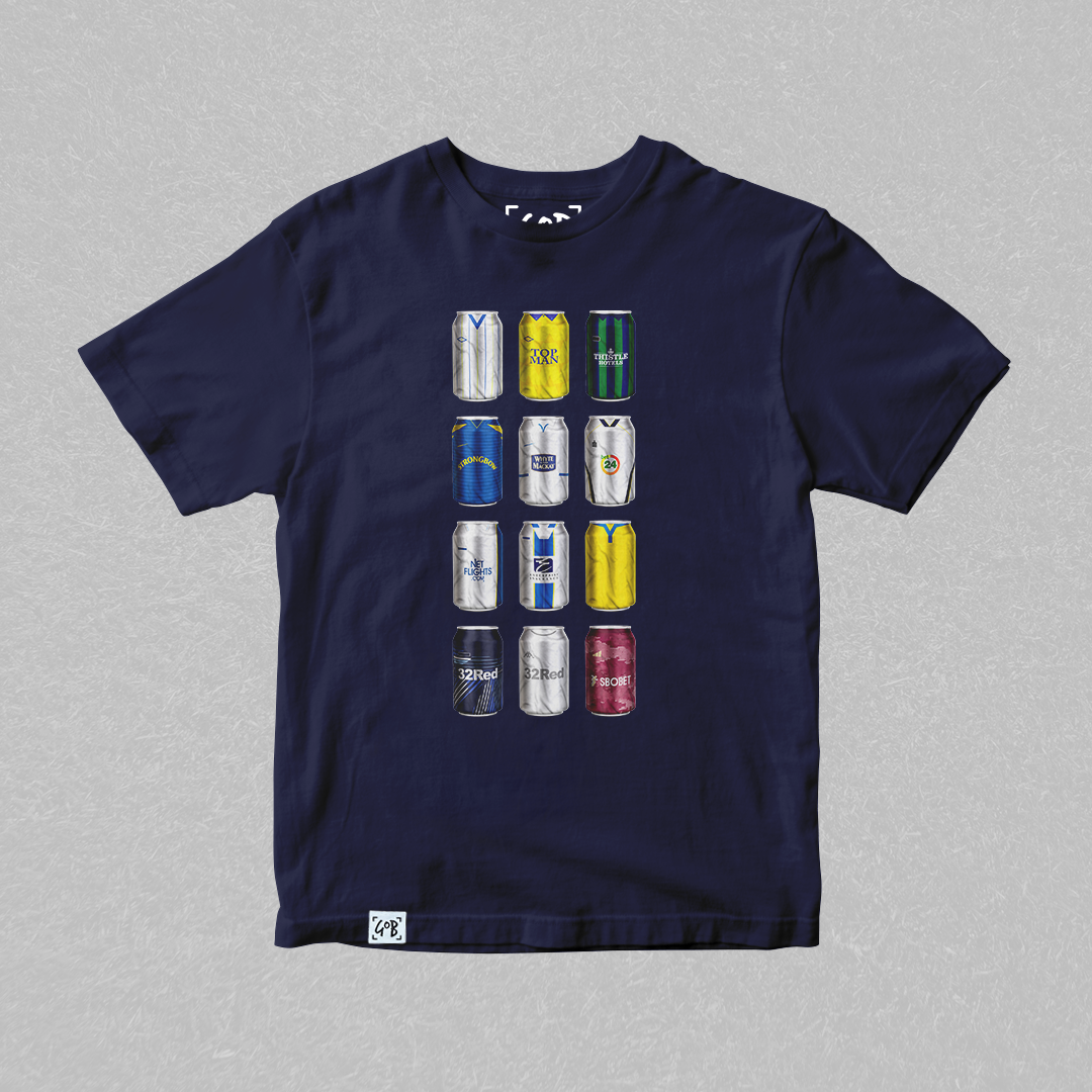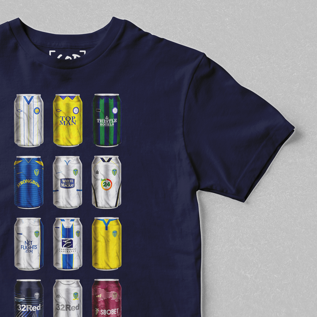 Twelve iconic kits from your club’s past, reimagined as collectible beer cans in a bold, fan-made design. Each can tells a story — of unforgettable goals, cult heroes, and matchdays etched into football history. Crafted for supporters who carry the legacy, this tee is a wearable celebration of heritage, pride, and pints.