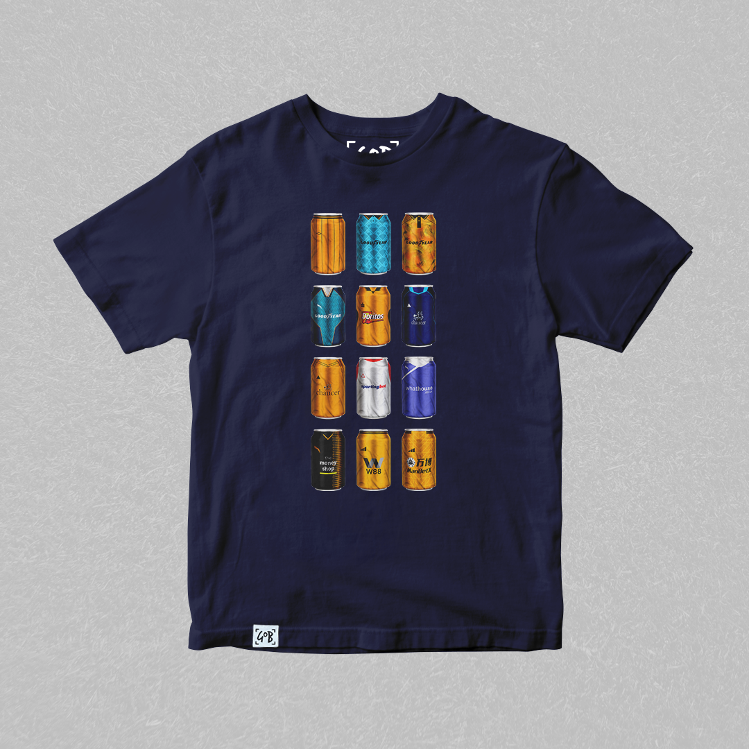 Twelve iconic kits from your club’s past, reimagined as collectible beer cans in a bold, fan-made design. Each can tells a story — of unforgettable goals, cult heroes, and matchdays etched into football history. Crafted for supporters who carry the legacy, this tee is a wearable celebration of heritage, pride, and pints.