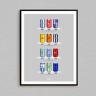 Celebrate legendary football kits from the past few decades, each one digitally illustrated in your choice of our unique can or bottle styles. Printed in high-definition on premium gloss paper, these designs are made to stand out, whether framed or displayed as they are. Also available as a matching T-shirt
