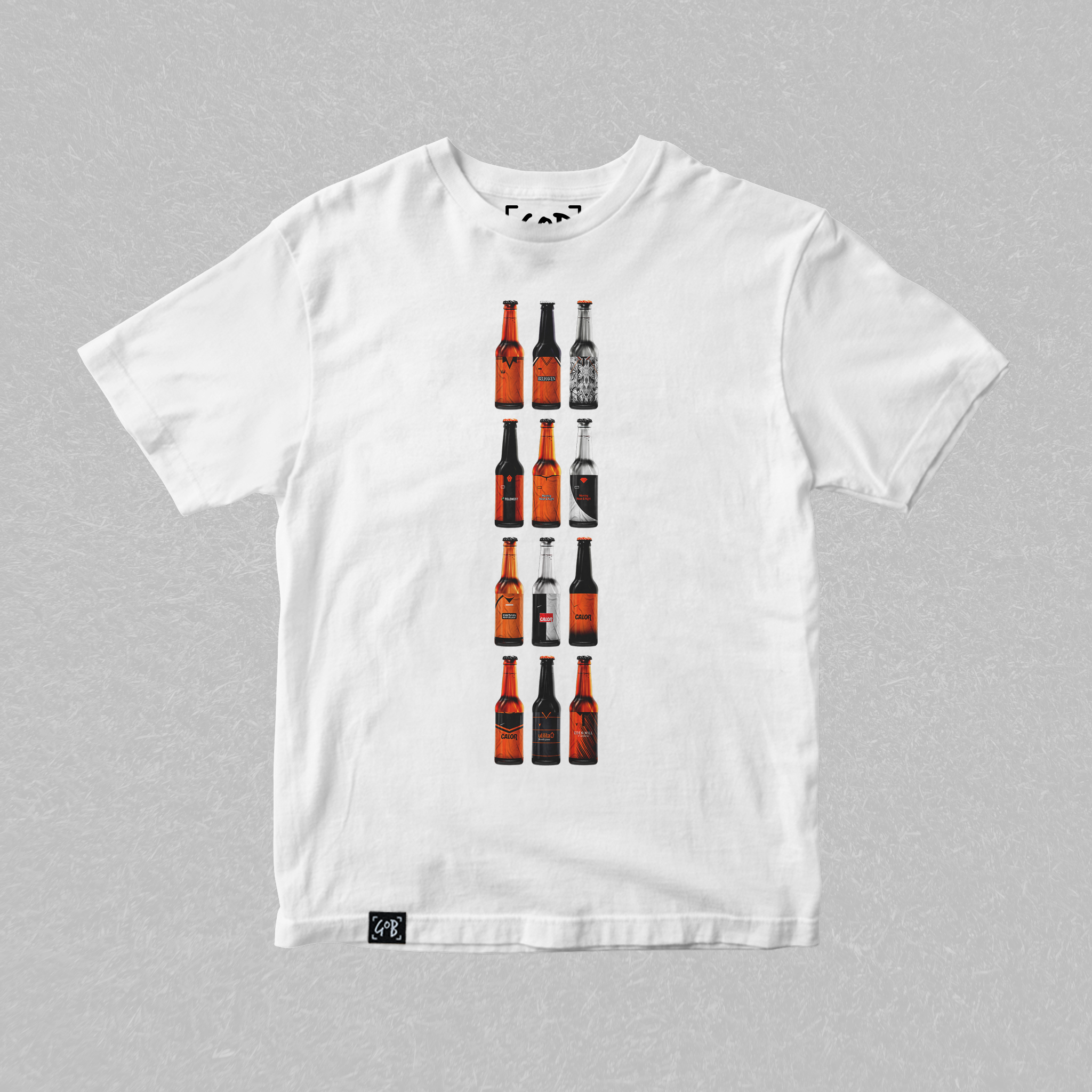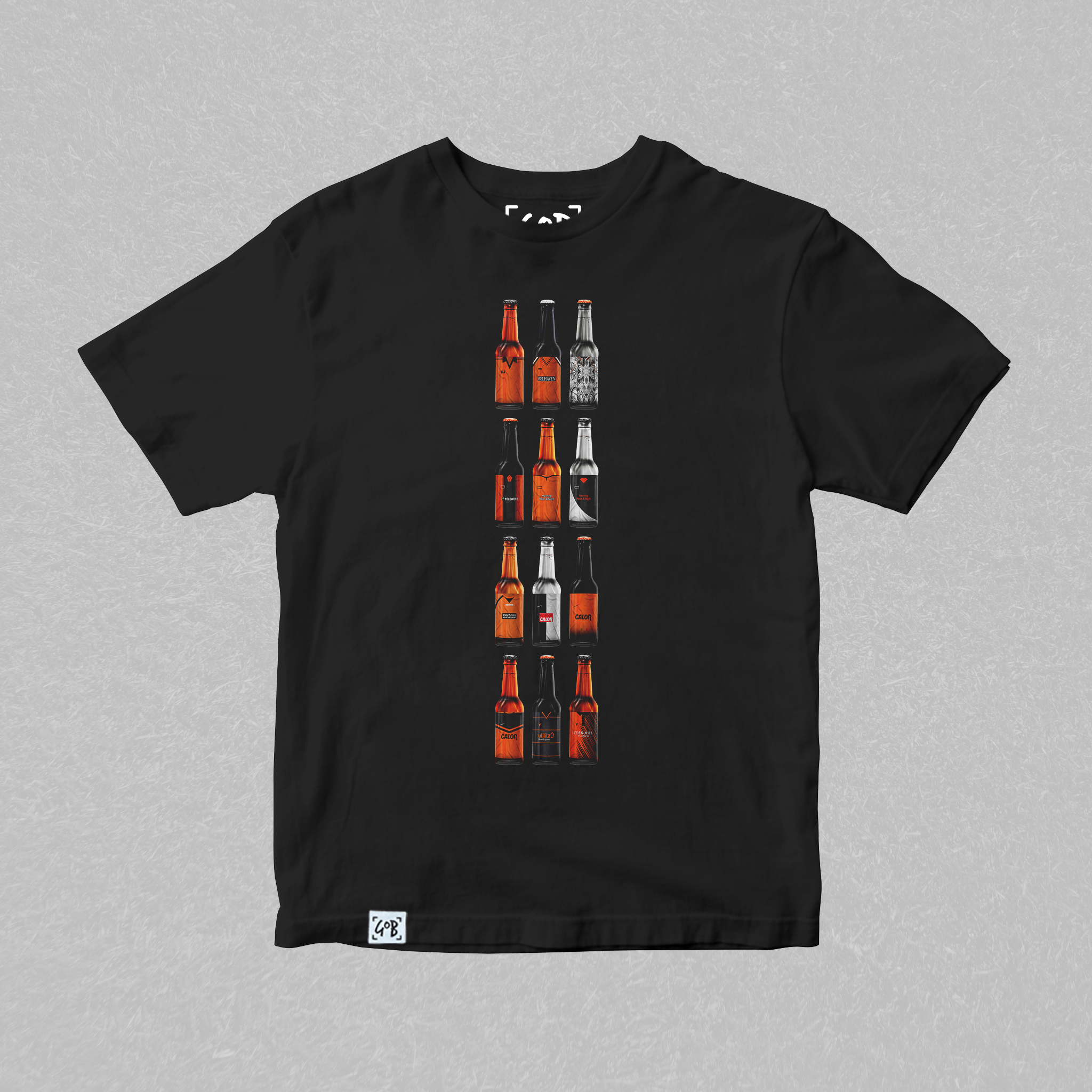 Twelve iconic kits from your club’s past, reimagined as collectible beer bottles in a bold, fan-made design. Each bottle tells a story — of unforgettable goals, cult heroes, and matchdays etched into football history. Crafted for supporters who carry the legacy, this tee is a wearable celebration of heritage, pride, and pints.