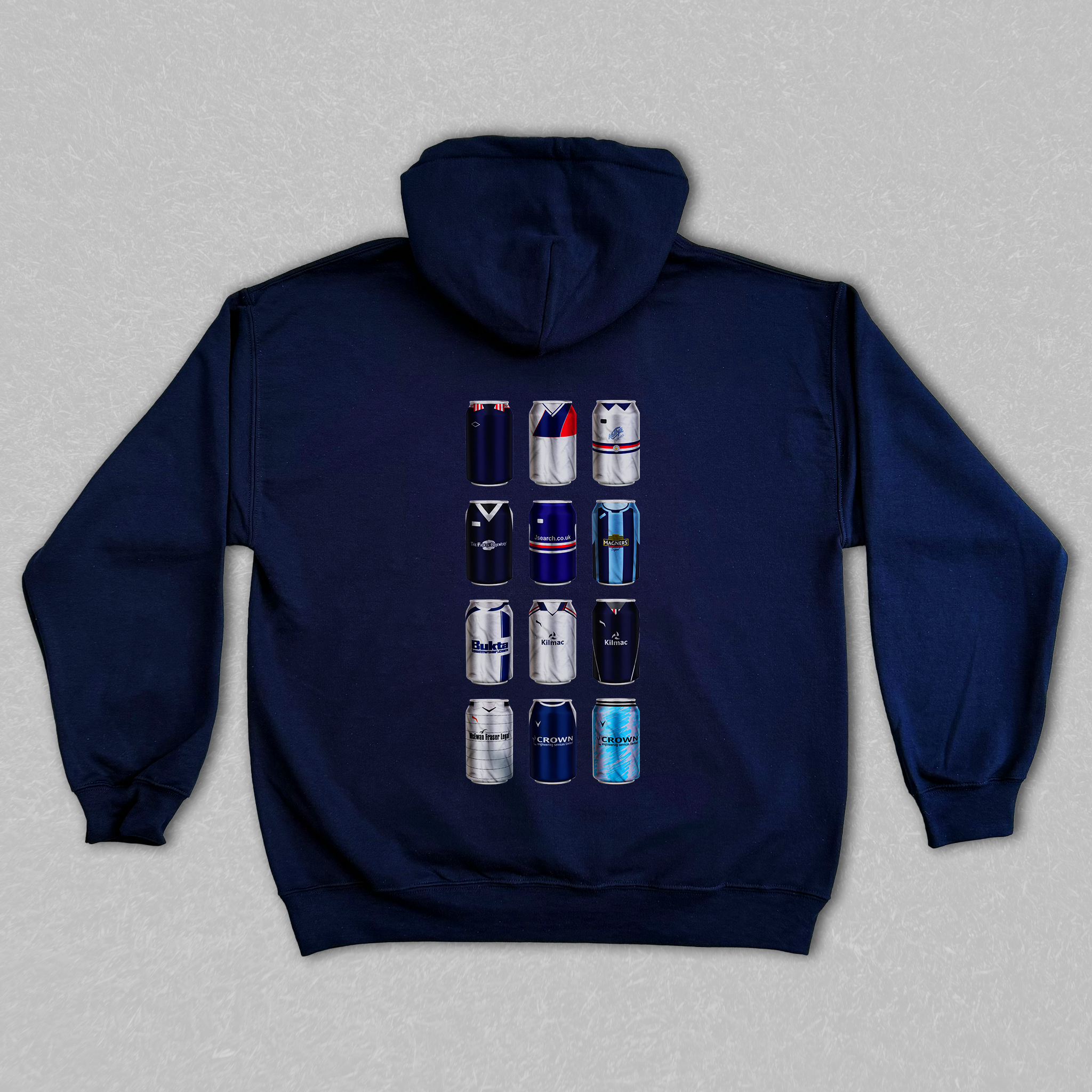 Relive the golden moments of your club’s history with the Classic Can Hoodie — a fan-made masterpiece featuring twelve iconic kits reimagined as collectible beer cans. Every can tells a story of legendary goals, cult heroes, and unforgettable matchdays that shaped your club’s legacy.