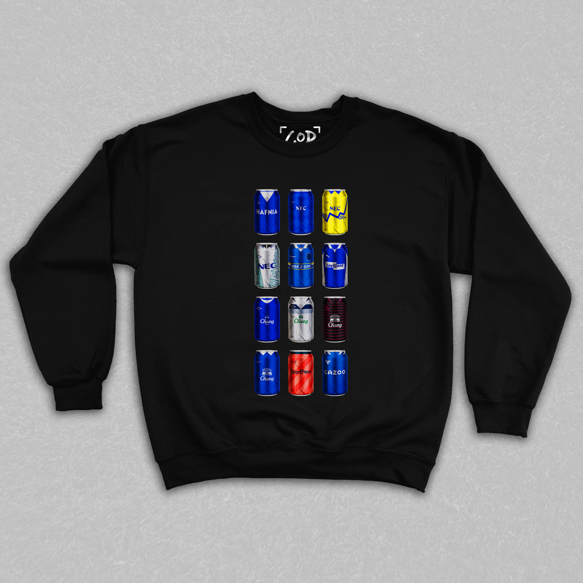 Relive the golden moments of your club’s history with the Classic Can Sweatshirt — a fan-made masterpiece featuring twelve iconic kits reimagined as collectible beer cans. Every can tells a story of legendary goals, cult heroes, and unforgettable matchdays that shaped your club’s legacy.