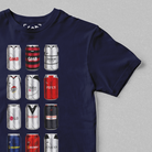 Twelve iconic kits from your club’s past, reimagined as collectible beer cans in a bold, fan-made design. Each can tells a story — of unforgettable goals, cult heroes, and matchdays etched into football history. Crafted for supporters who carry the legacy, this tee is a wearable celebration of heritage, pride, and pints.