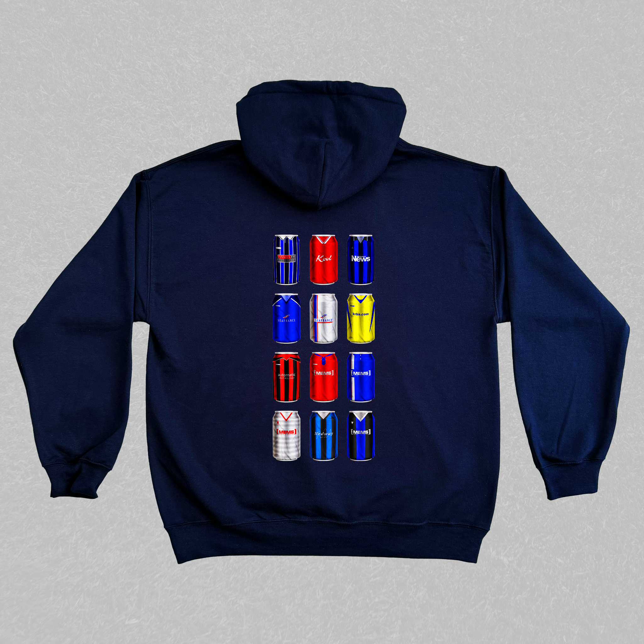 Relive the golden moments of your club’s history with the Classic Can Hoodie — a fan-made masterpiece featuring twelve iconic kits reimagined as collectible beer cans. Every can tells a story of legendary goals, cult heroes, and unforgettable matchdays that shaped your club’s legacy.
