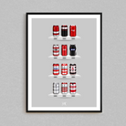 Celebrate legendary football kits from the past few decades, each one digitally illustrated in your choice of our unique can or bottle styles. Printed in high-definition on premium gloss paper, these designs are made to stand out, whether framed or displayed as they are. Also available as a matching T-shirt