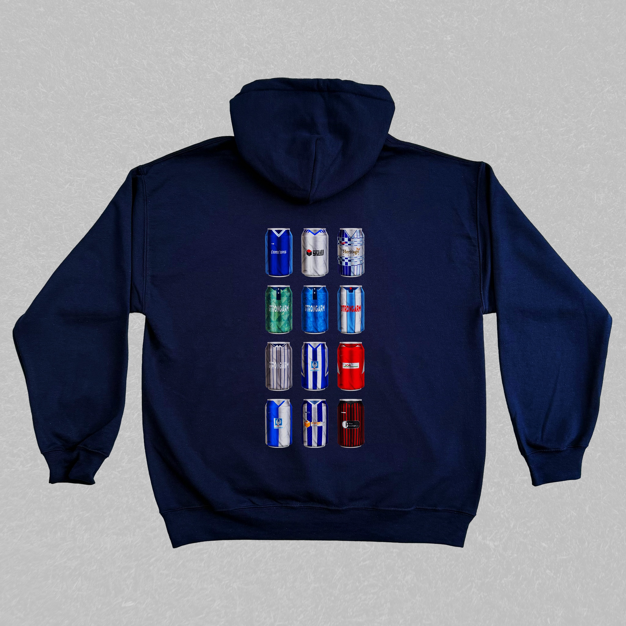 Relive the golden moments of your club’s history with the Classic Can Hoodie — a fan-made masterpiece featuring twelve iconic kits reimagined as collectible beer cans. Every can tells a story of legendary goals, cult heroes, and unforgettable matchdays that shaped your club’s legacy.