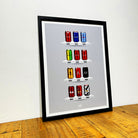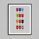 Celebrate legendary football kits from the past few decades, each one digitally illustrated in your choice of our unique can or bottle styles. Printed in high-definition on premium gloss paper, these designs are made to stand out, whether framed or displayed as they are. Also available as a matching T-shirt