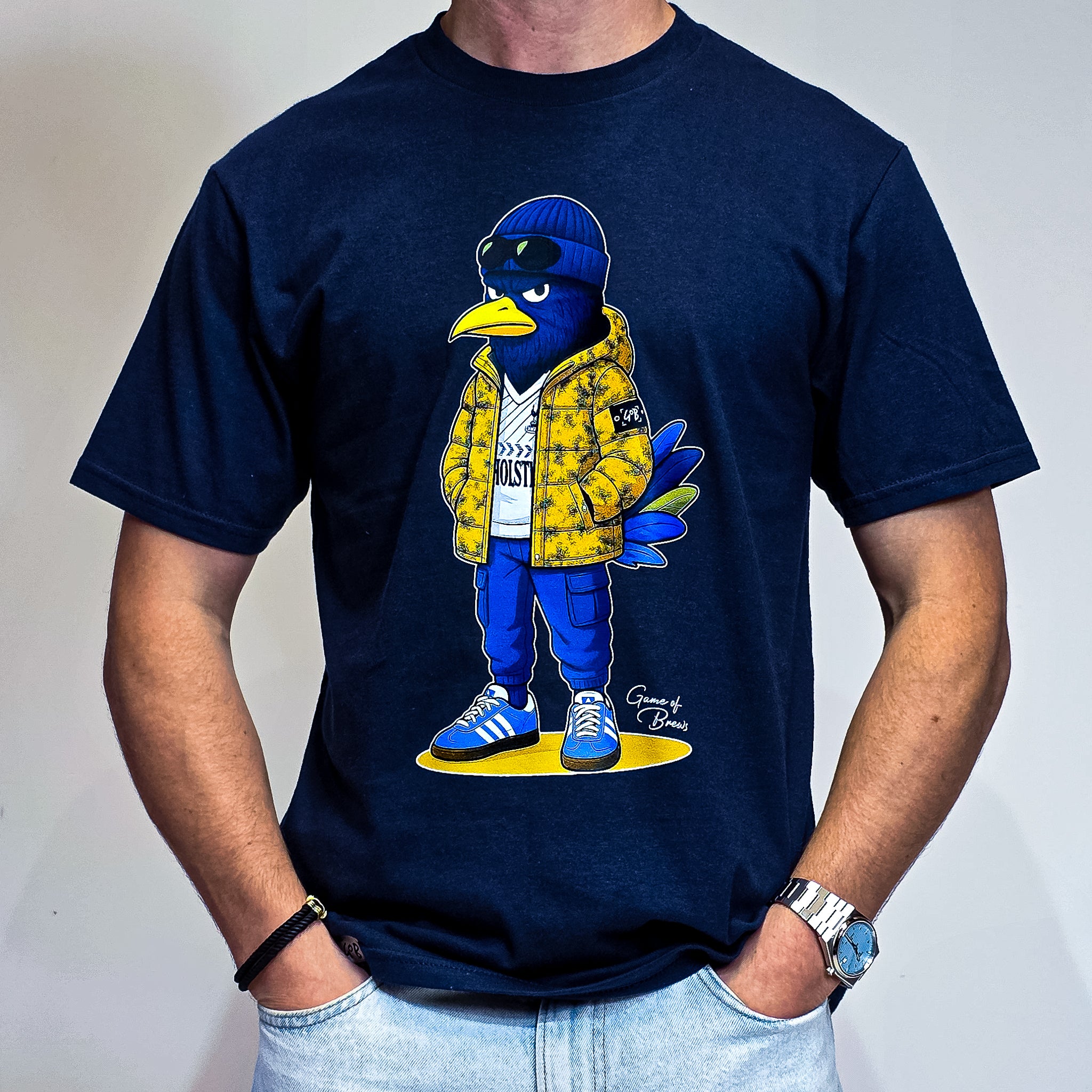 This design reimagines a classic football mascot with a terrace-inspired streetwear twist, bold, modern, and full of attitude. Built for comfort and style, this tee celebrates football culture wherever you wear it.