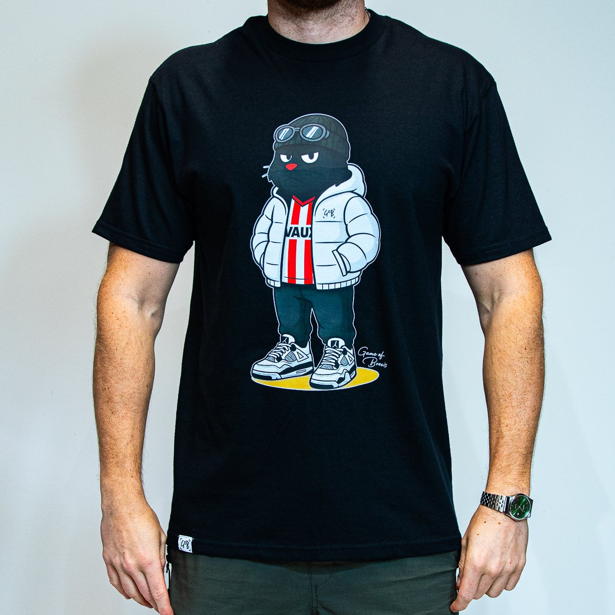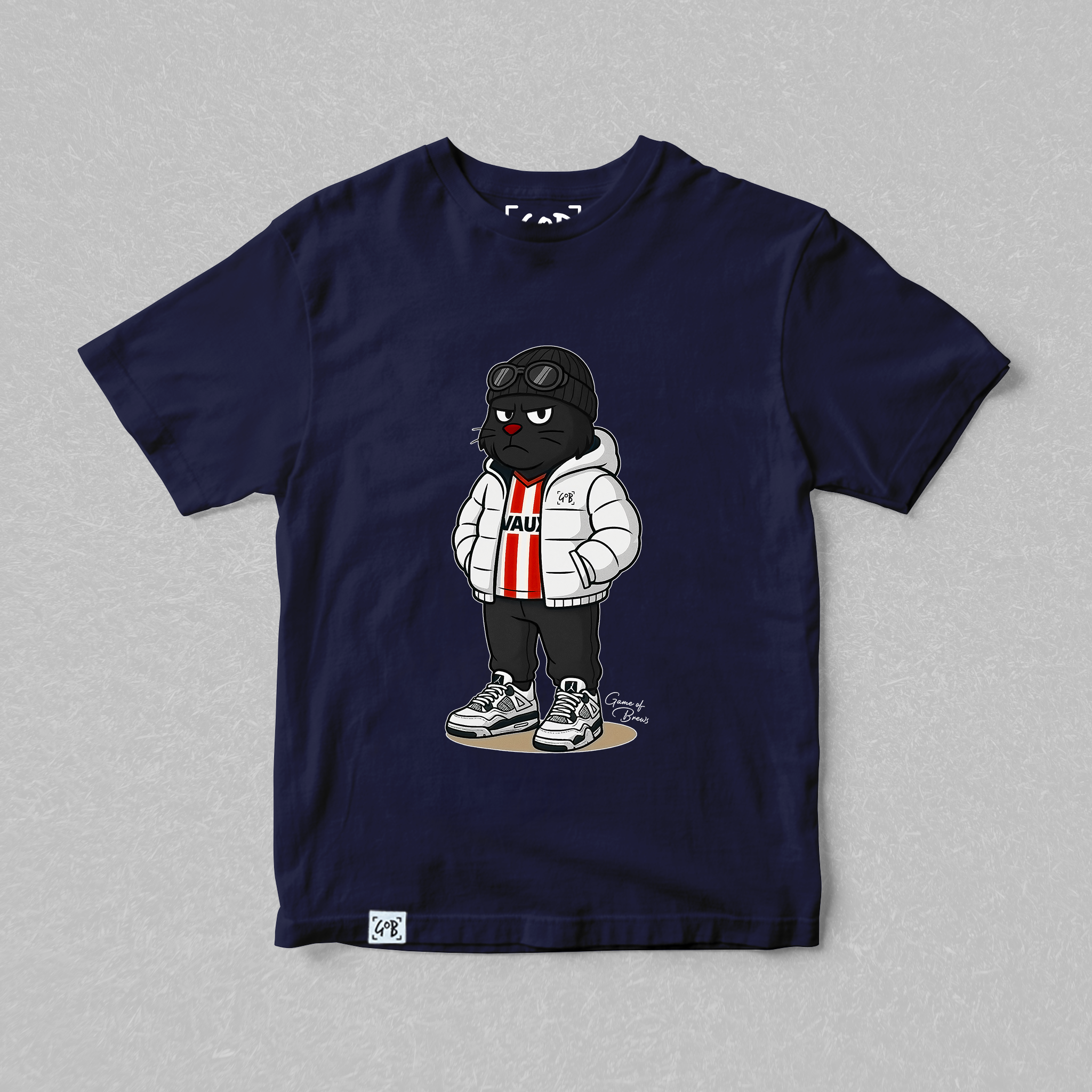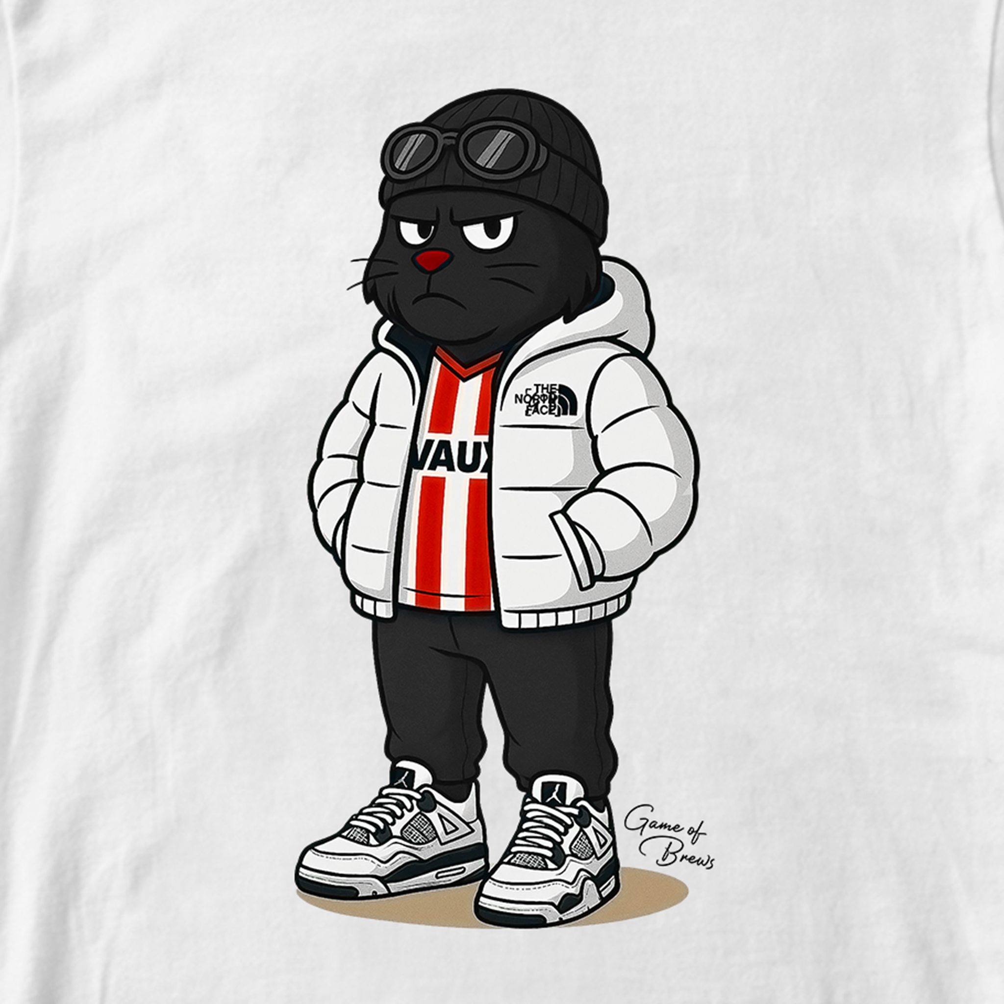 This design reimagines a classic football mascot with a terrace-inspired streetwear twist, bold, modern, and full of attitude. Built for comfort and style, this tee celebrates football culture wherever you wear it.