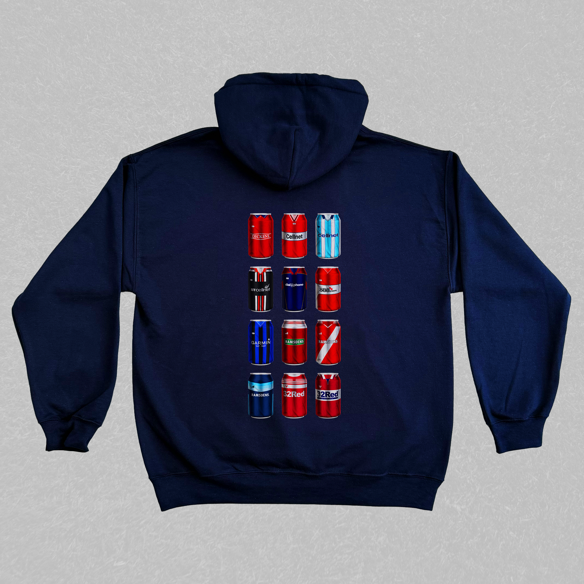 Relive the golden moments of your club’s history with the Classic Can Hoodie — a fan-made masterpiece featuring twelve iconic kits reimagined as collectible beer cans. Every can tells a story of legendary goals, cult heroes, and unforgettable matchdays that shaped your club’s legacy.
