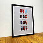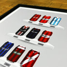 Celebrate legendary football kits from the past few decades, each one digitally illustrated in your choice of our unique can or bottle styles. Printed in high-definition on premium gloss paper, these designs are made to stand out, whether framed or displayed as they are. Also available as a matching T-shirt