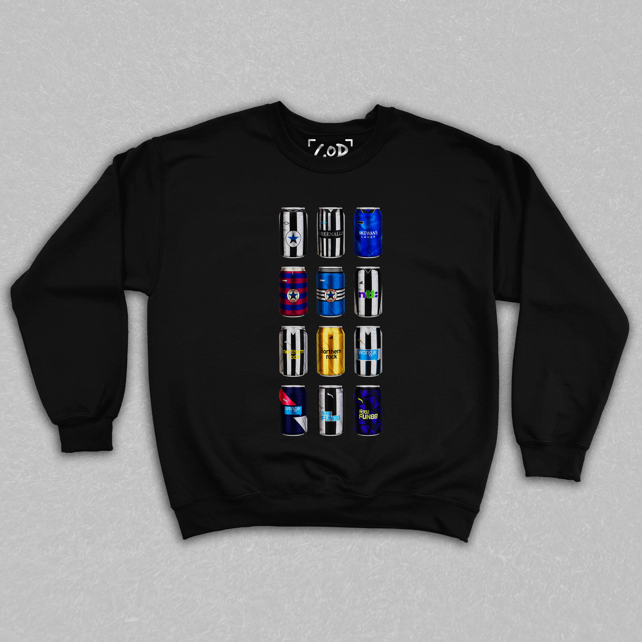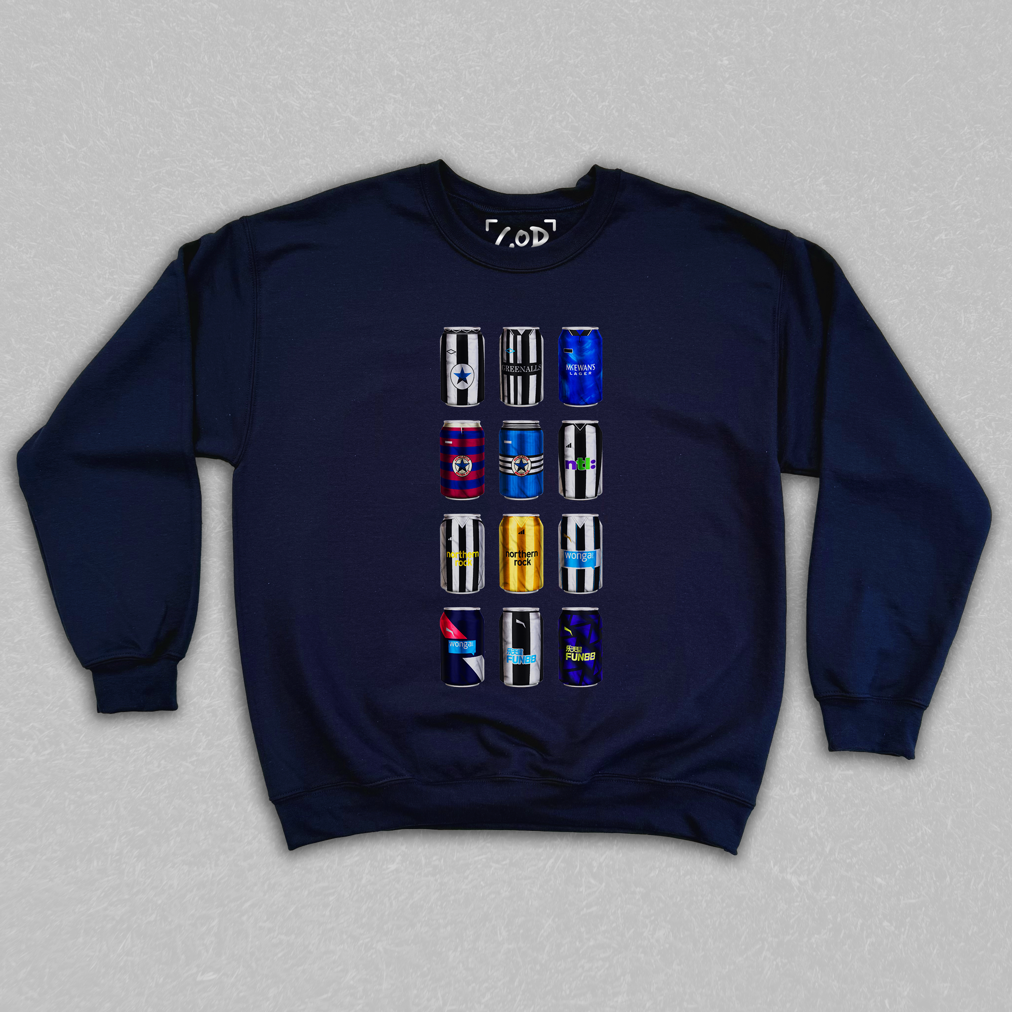 Relive the golden moments of your club’s history with the Classic Can Sweatshirt — a fan-made masterpiece featuring twelve iconic kits reimagined as collectible beer cans. Every can tells a story of legendary goals, cult heroes, and unforgettable matchdays that shaped your club’s legacy.