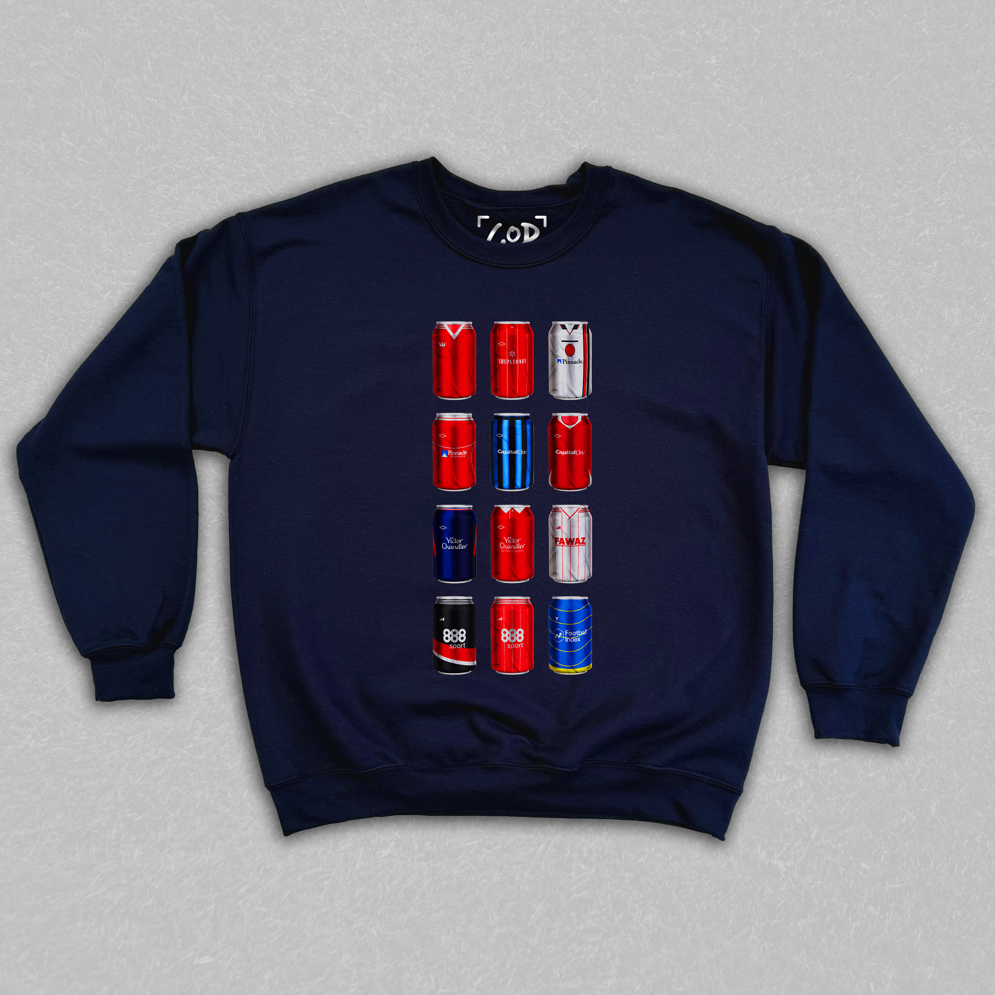Relive the golden moments of your club’s history with the Classic Can Sweatshirt — a fan-made masterpiece featuring twelve iconic kits reimagined as collectible beer cans. Every can tells a story of legendary goals, cult heroes, and unforgettable matchdays that shaped your club’s legacy.