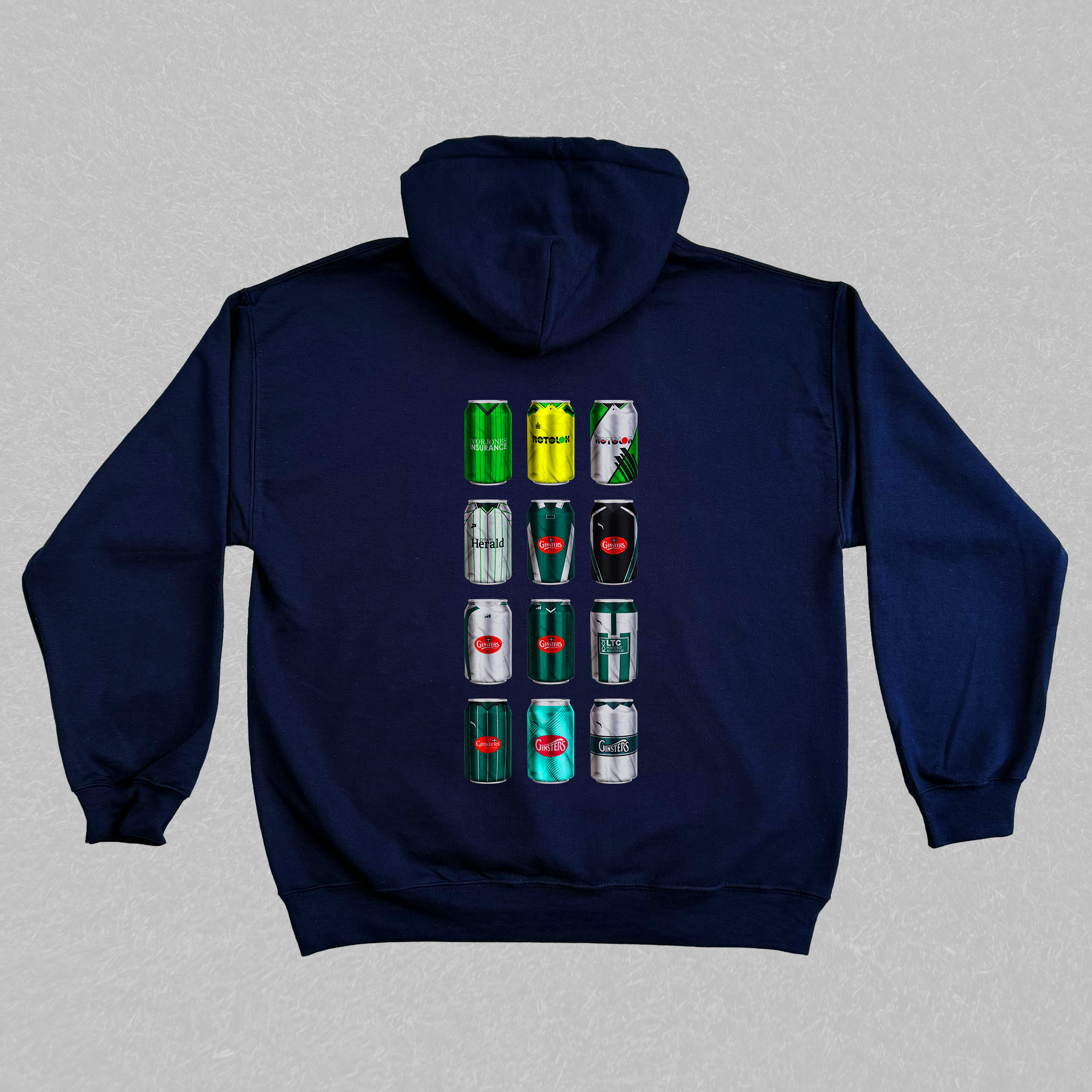Relive the golden moments of your club’s history with the Classic Can Hoodie — a fan-made masterpiece featuring twelve iconic kits reimagined as collectible beer cans. Every can tells a story of legendary goals, cult heroes, and unforgettable matchdays that shaped your club’s legacy.