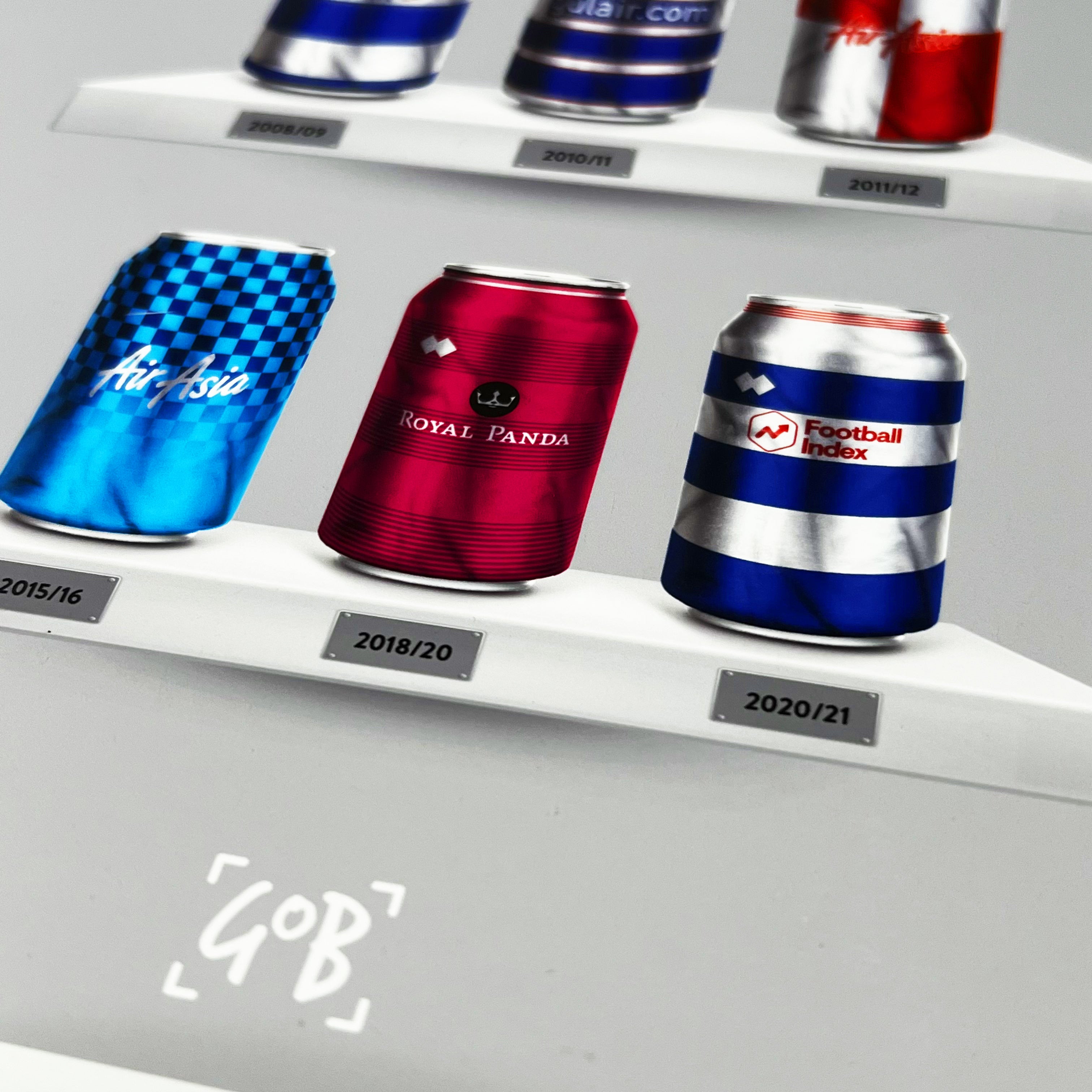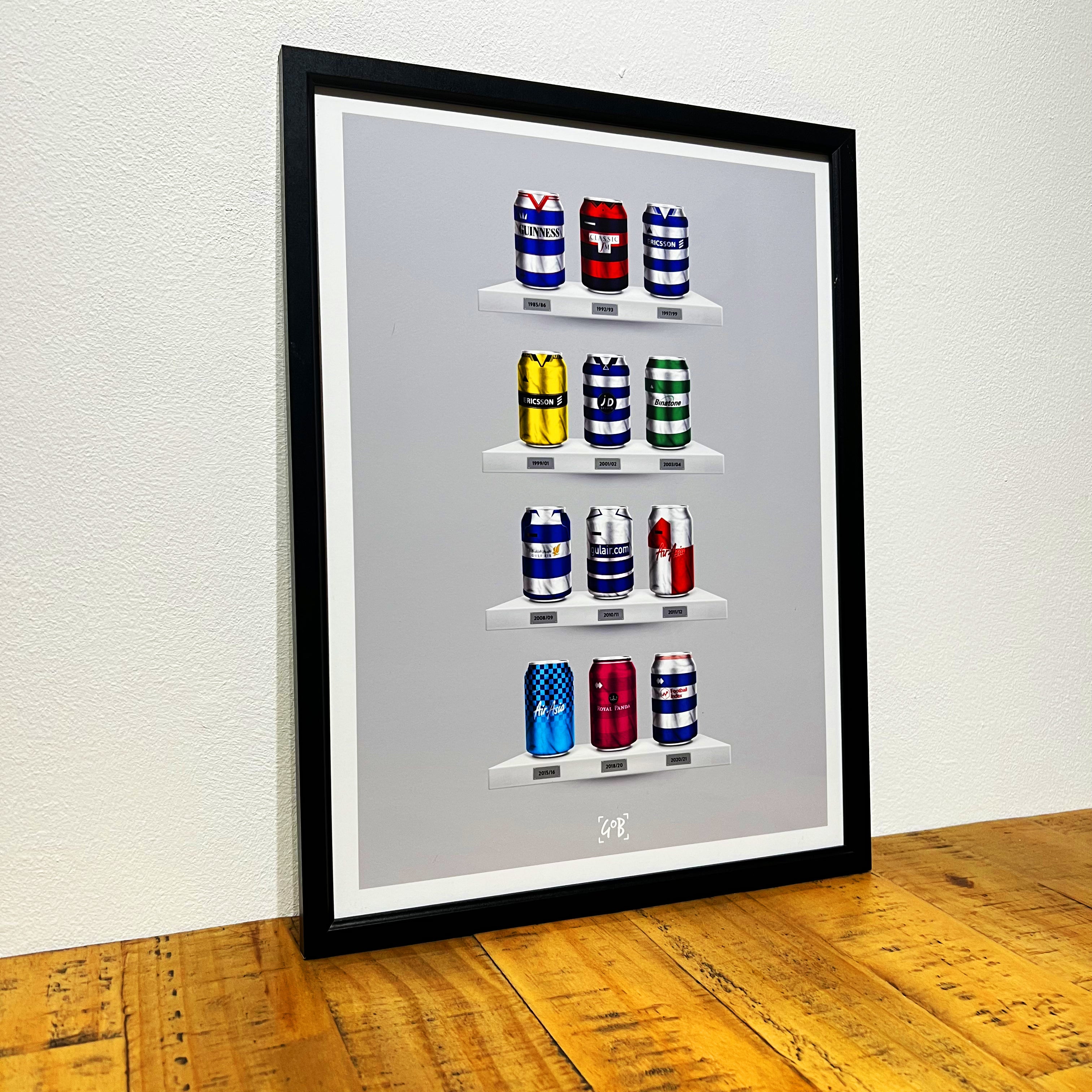 Celebrate legendary football kits from the past few decades, each one digitally illustrated in your choice of our unique can or bottle styles. Printed in high-definition on premium gloss paper, these designs are made to stand out, whether framed or displayed as they are. Also available as a matching T-shirt