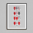 Celebrate legendary football kits from the past few decades, each one digitally illustrated in your choice of our unique can or bottle styles. Printed in high-definition on premium gloss paper, these designs are made to stand out, whether framed or displayed as they are. Also available as a matching T-shirt