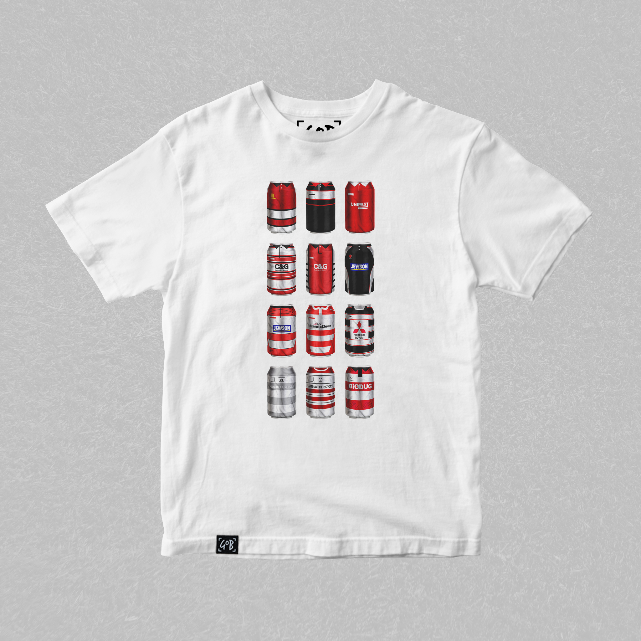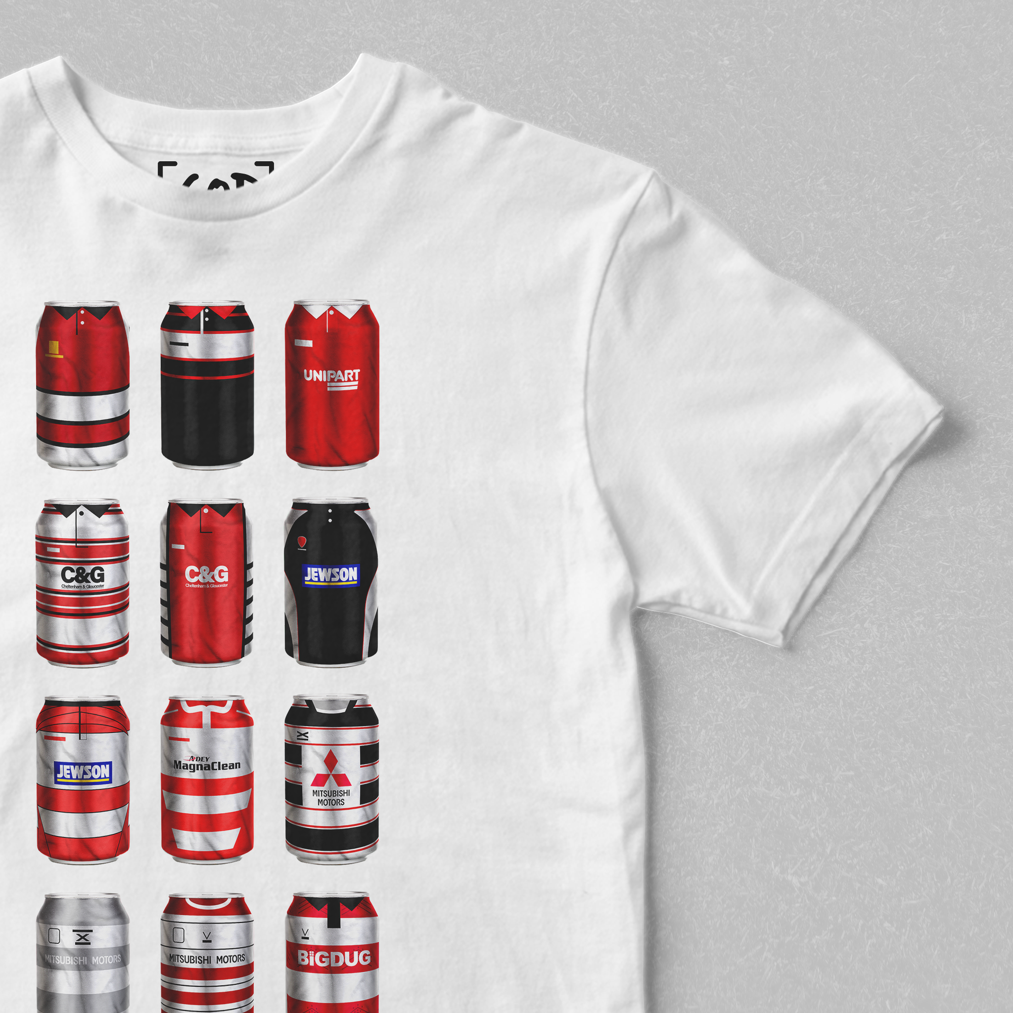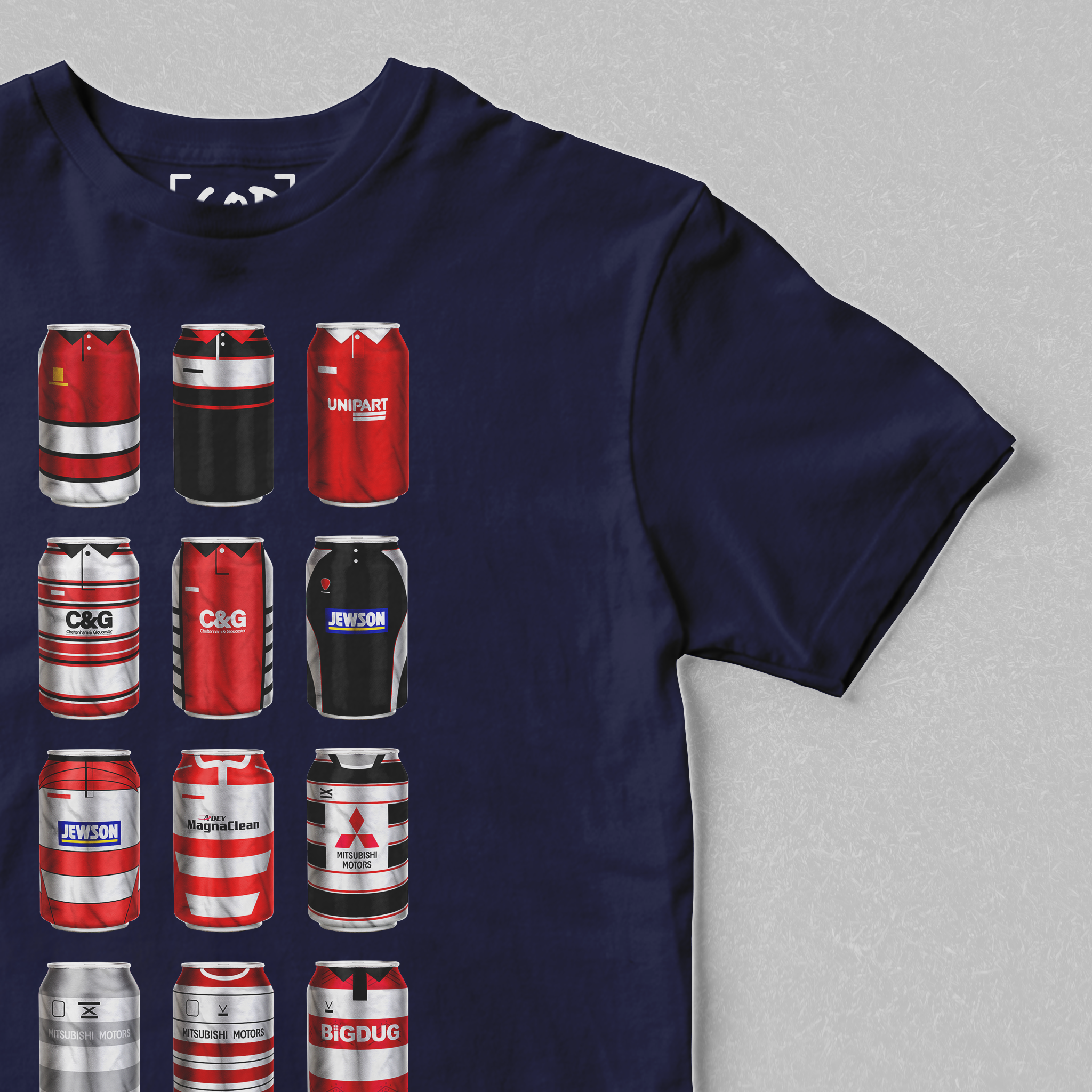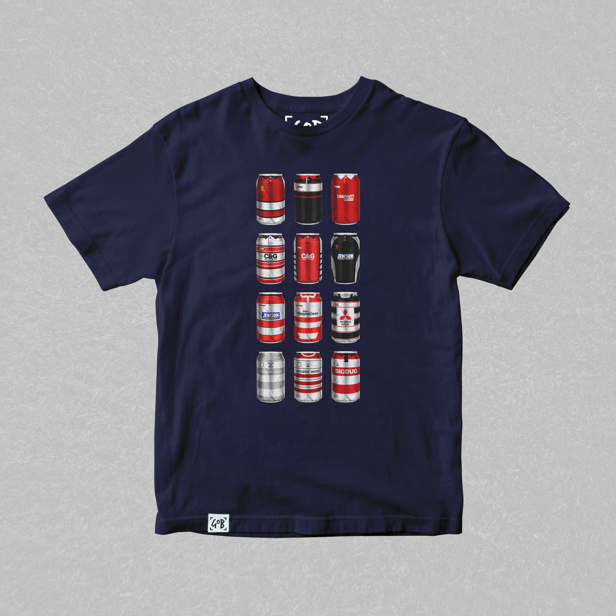 Twelve iconic kits from your club’s past, reimagined as collectible beer bottles in a bold, fan-made design. Each bottle tells a story — of unforgettable goals, cult heroes, and matchdays etched into football history. Crafted for supporters who carry the legacy, this tee is a wearable celebration of heritage, pride, and pints.