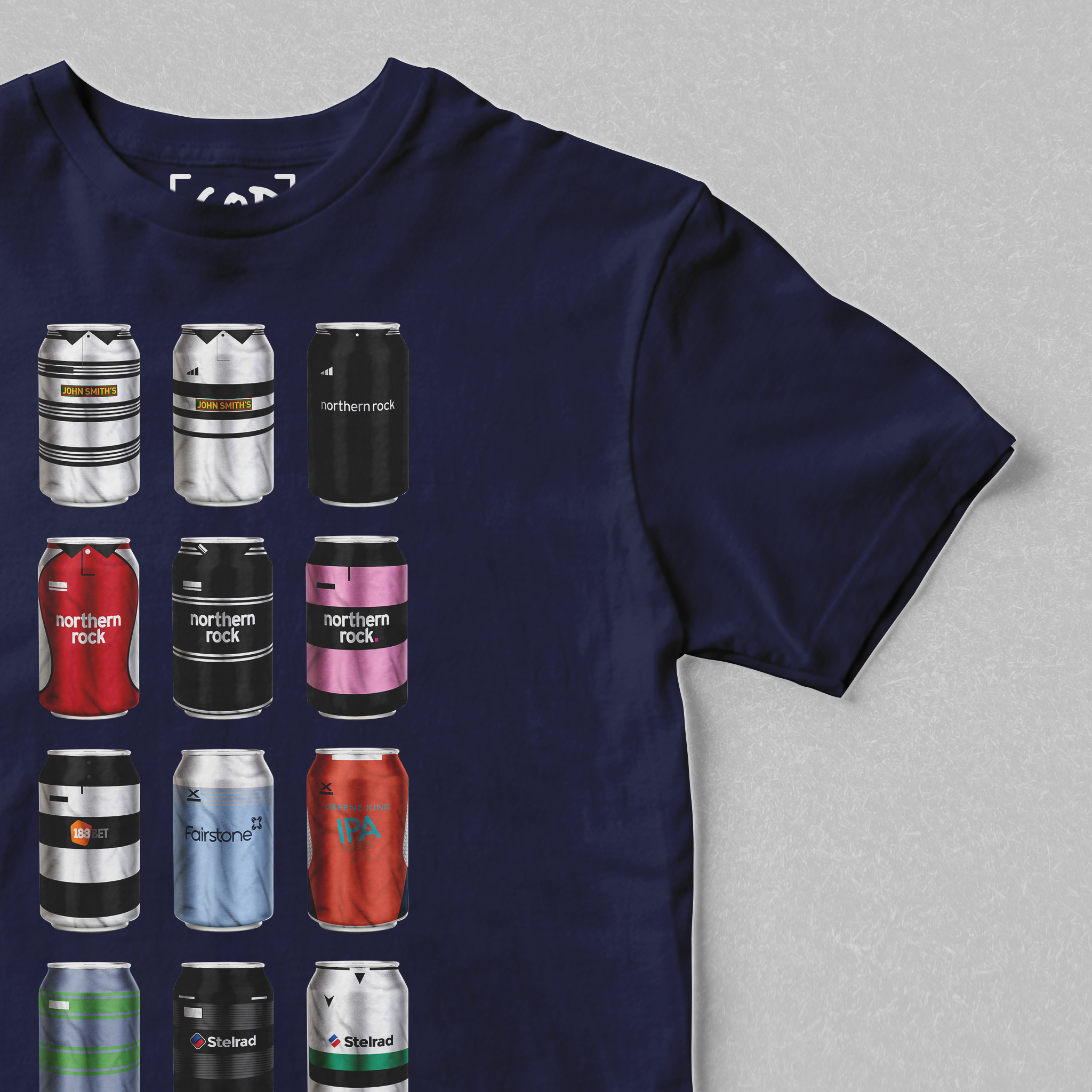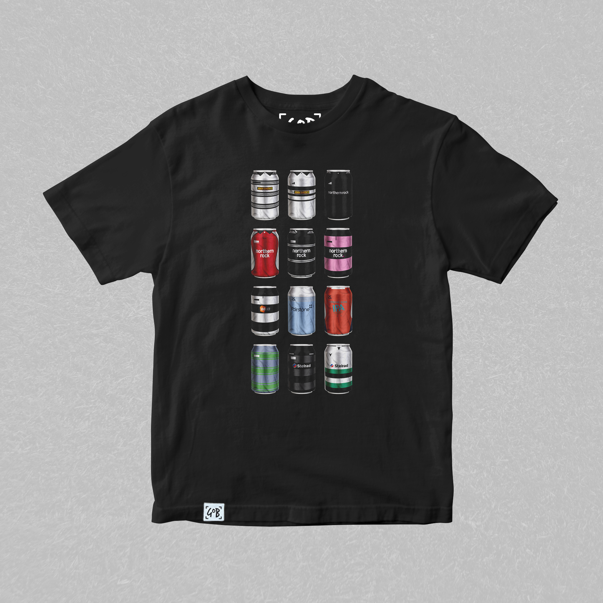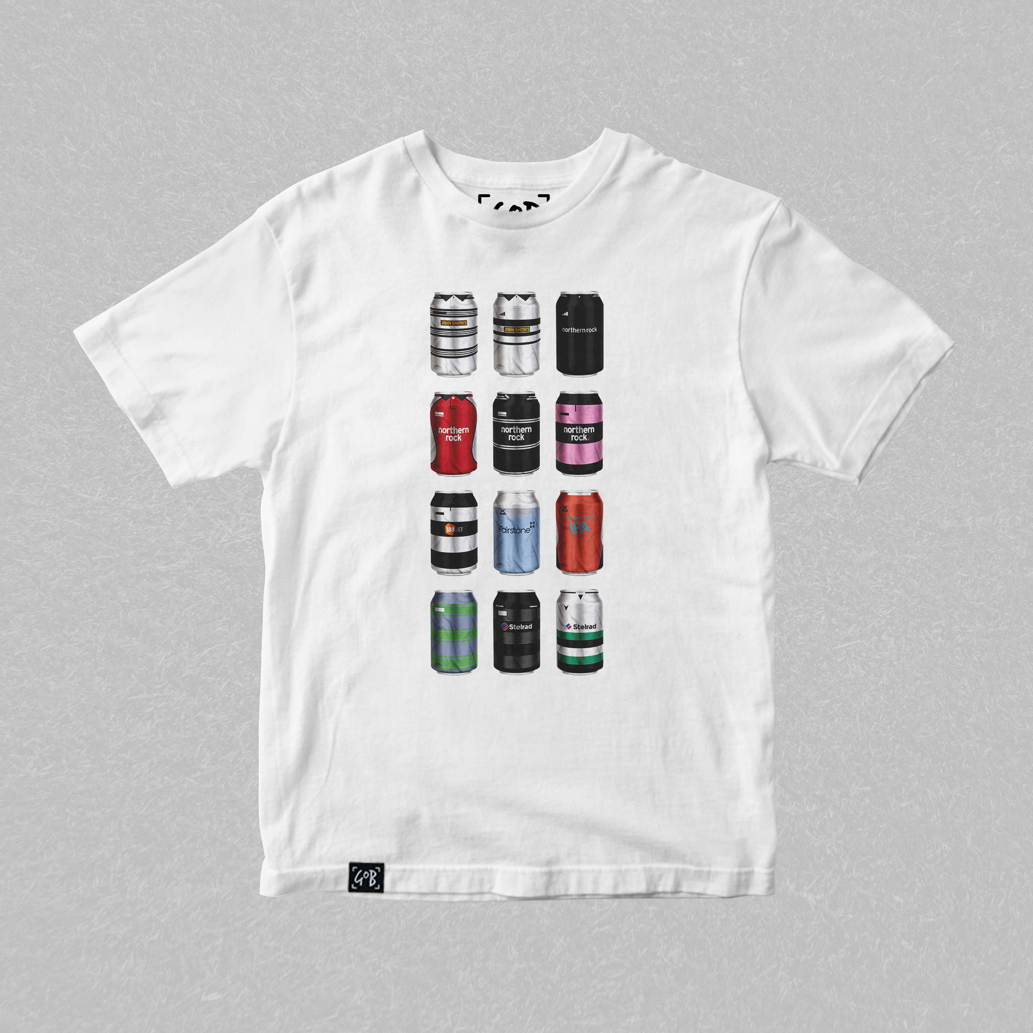 Twelve iconic kits from your club’s past, reimagined as collectible beer bottles in a bold, fan-made design. Each bottle tells a story — of unforgettable goals, cult heroes, and matchdays etched into football history. Crafted for supporters who carry the legacy, this tee is a wearable celebration of heritage, pride, and pints.