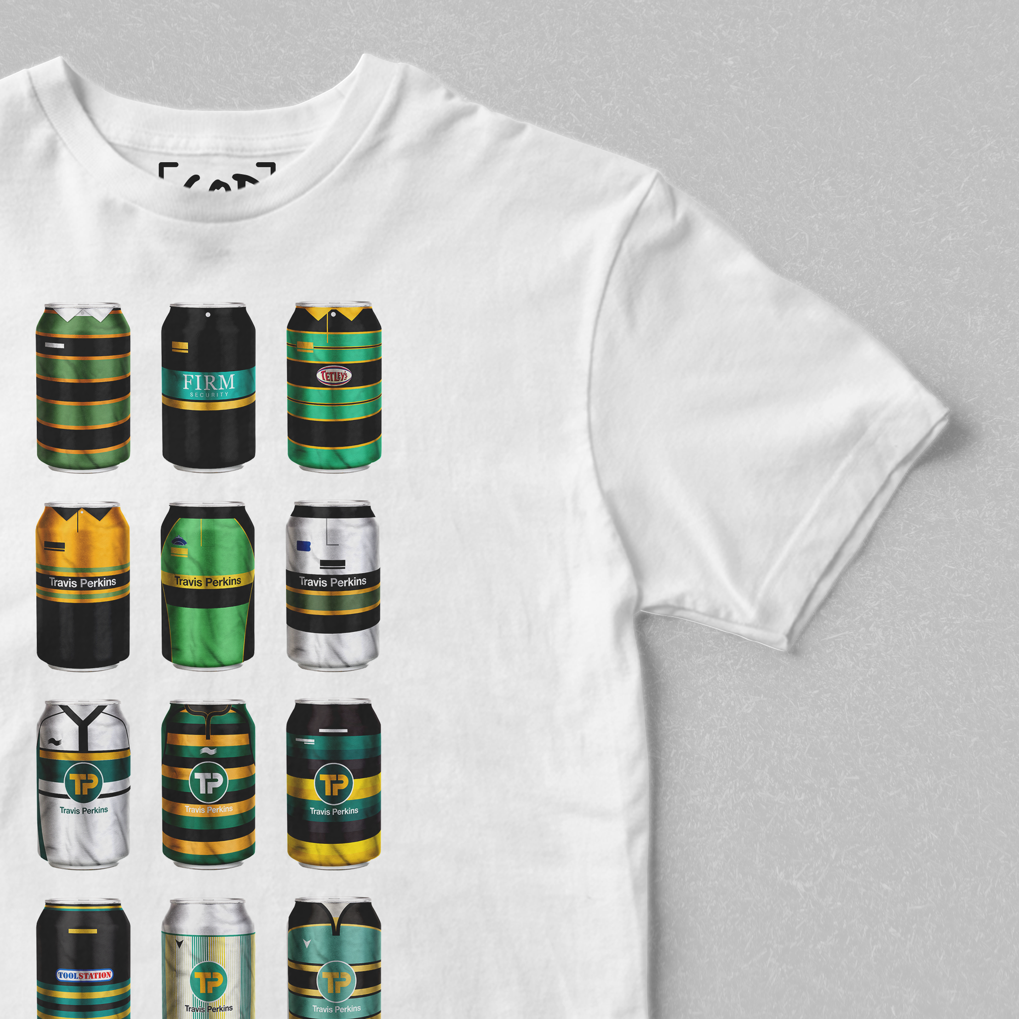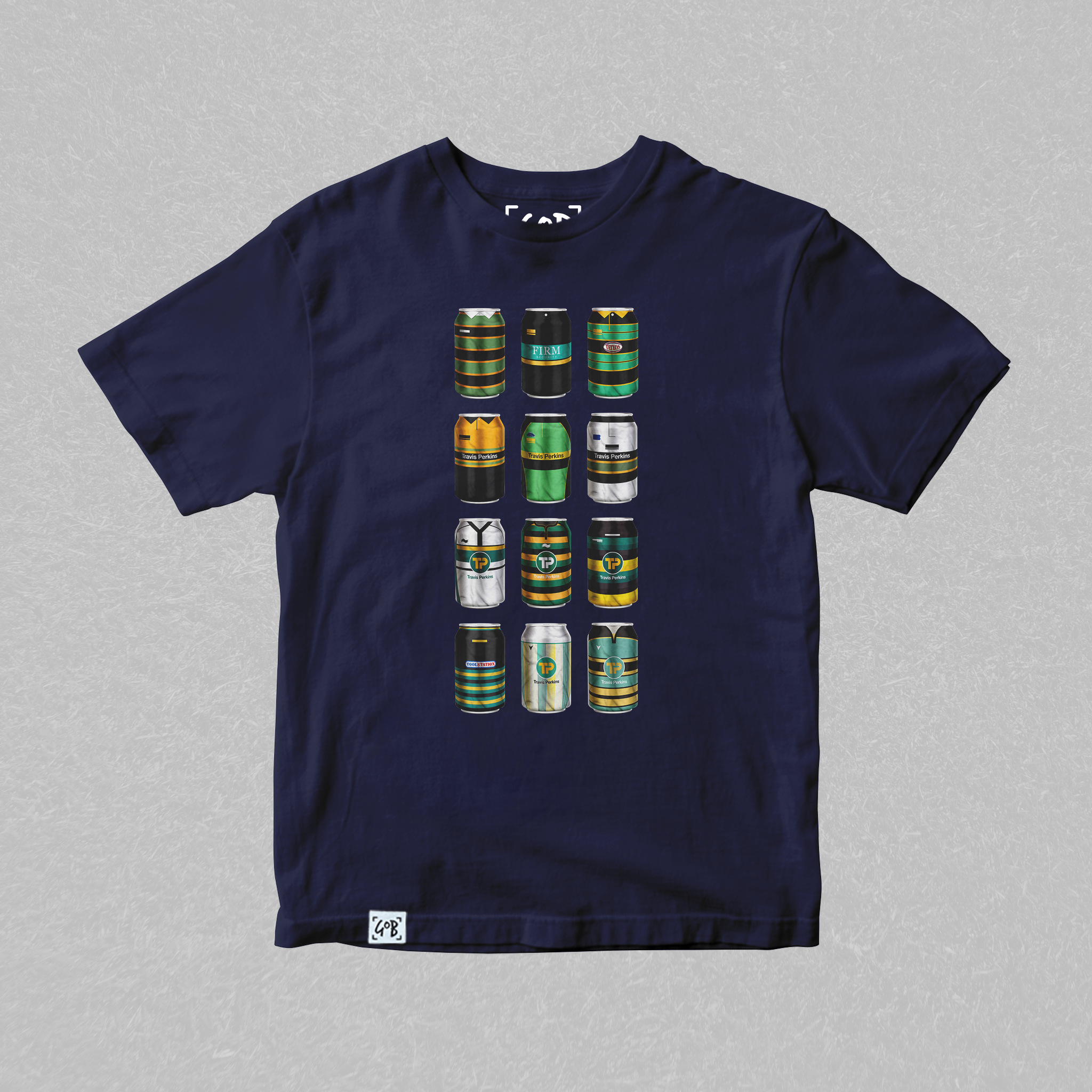 Twelve iconic kits from your club’s past, reimagined as collectible beer bottles in a bold, fan-made design. Each bottle tells a story — of unforgettable goals, cult heroes, and matchdays etched into football history. Crafted for supporters who carry the legacy, this tee is a wearable celebration of heritage, pride, and pints.