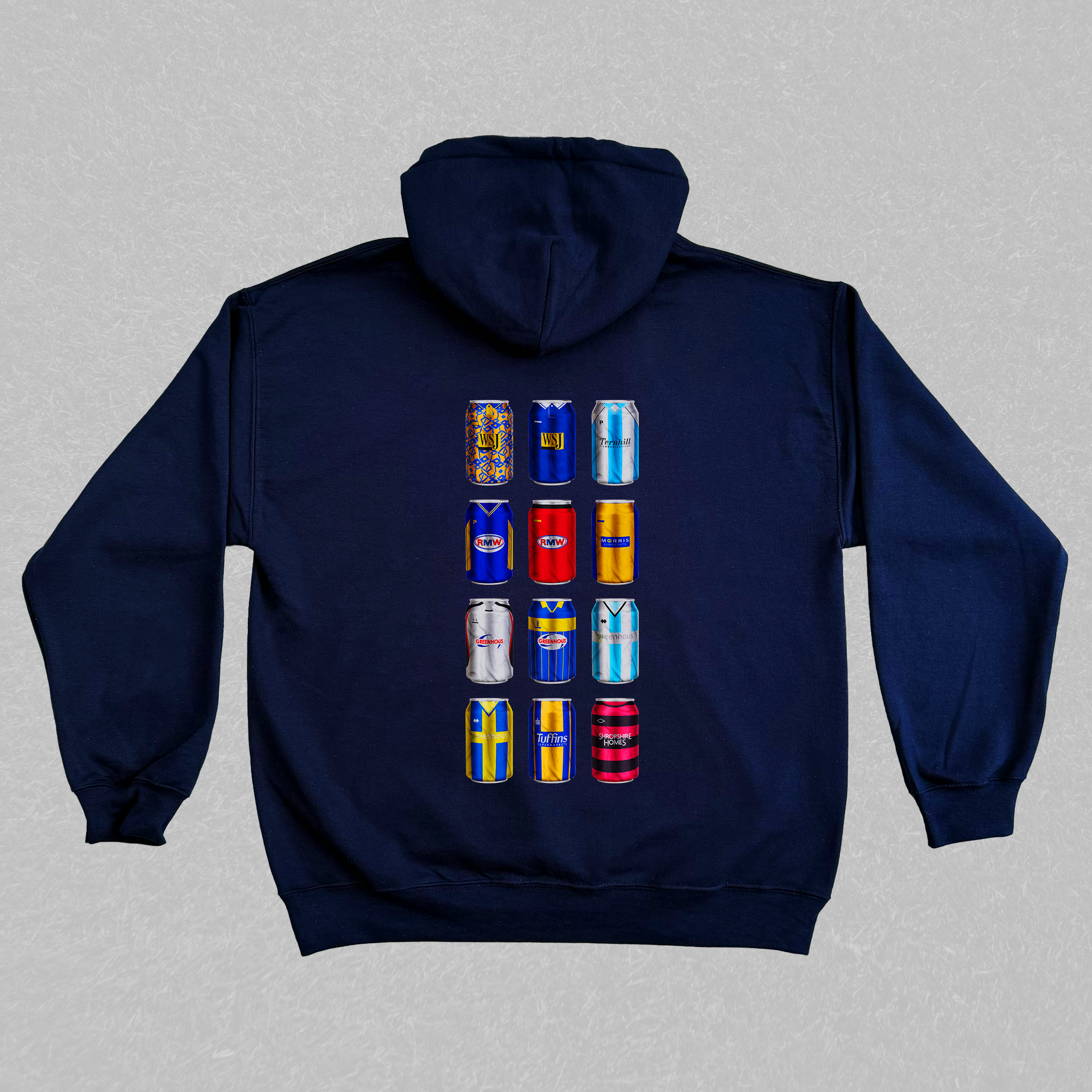 Relive the golden moments of your club’s history with the Classic Can Hoodie — a fan-made masterpiece featuring twelve iconic kits reimagined as collectible beer cans. Every can tells a story of legendary goals, cult heroes, and unforgettable matchdays that shaped your club’s legacy.