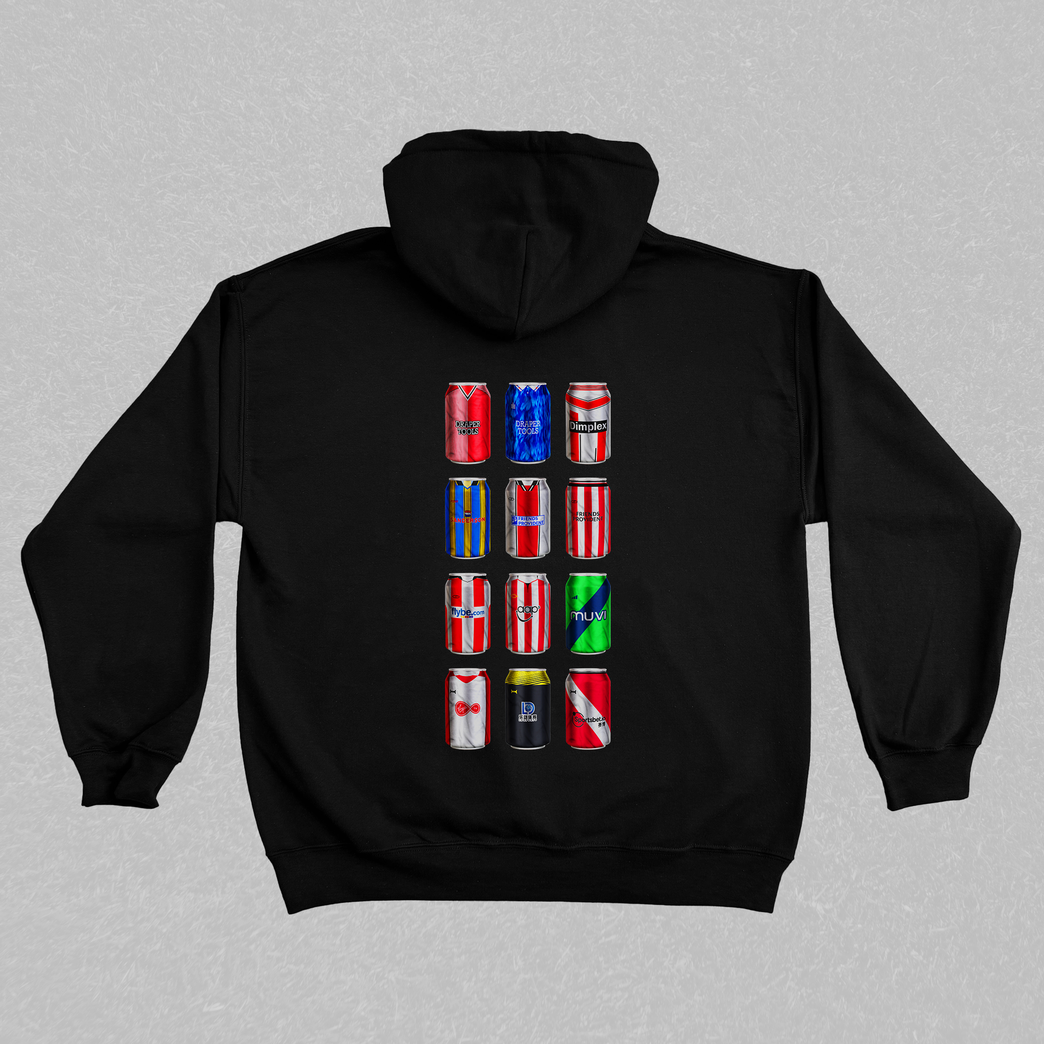 Relive the golden moments of your club’s history with the Classic Can Hoodie — a fan-made masterpiece featuring twelve iconic kits reimagined as collectible beer cans. Every can tells a story of legendary goals, cult heroes, and unforgettable matchdays that shaped your club’s legacy.