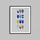 Celebrate legendary football kits from the past few decades, each one digitally illustrated in your choice of our unique can or bottle styles. Printed in high-definition on premium gloss paper, these designs are made to stand out, whether framed or displayed as they are. Also available as a matching T-shirt