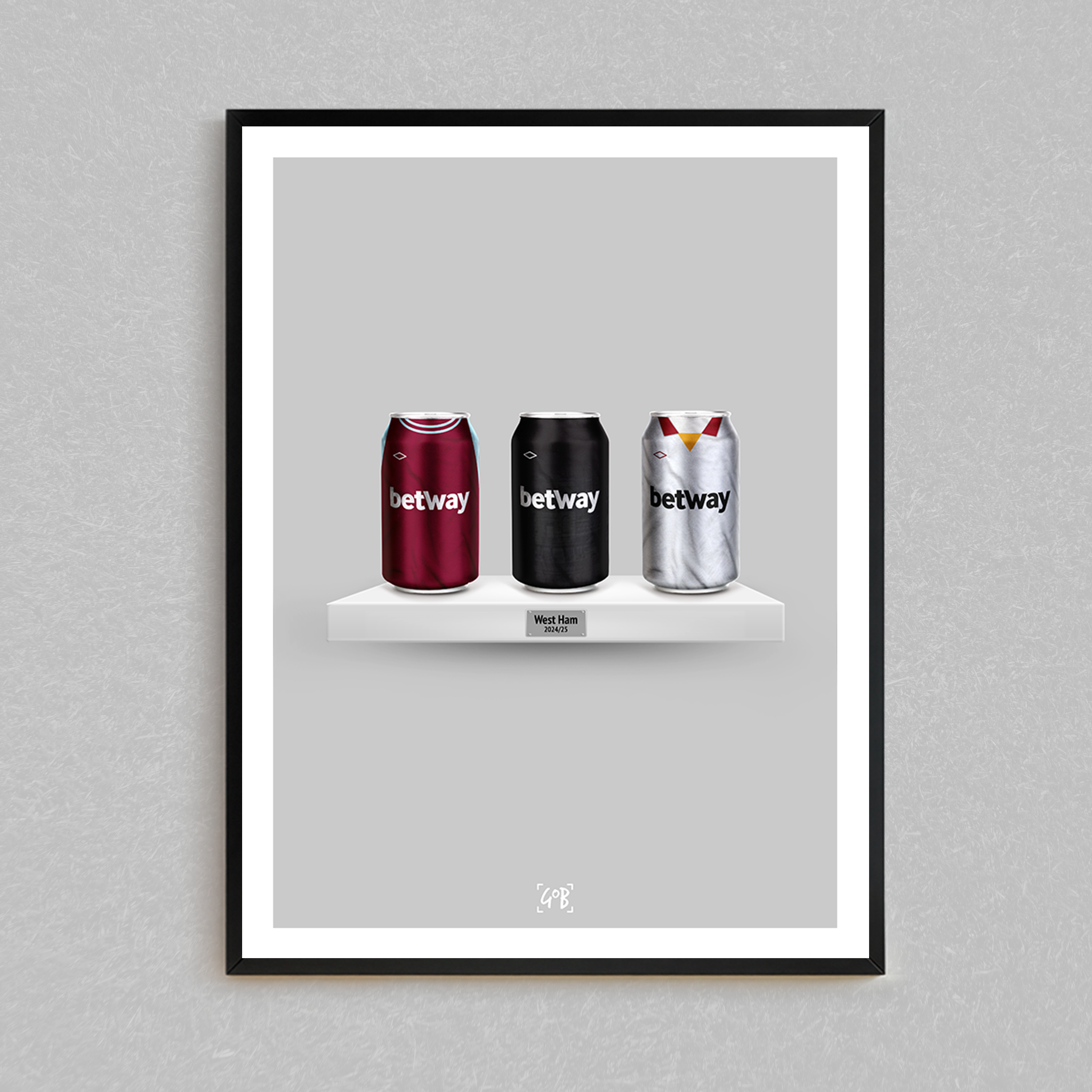 The 2024/25 kits, served cold. This original fan-made art print reimagines the new season’s home, away, and third shirts as collectible beer cans — a unique blend of football design and craft culture.