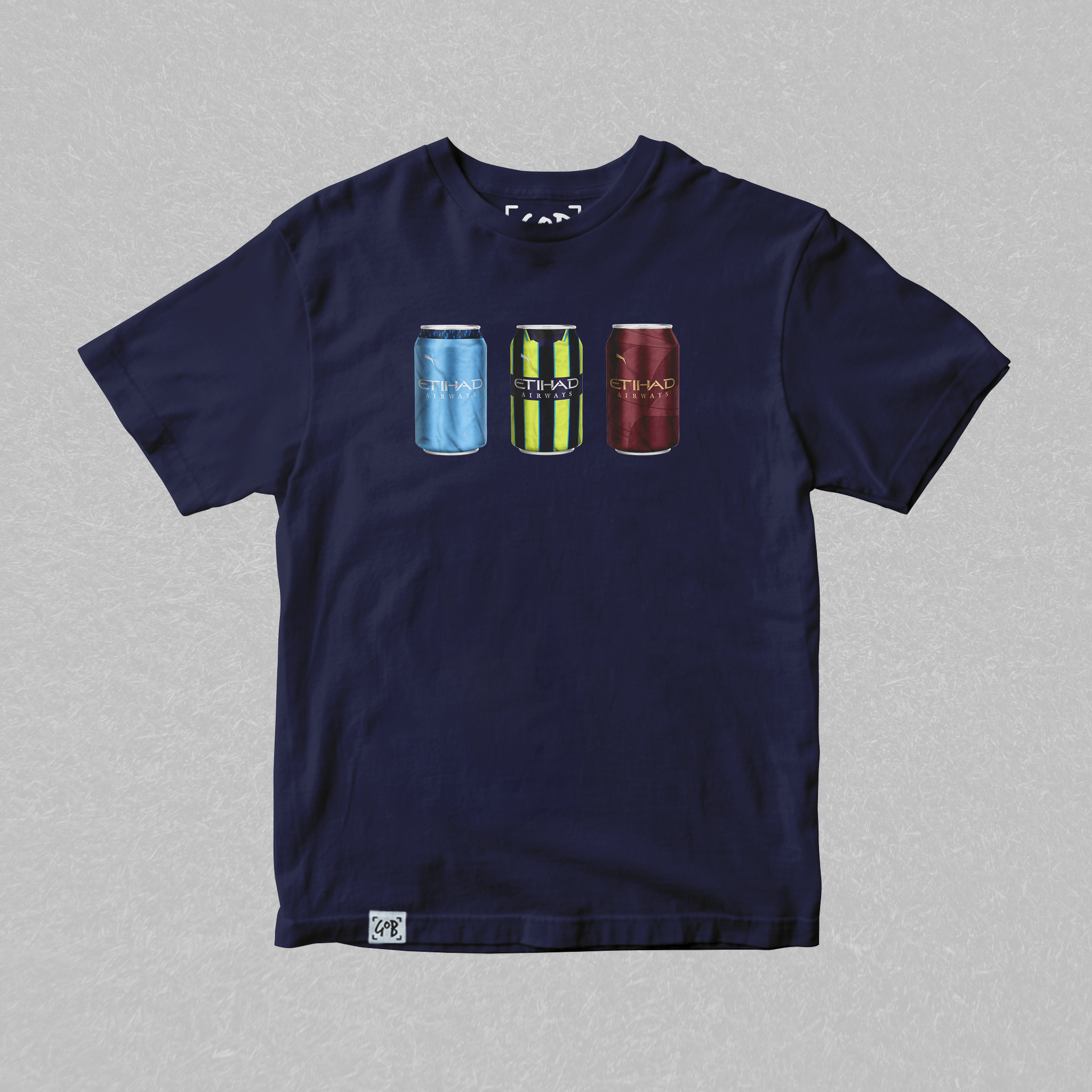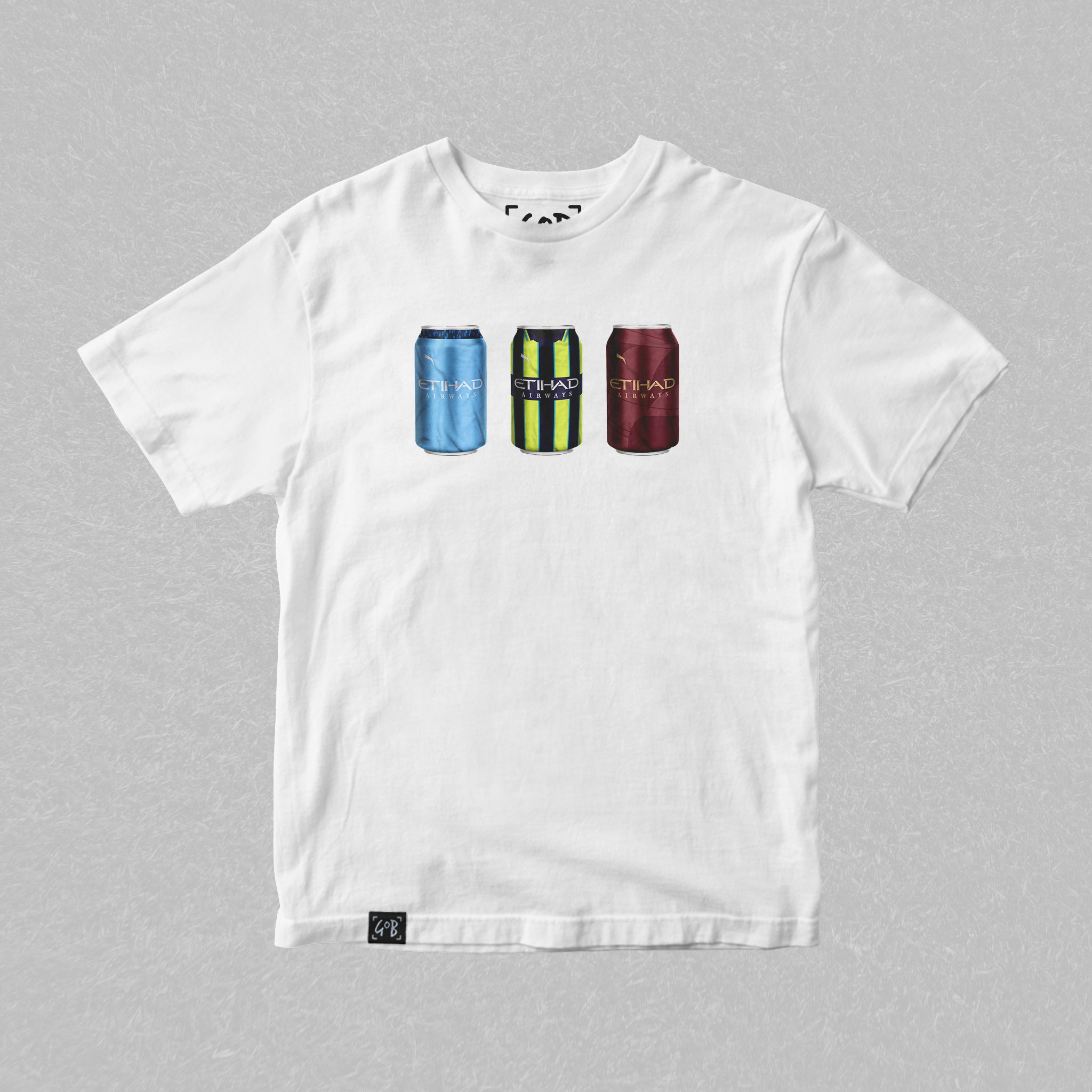 The 2024/25 season, canned. This fan-designed tee reimagines the latest home, away, and third kits as bold, collectible beer cans — each one a tribute to football, design, and post-match culture.