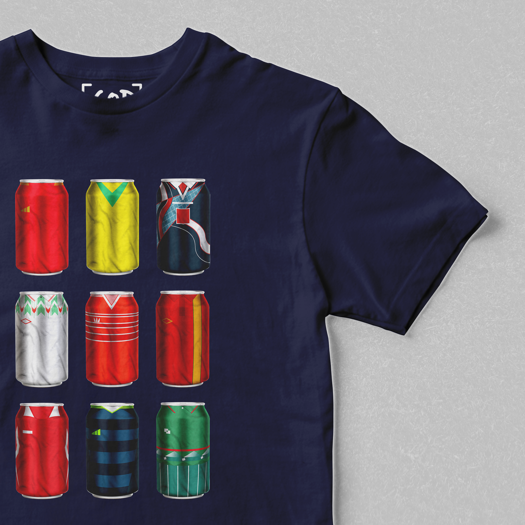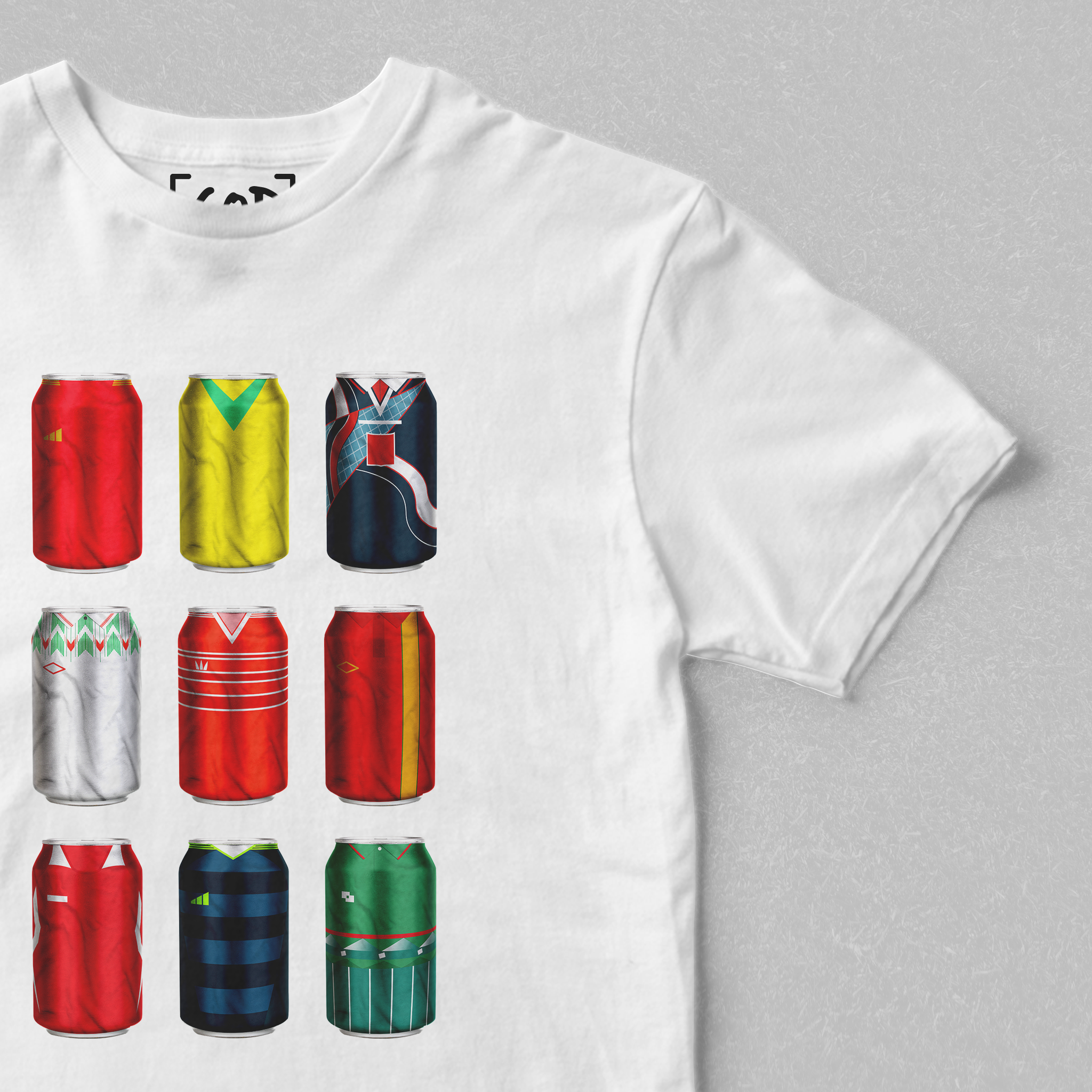 A collection of iconic Wales kits over the last few decades. Each kit designed is digitally illustrated through either one of our can or bottles styles.