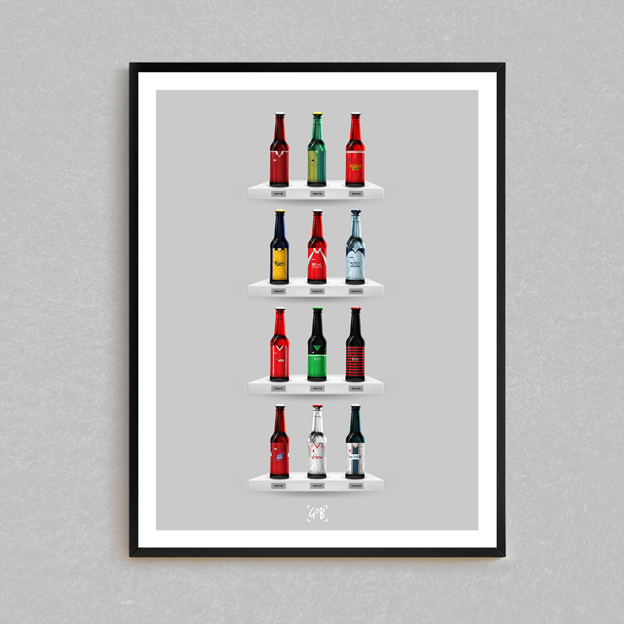 Celebrate legendary football kits from the past few decades, each one digitally illustrated in your choice of our unique can or bottle styles. Printed in high-definition on premium gloss paper, these designs are made to stand out, whether framed or displayed as they are. Also available as a matching T-shirt