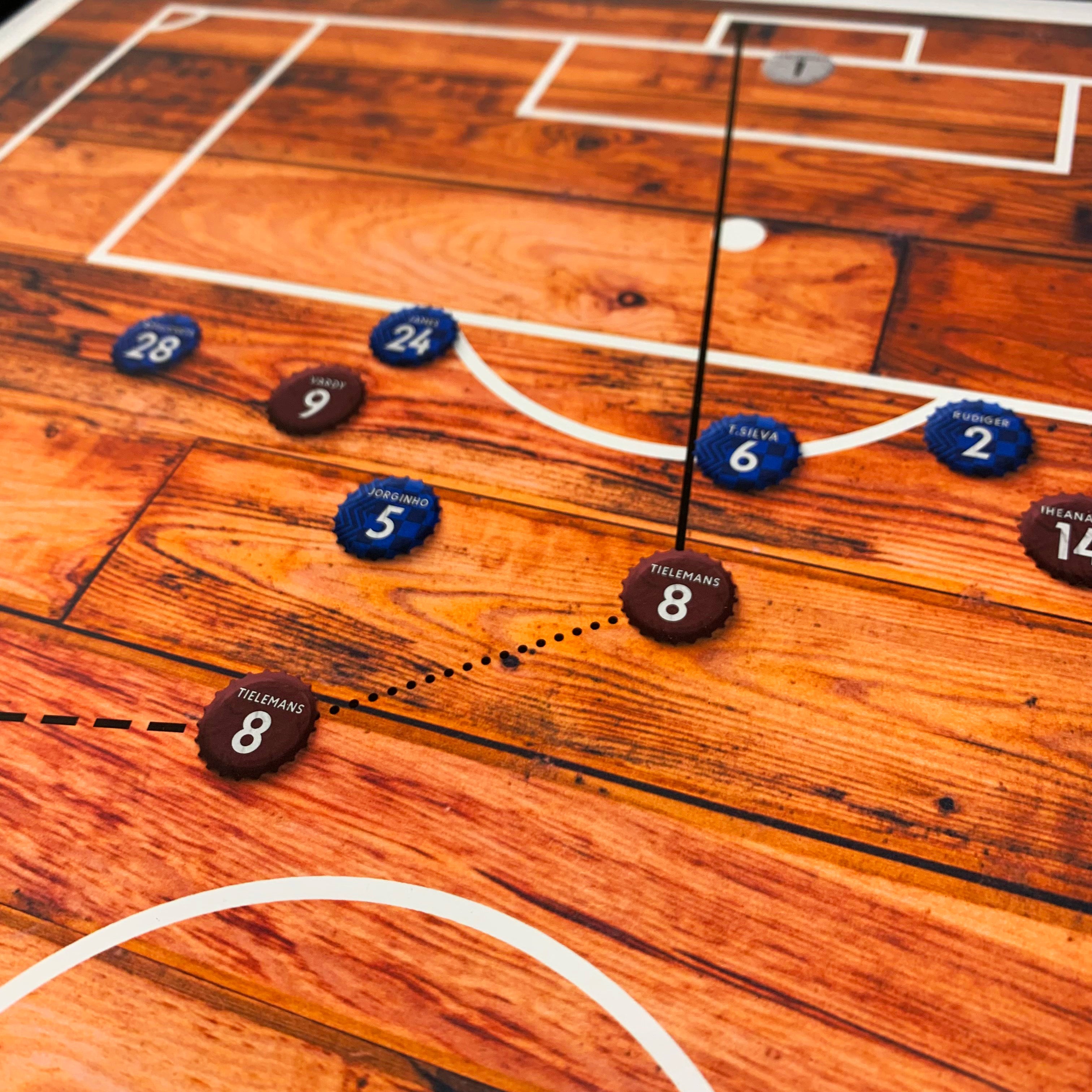 Recreating Youri Tielemans winning FA Cup goal v Chelsea, through the use of beer bottle caps.